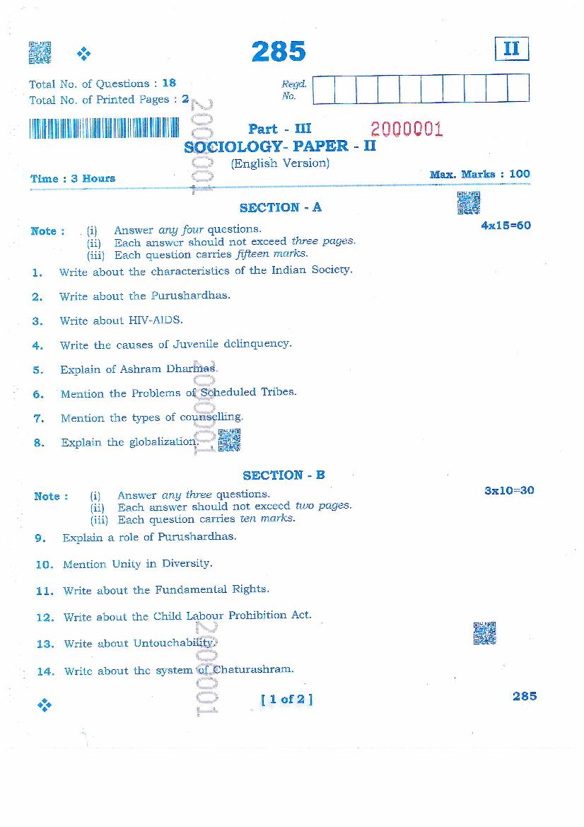 AP Inter 2nd Year Sociology Question Paper