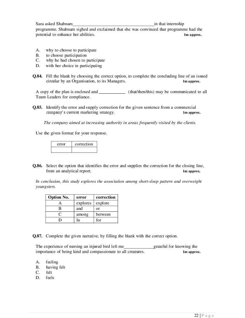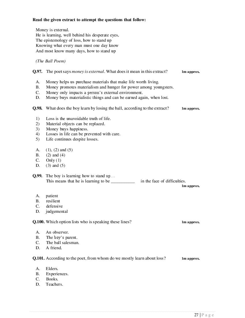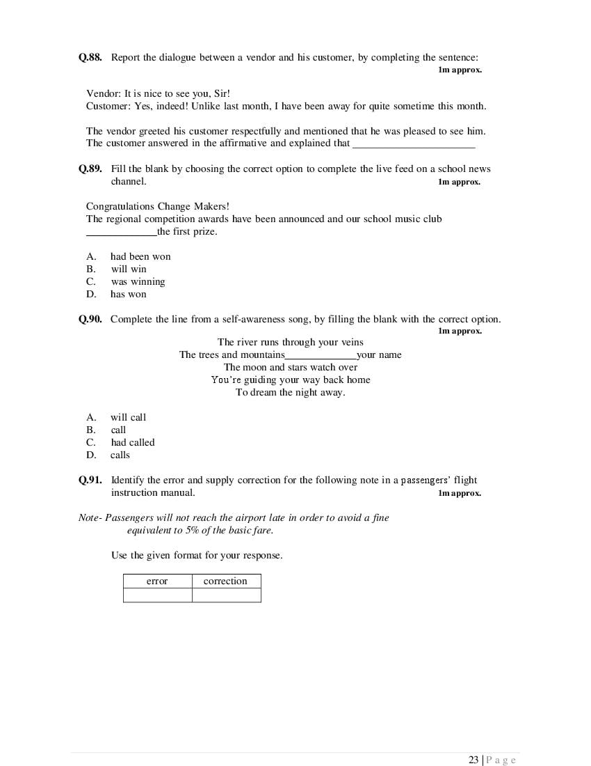 The complete specimen question paper is as follows.