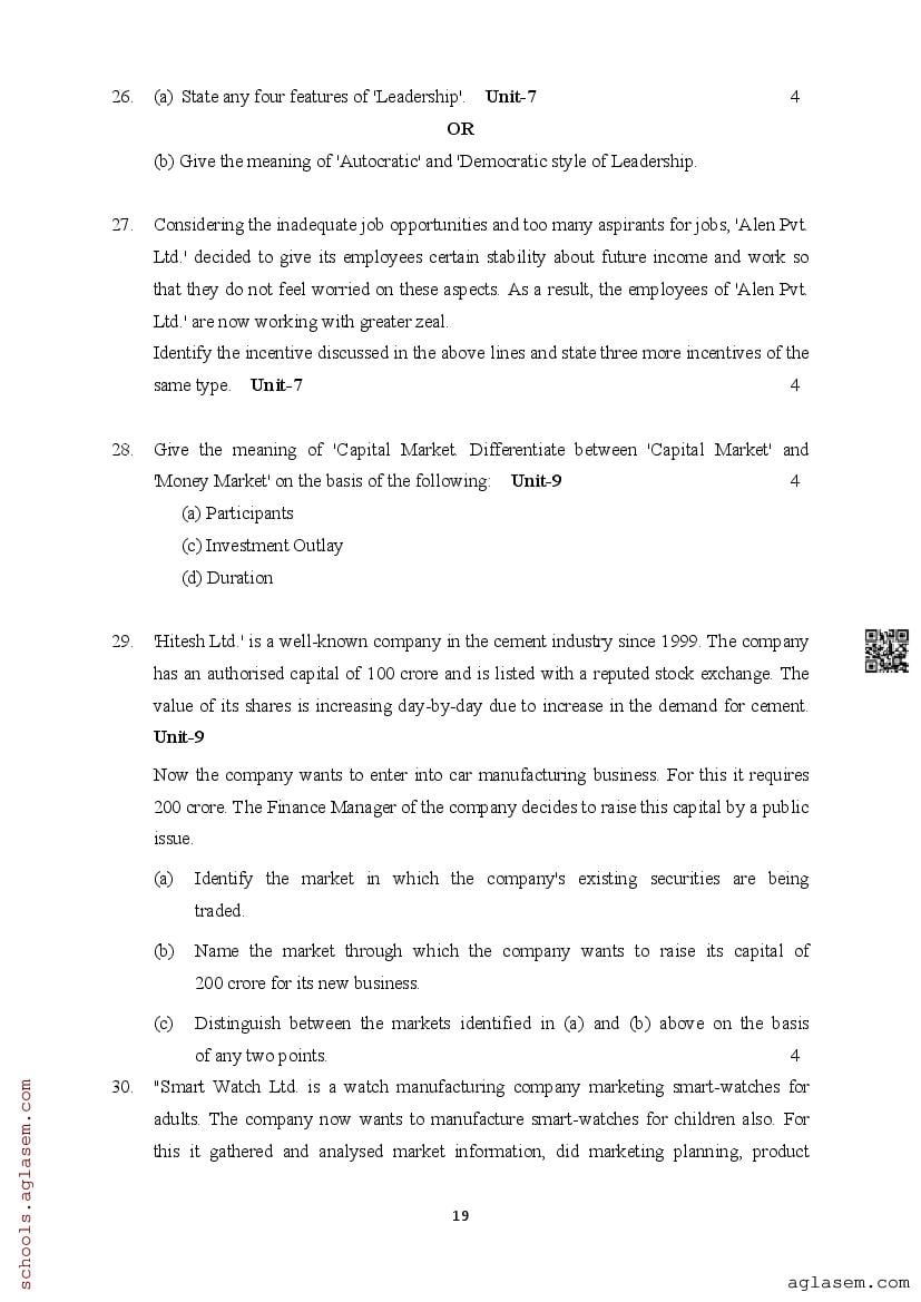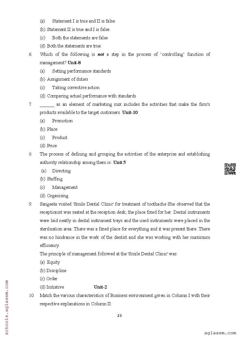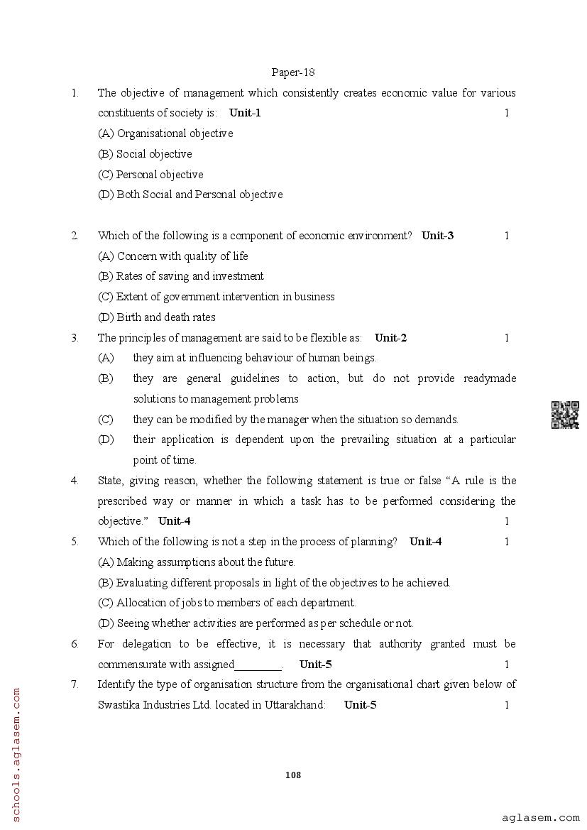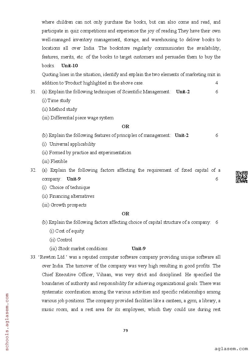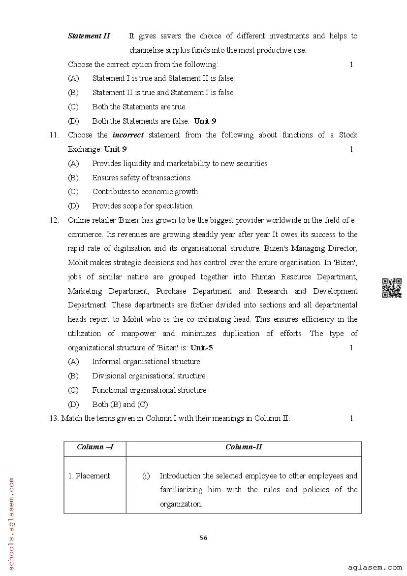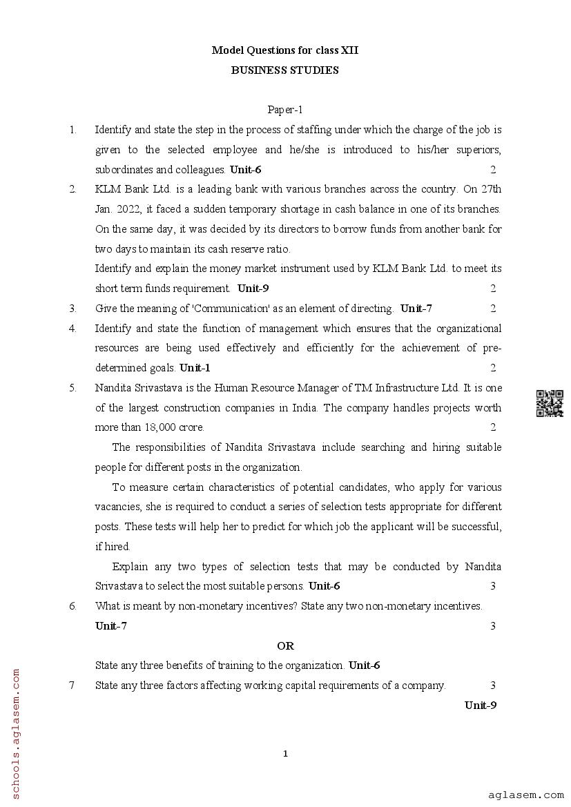 | Study Material Here | Assam Board Model Paper of Class 12 Business Studies |