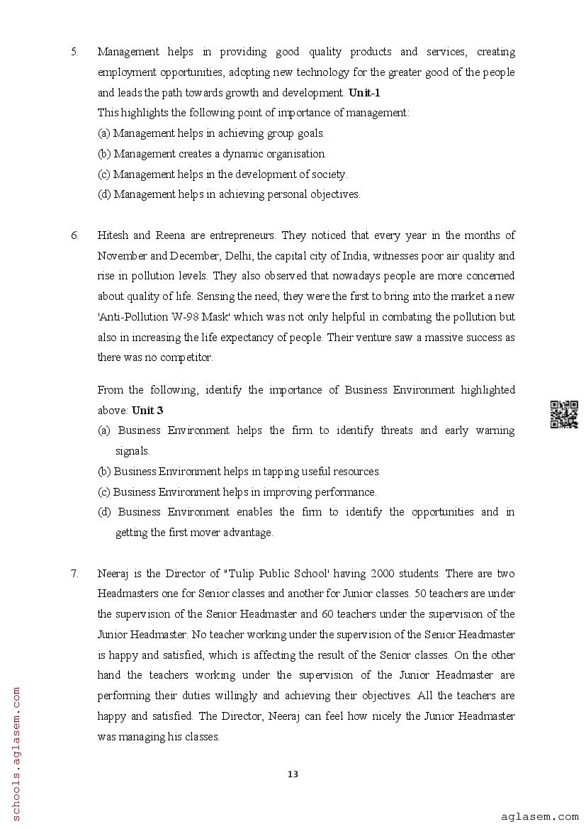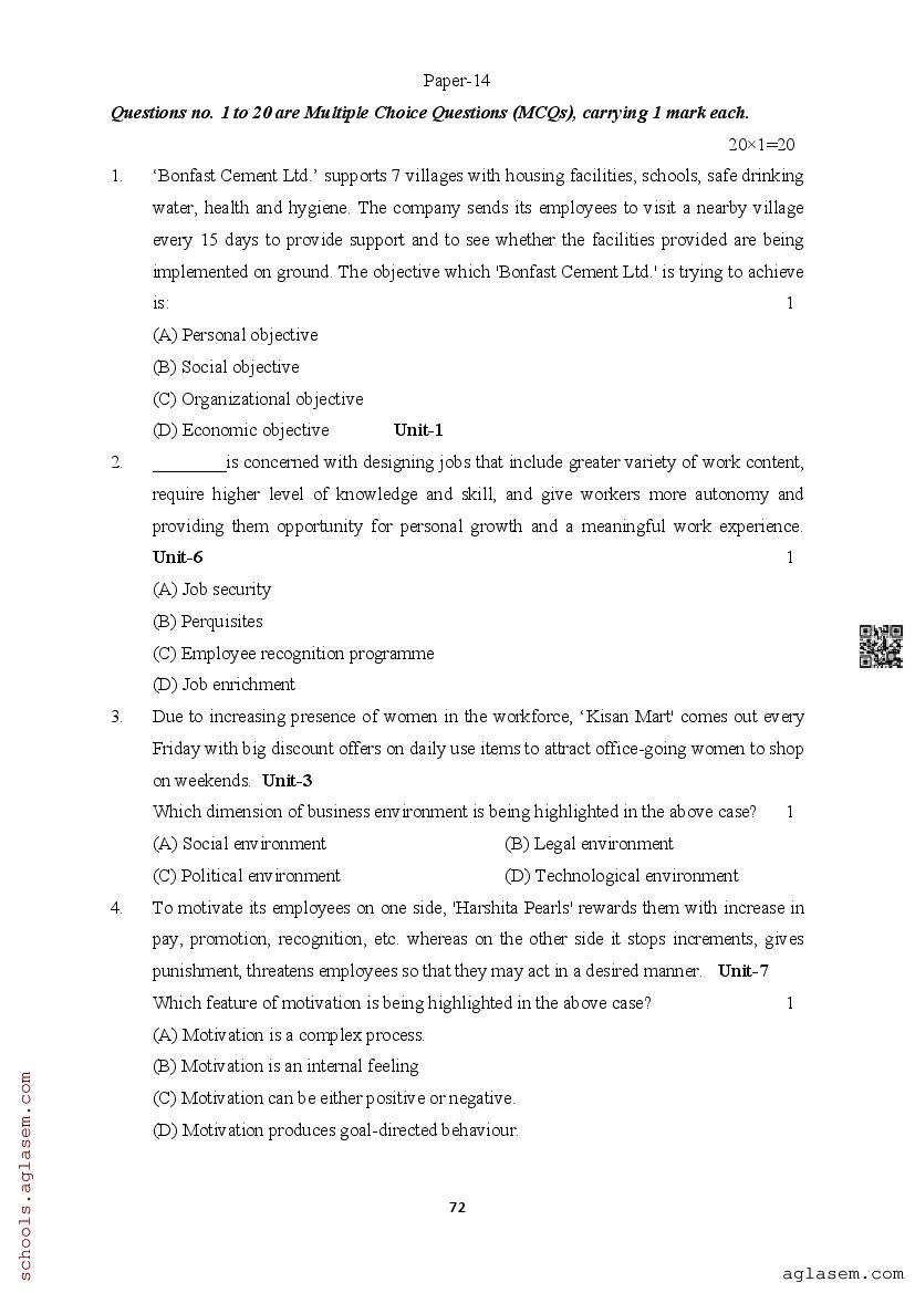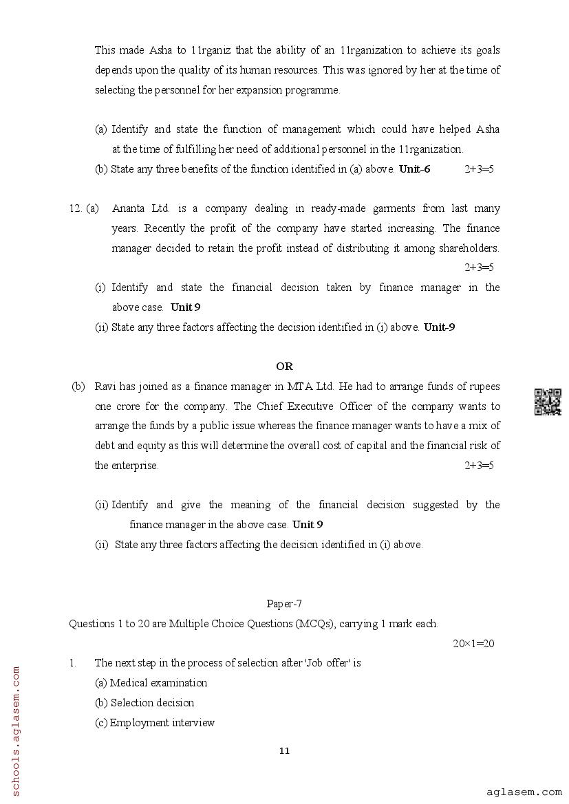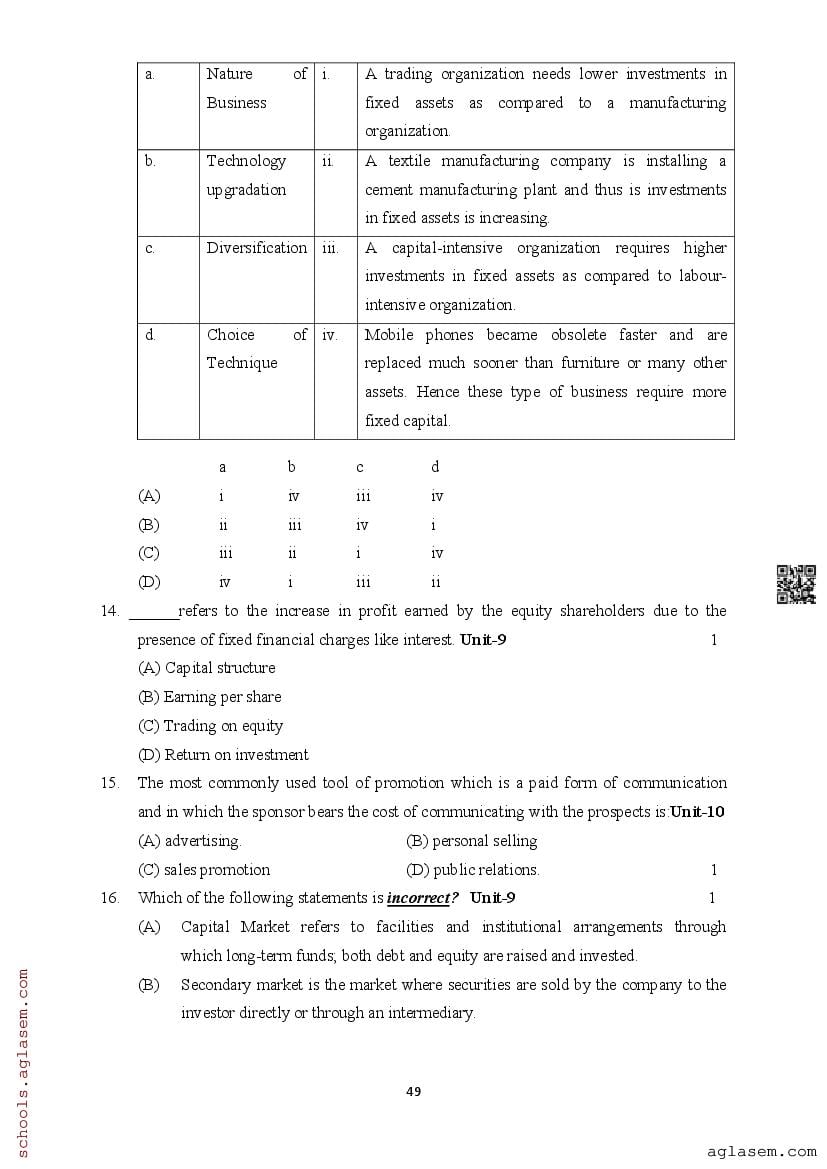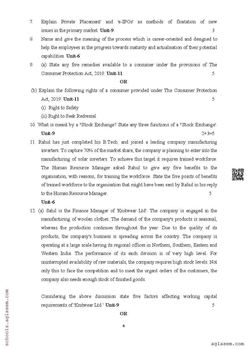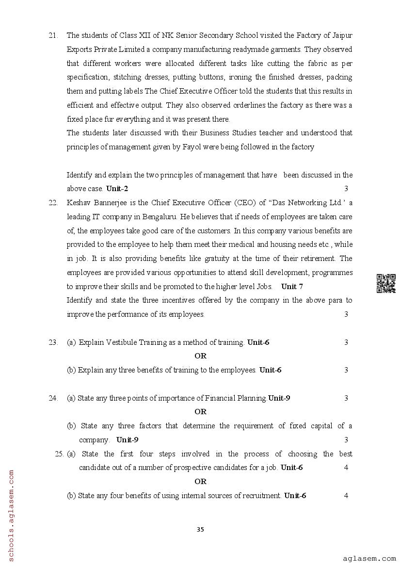| Study Material Here | Assam Board Model Paper of Class 12 Business Studies |