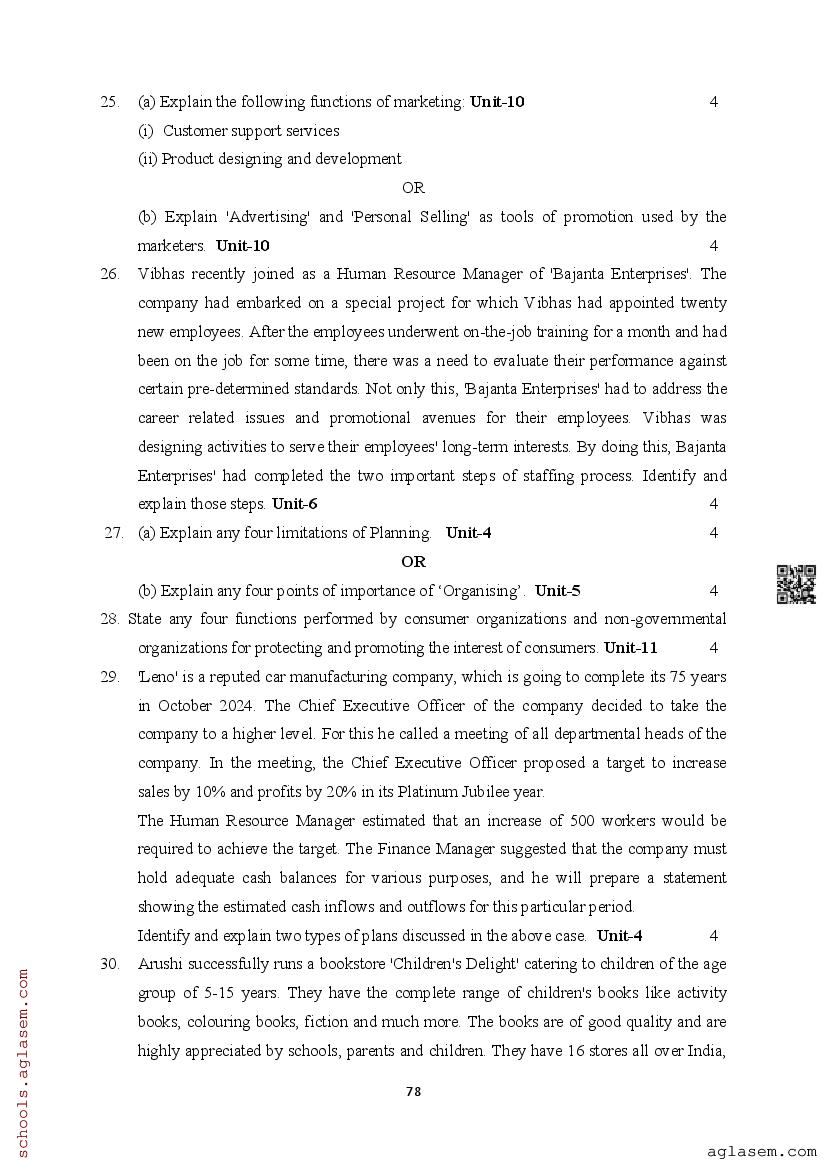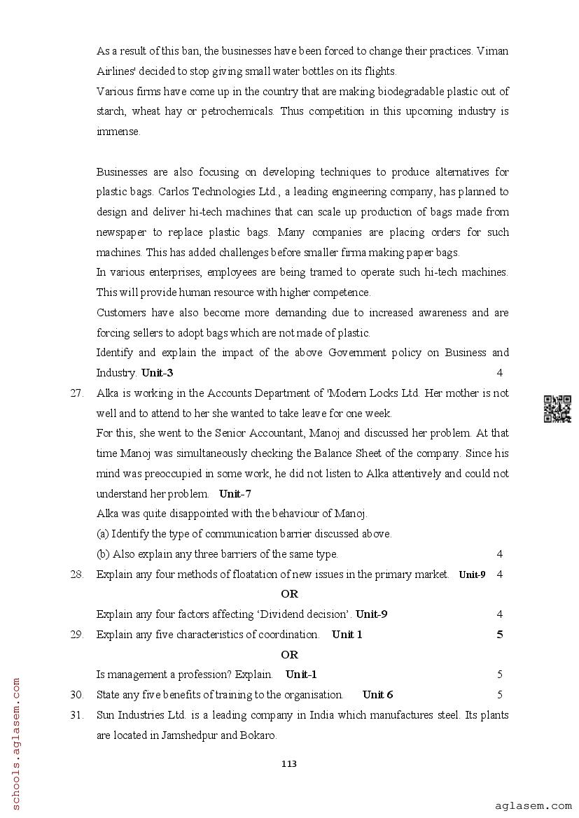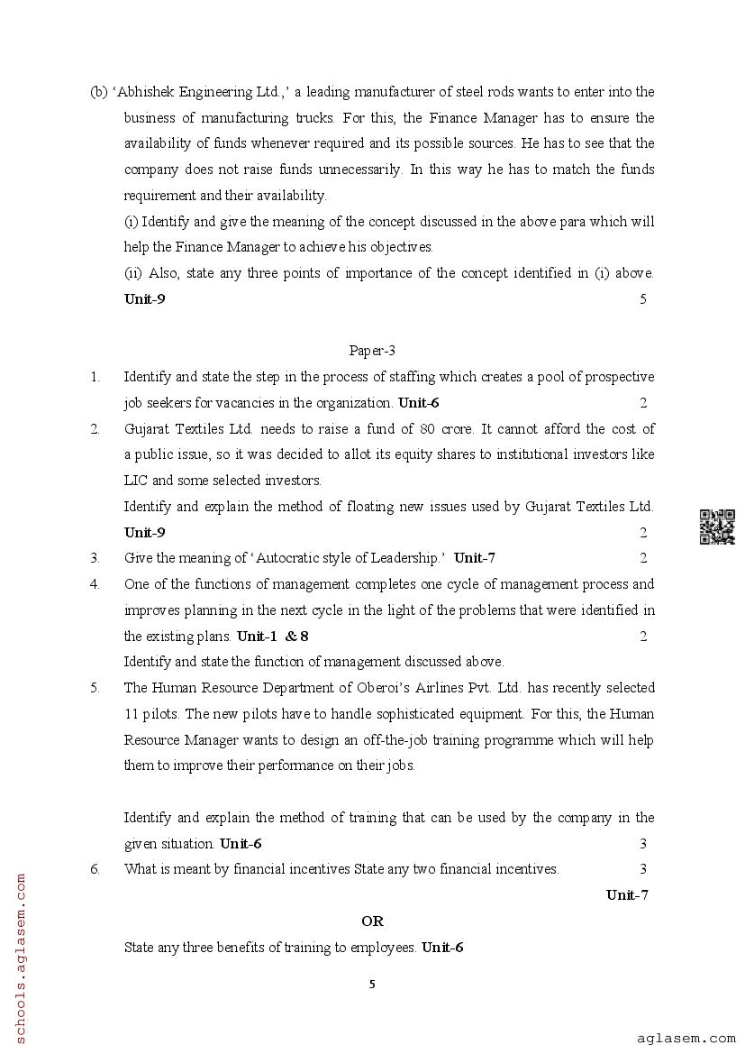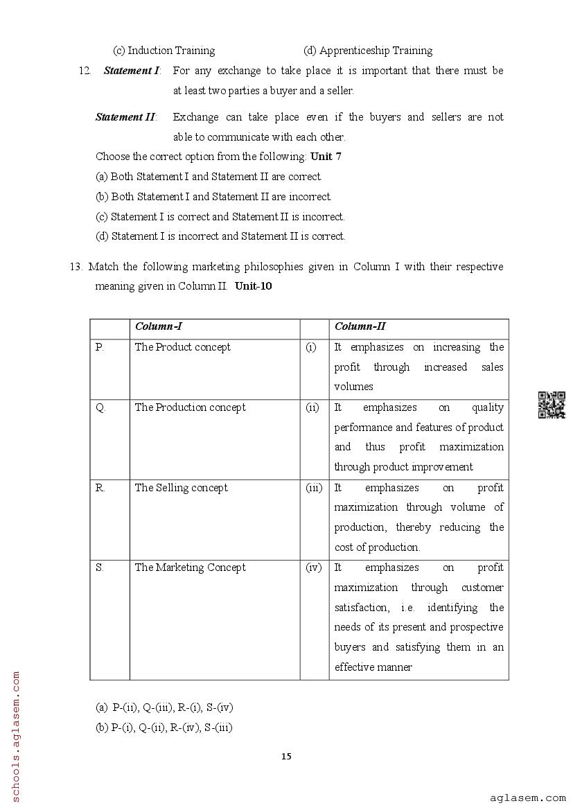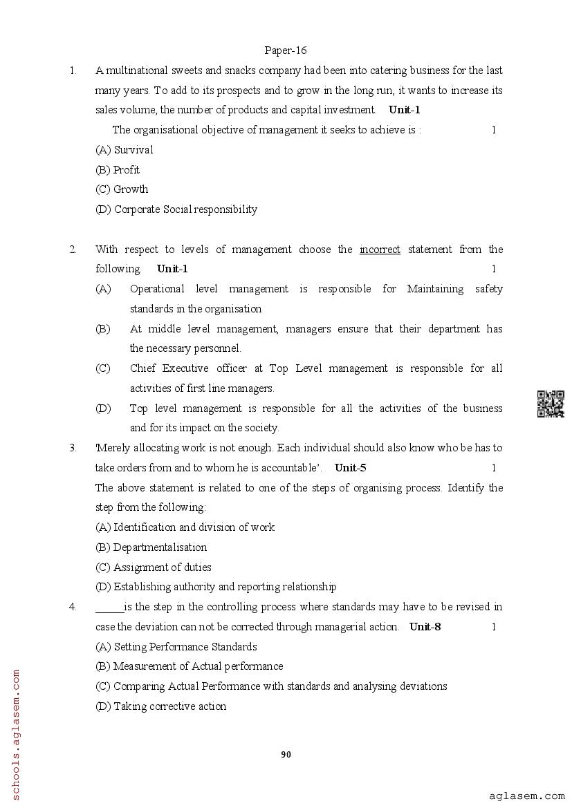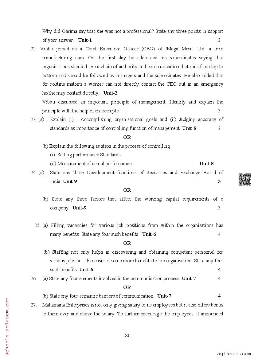 | Study Material Here | Assam Board Model Paper of Class 12 Business Studies |