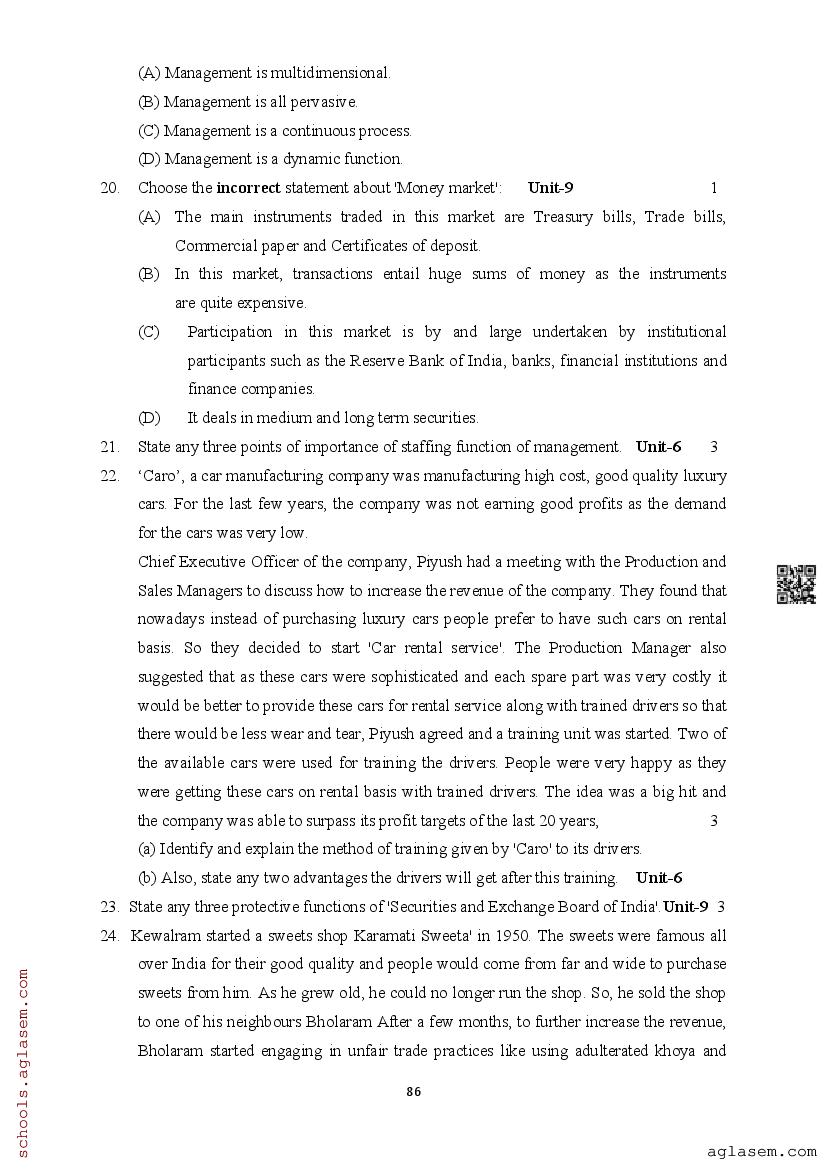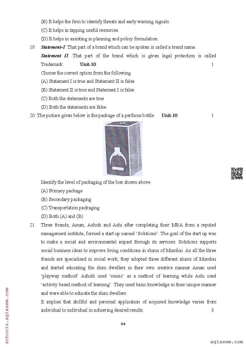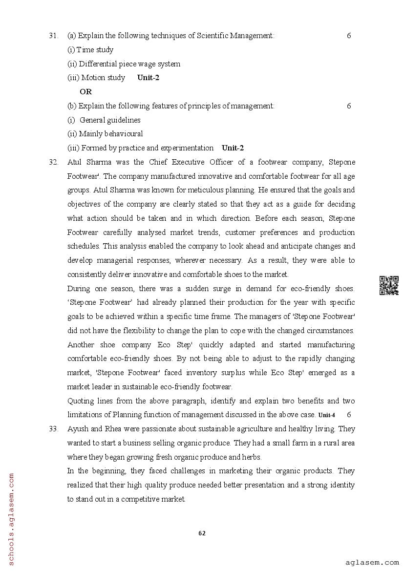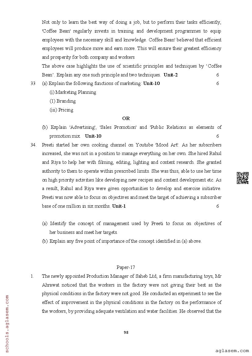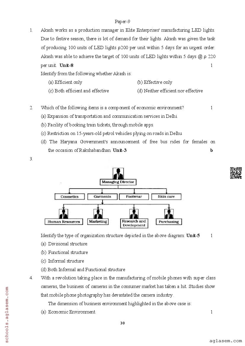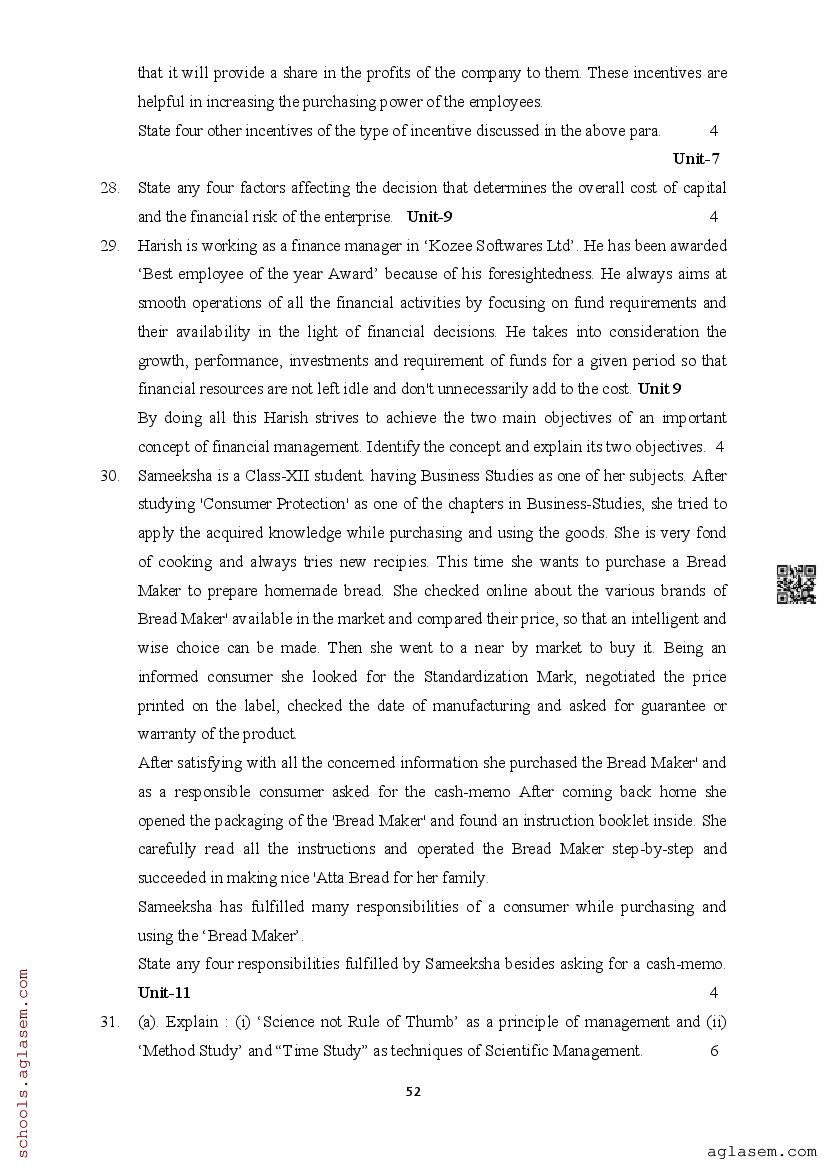 | Study Material Here | Assam Board Model Paper of Class 12 Business Studies |