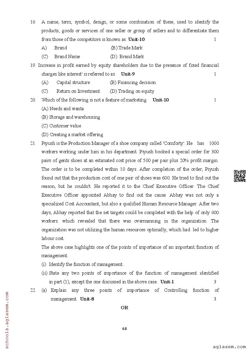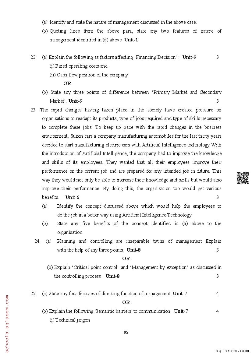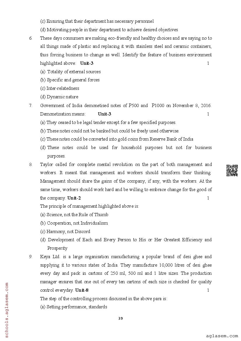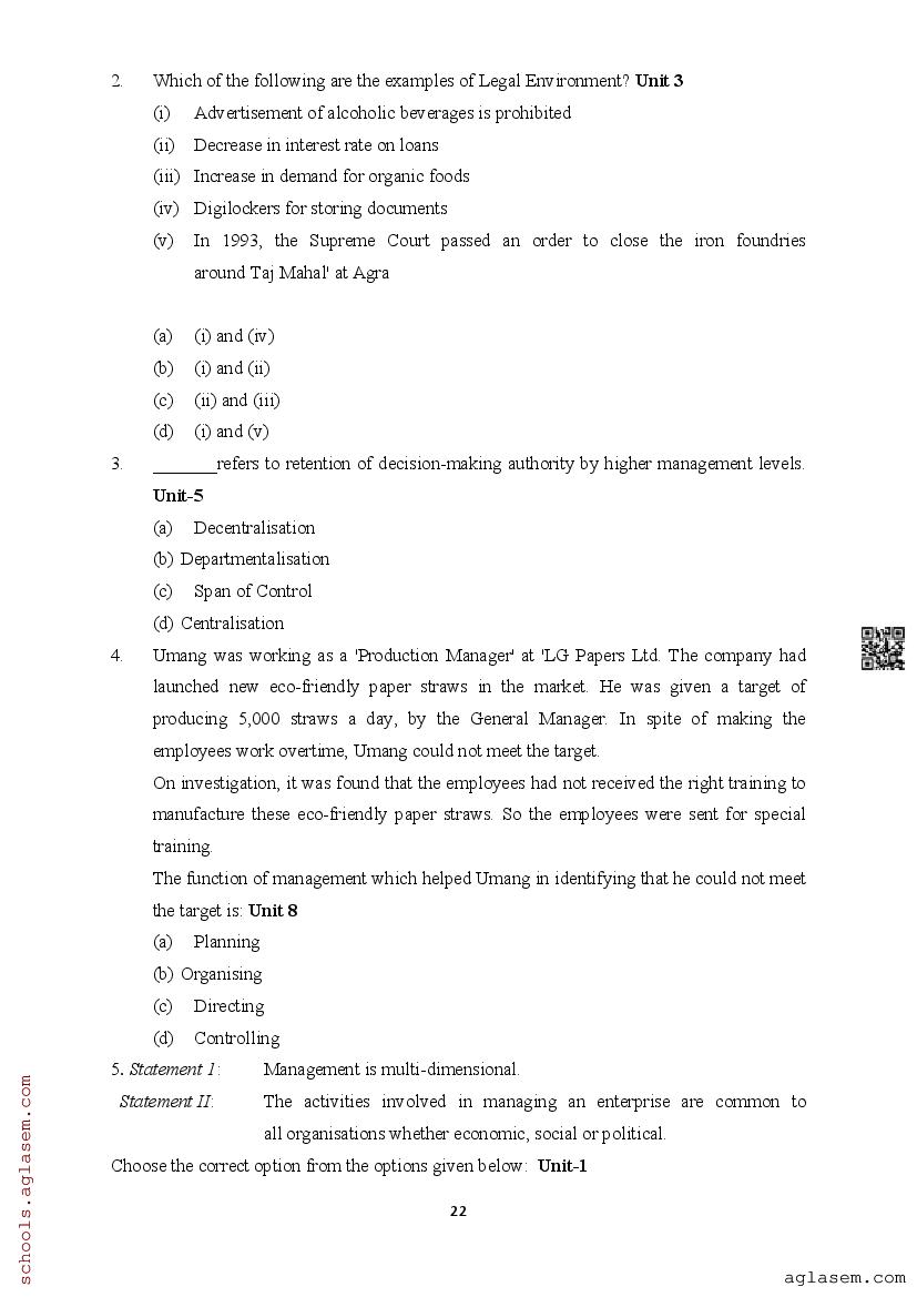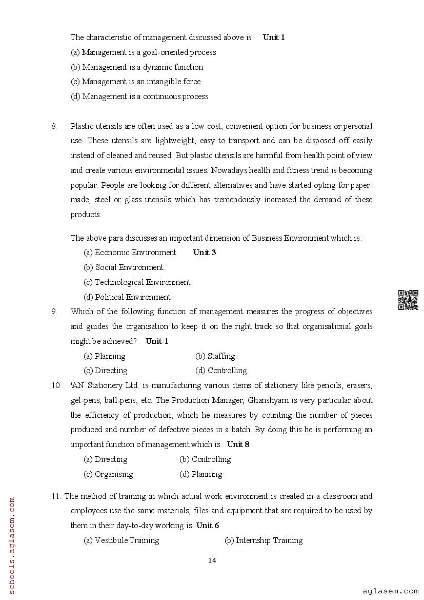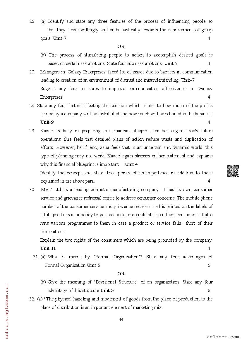 | Study Material Here | Assam Board Model Paper of Class 12 Business Studies |