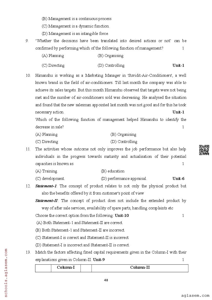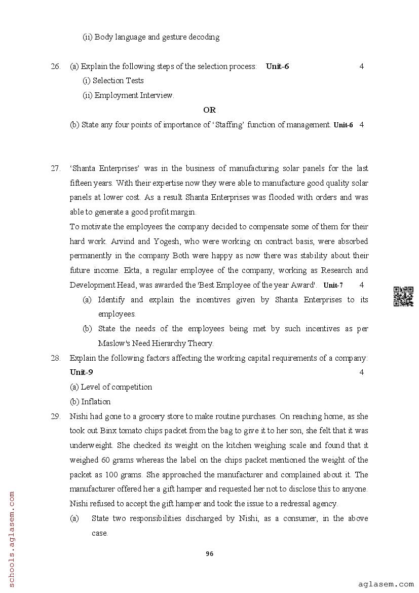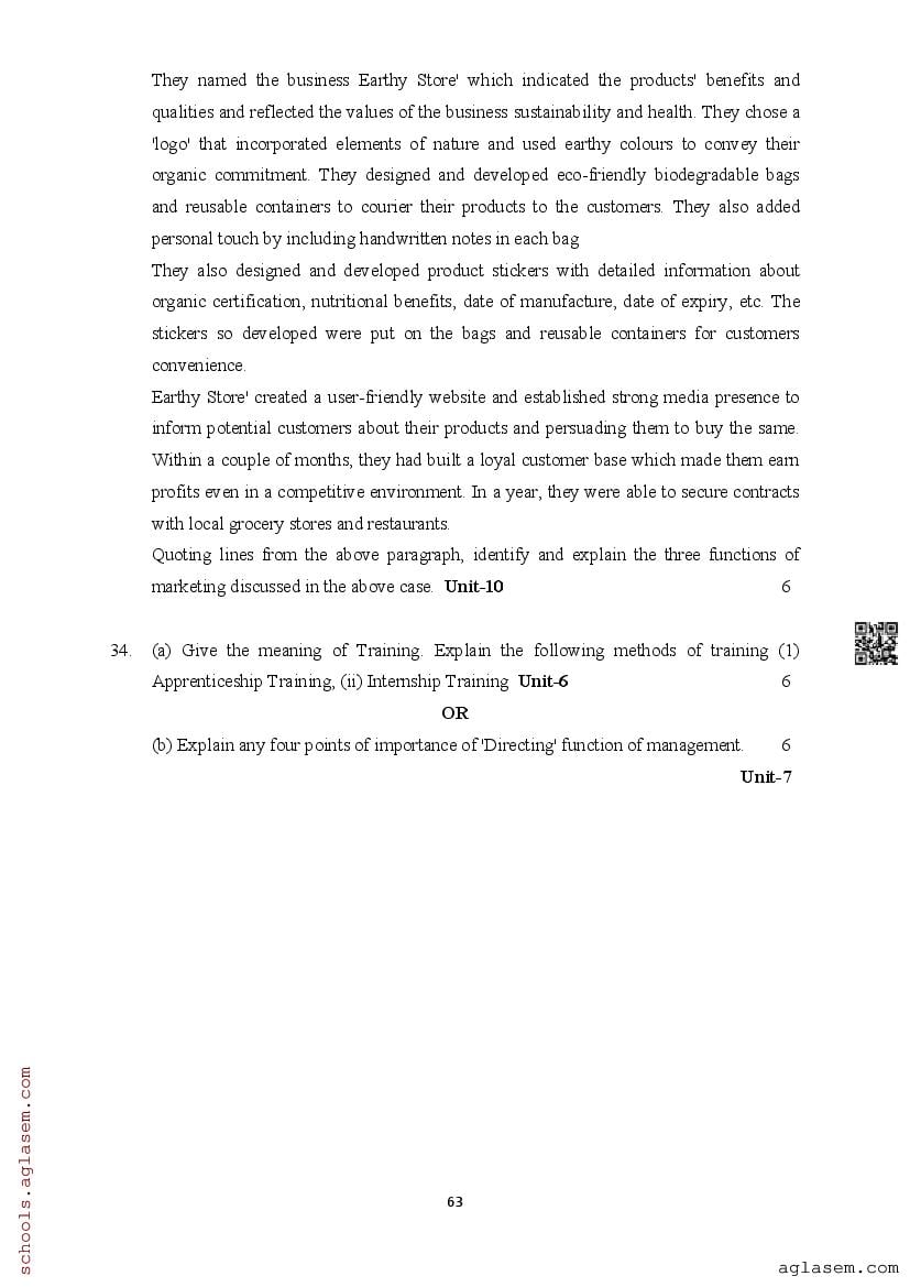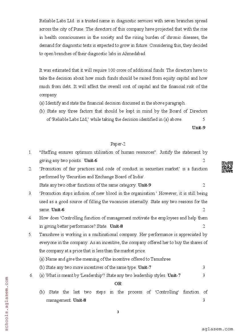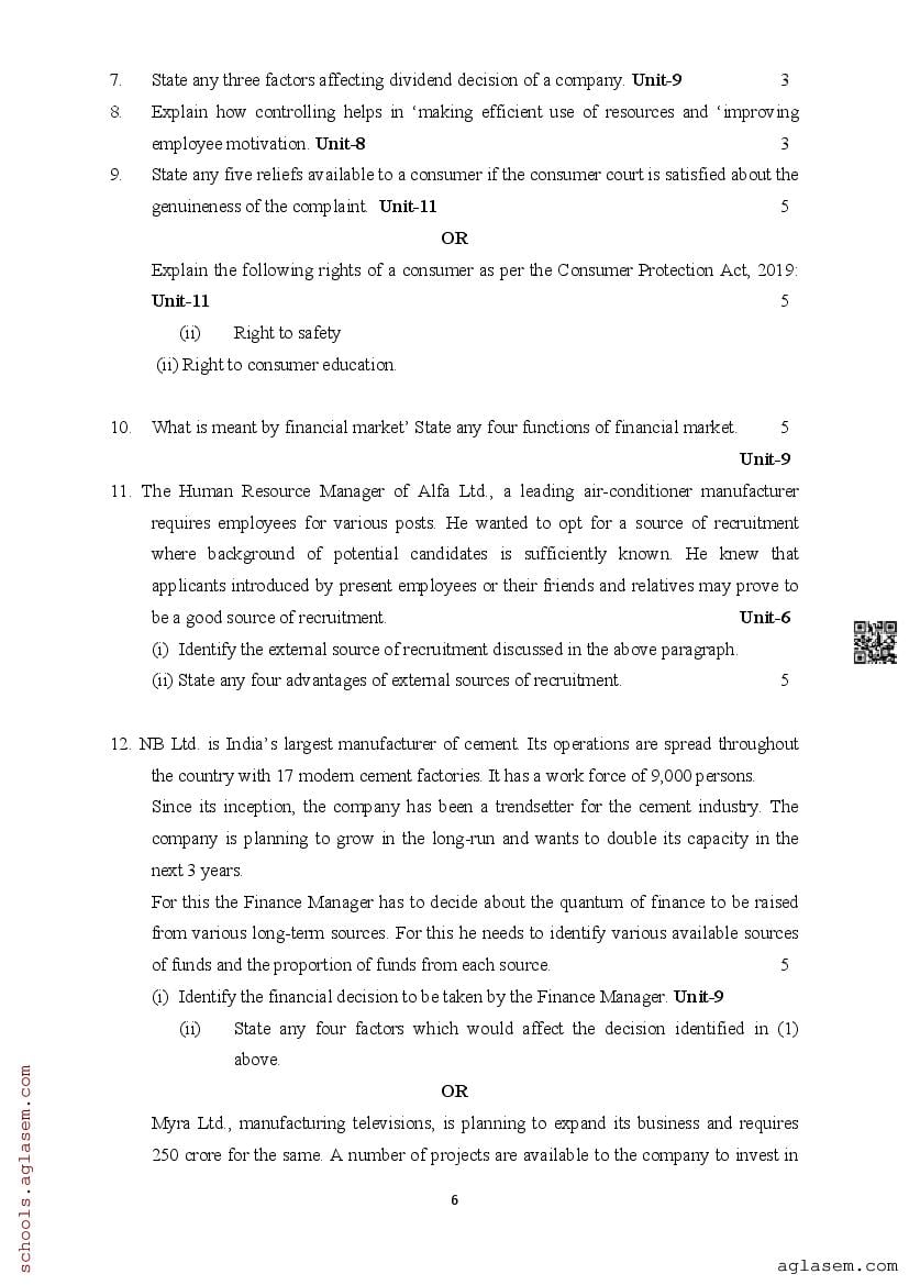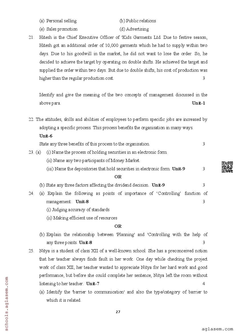 | Study Material Here | Assam Board Model Paper of Class 12 Business Studies |