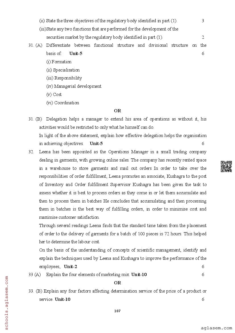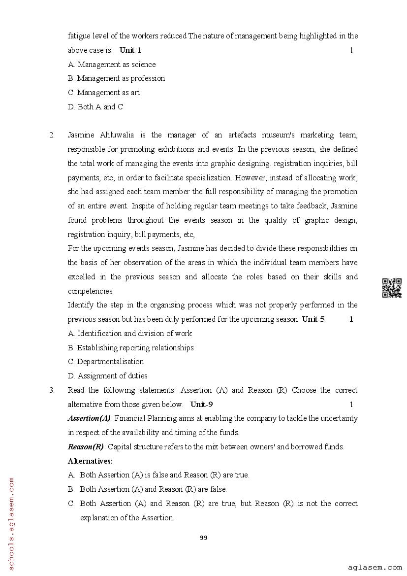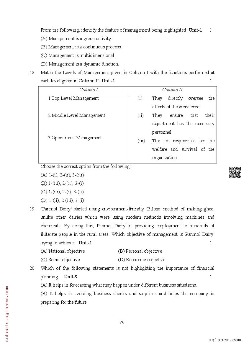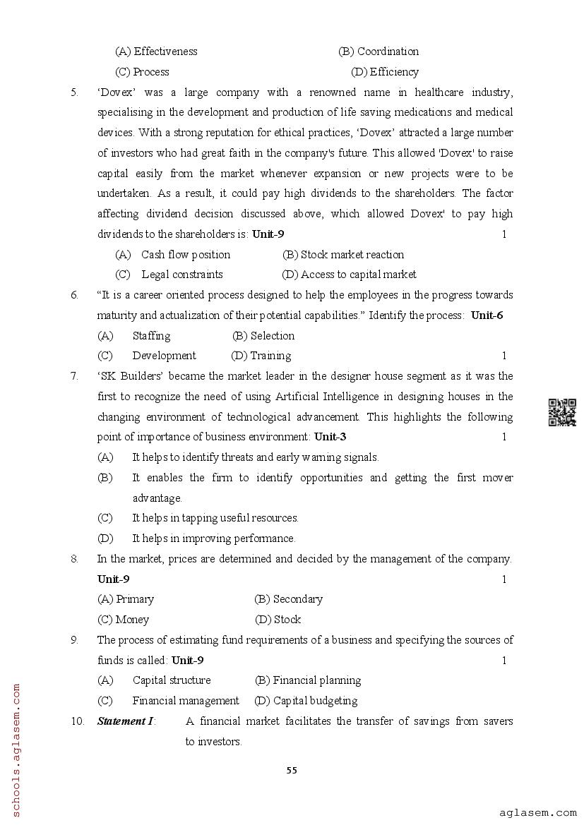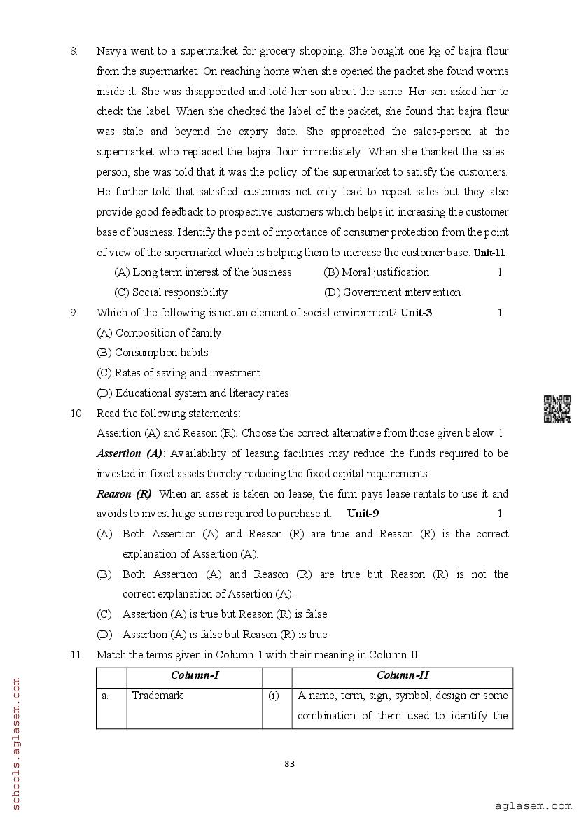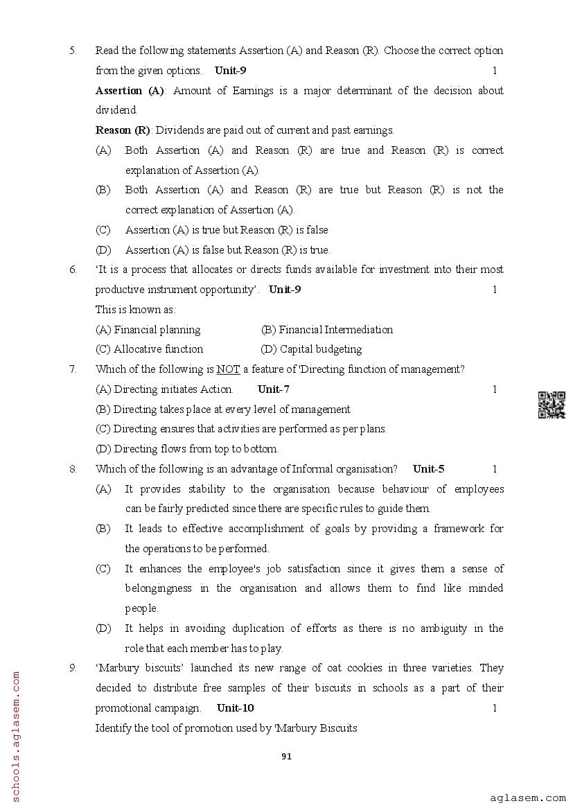 | Study Material Here | Assam Board Model Paper of Class 12 Business Studies |