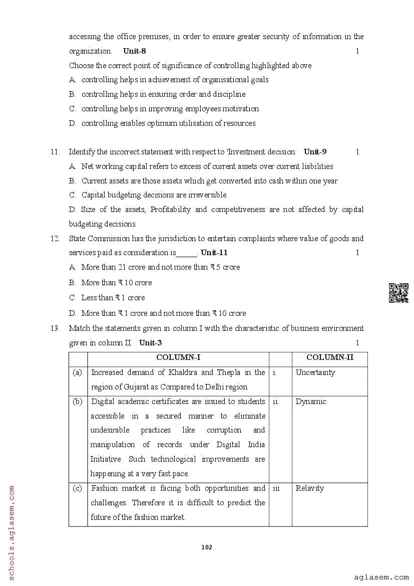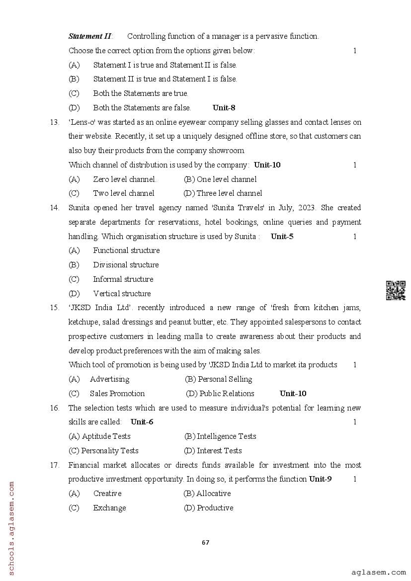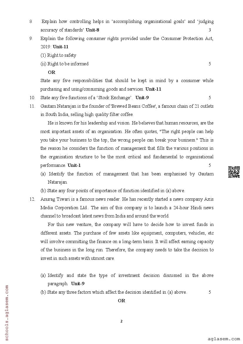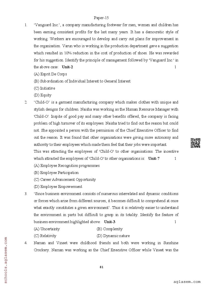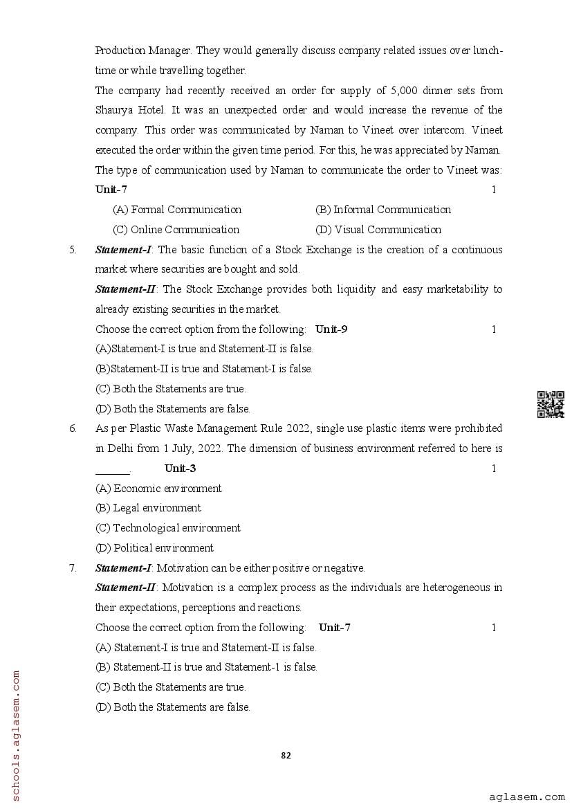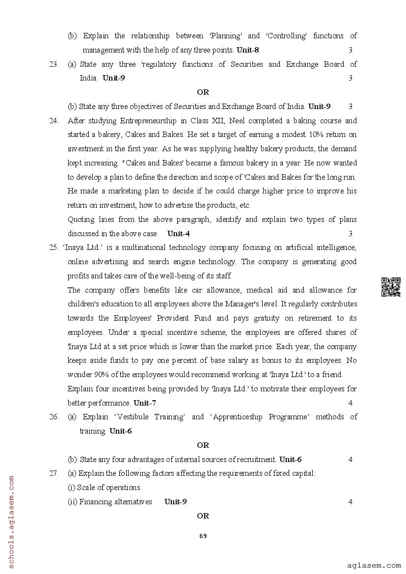 | Study Material Here | Assam Board Model Paper of Class 12 Business Studies |