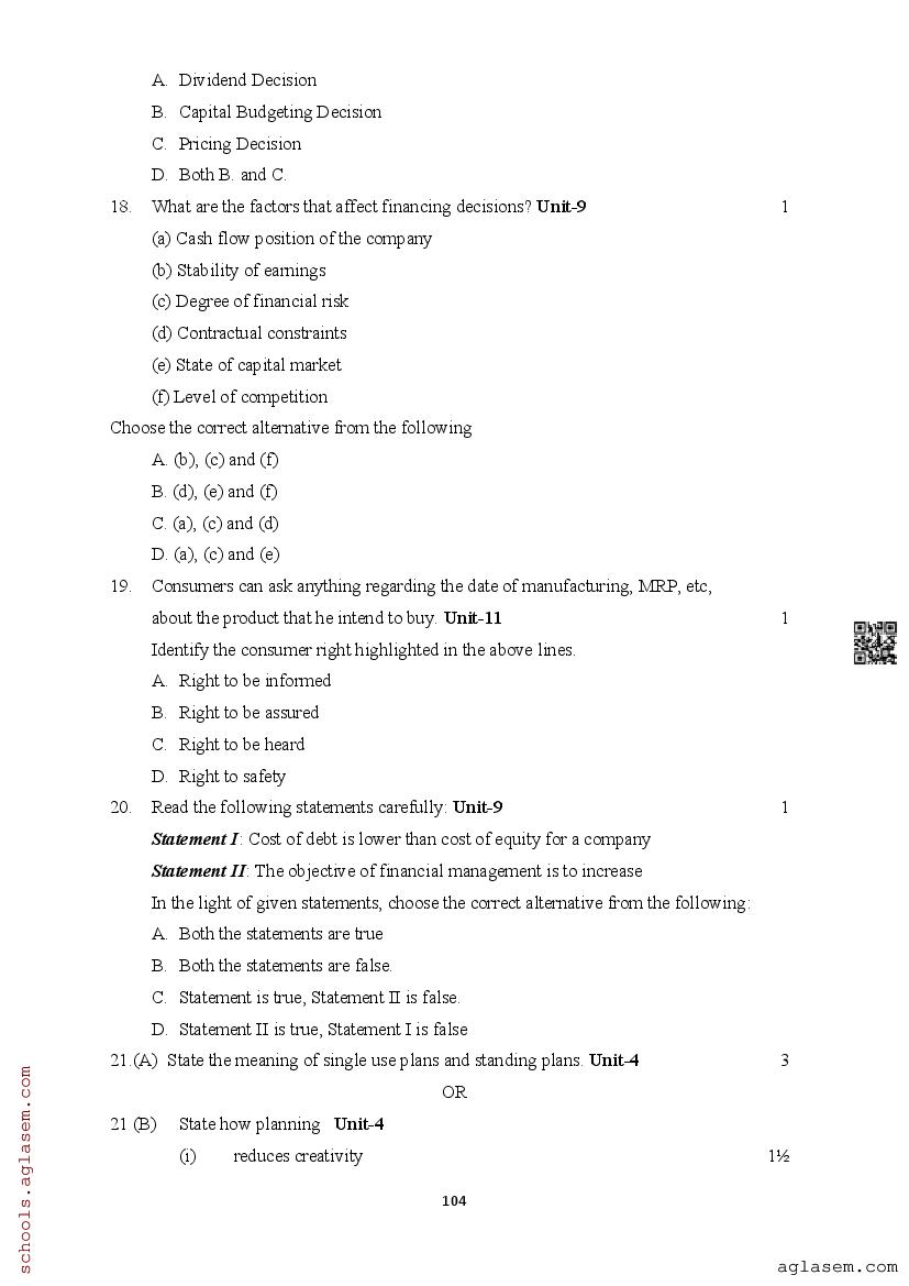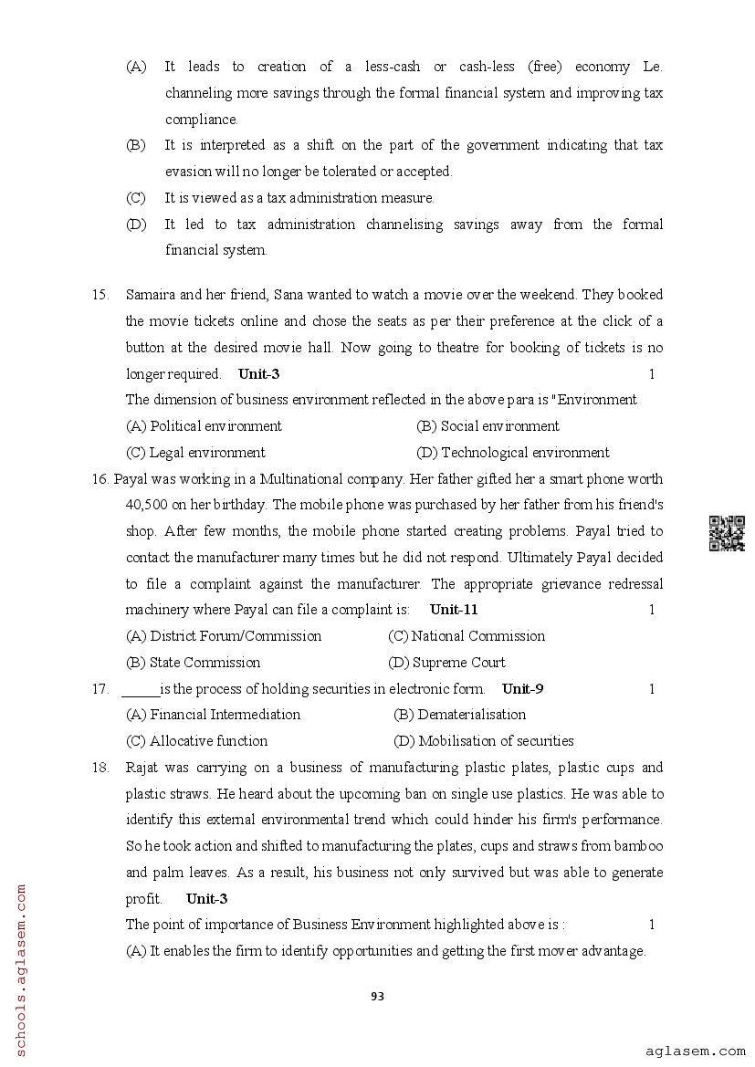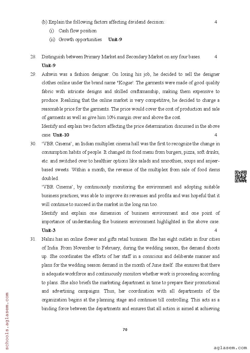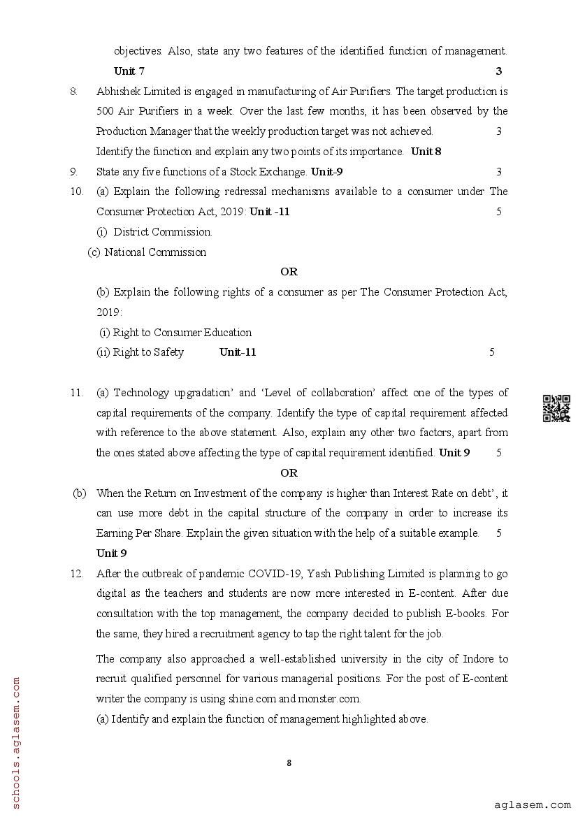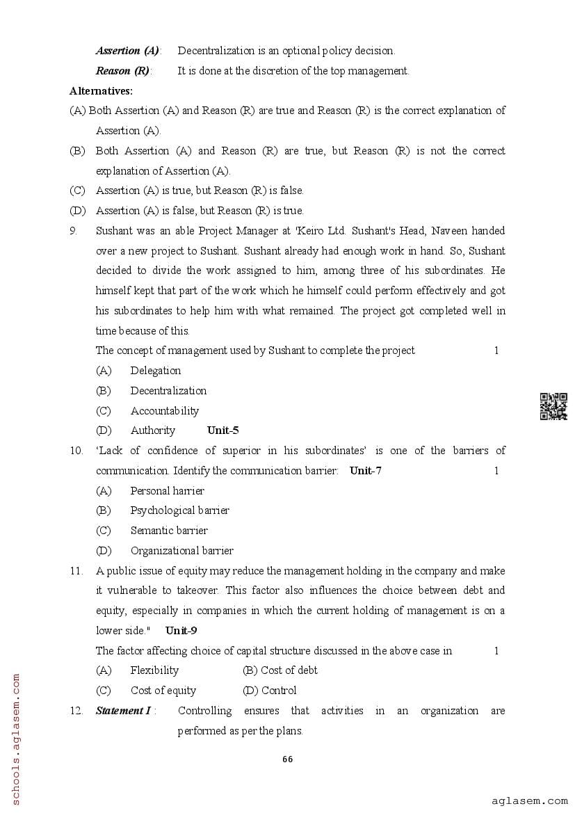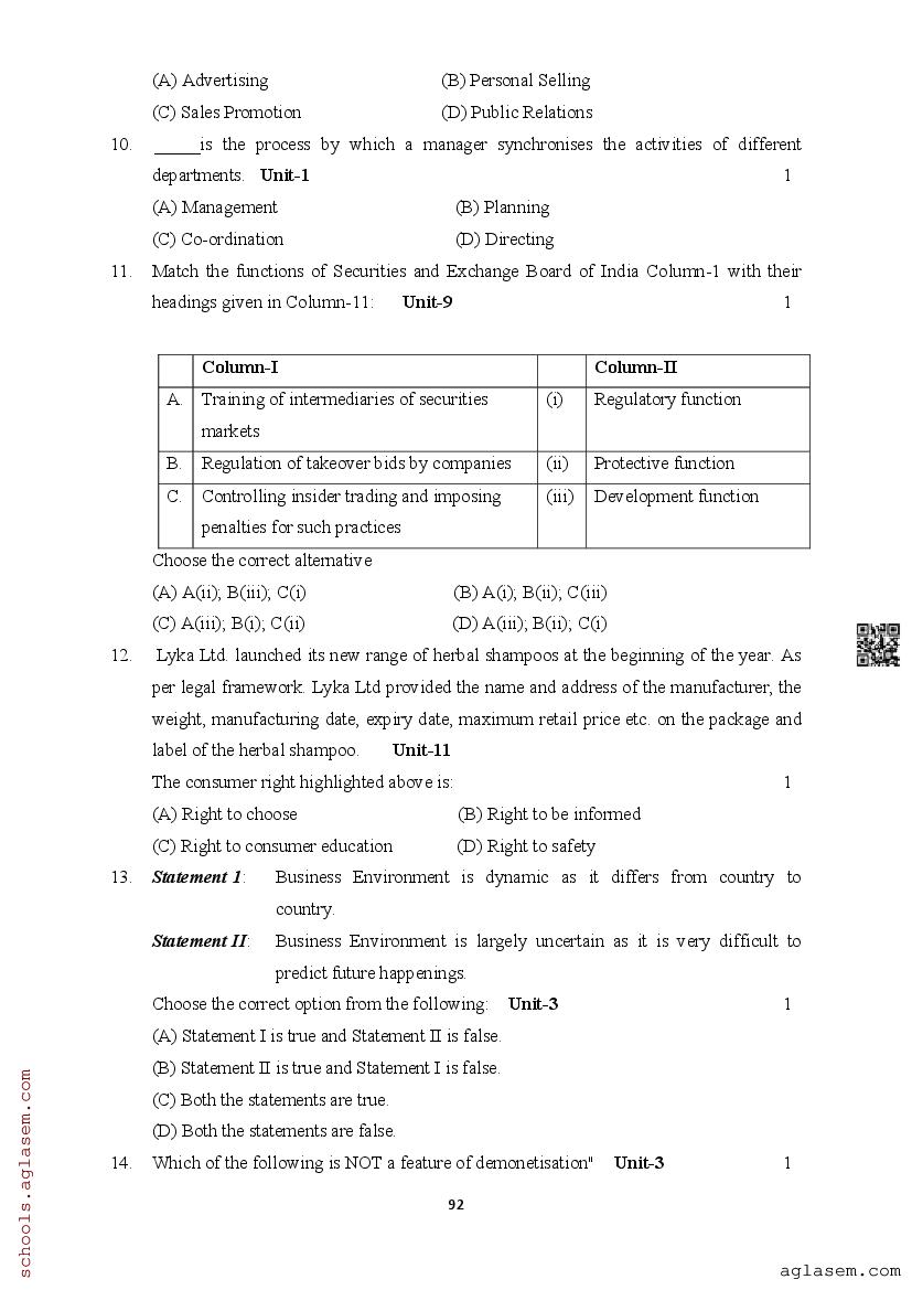 | Study Material Here | Assam Board Model Paper of Class 12 Business Studies |