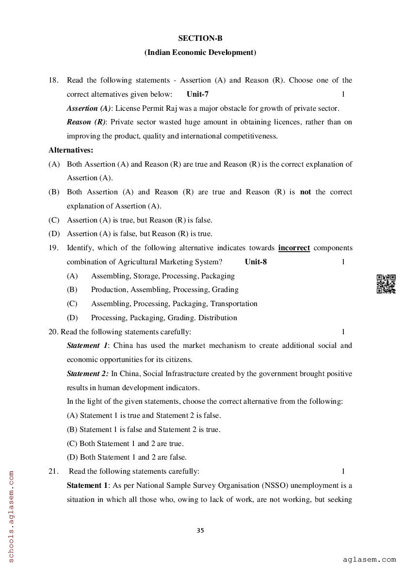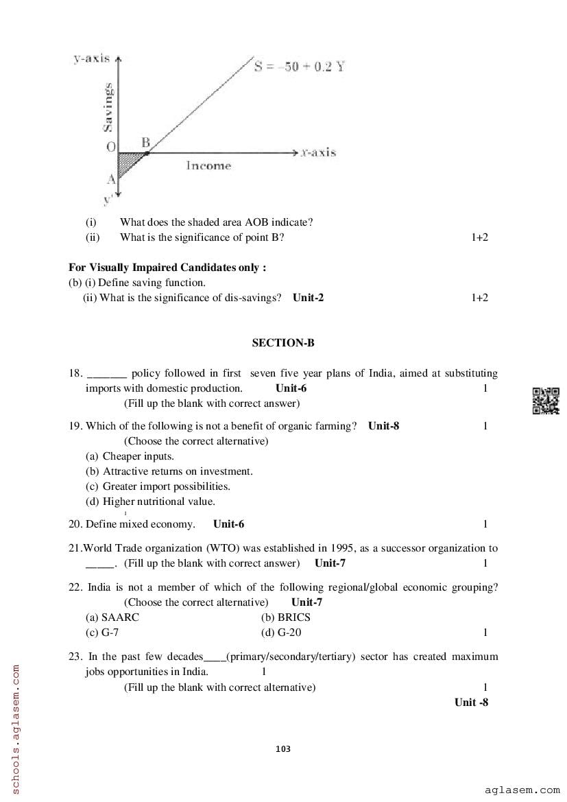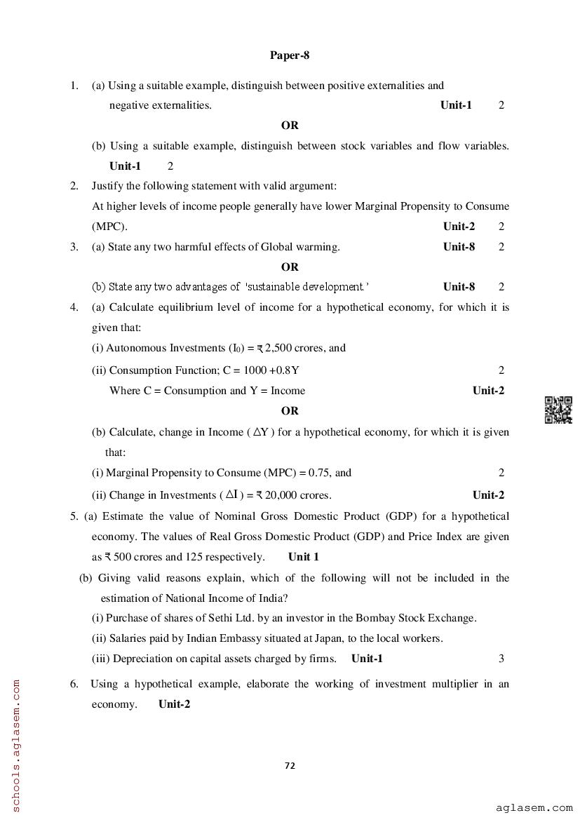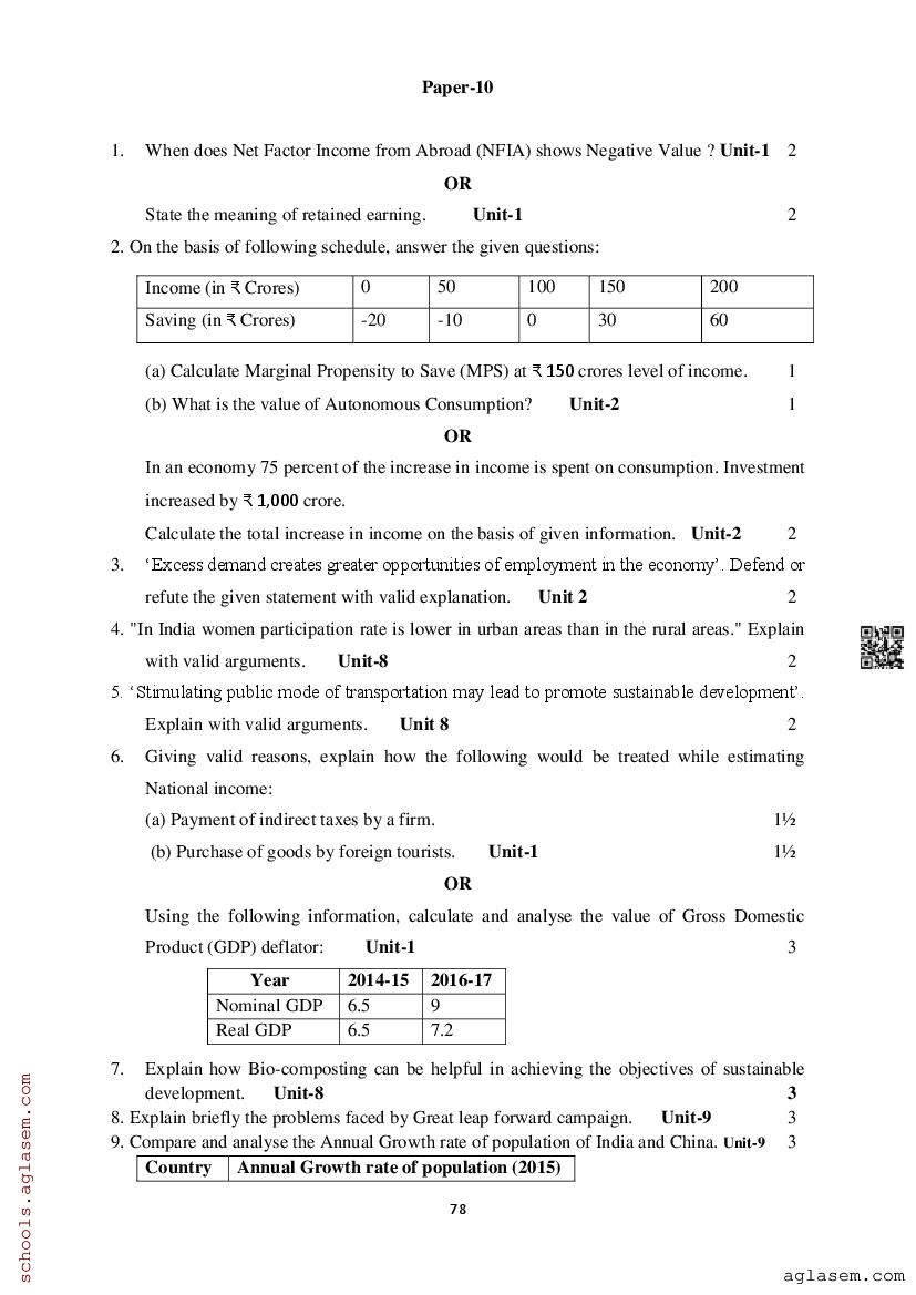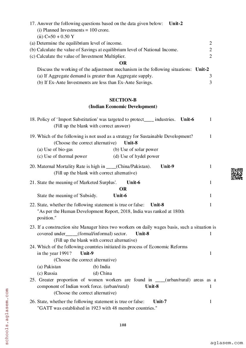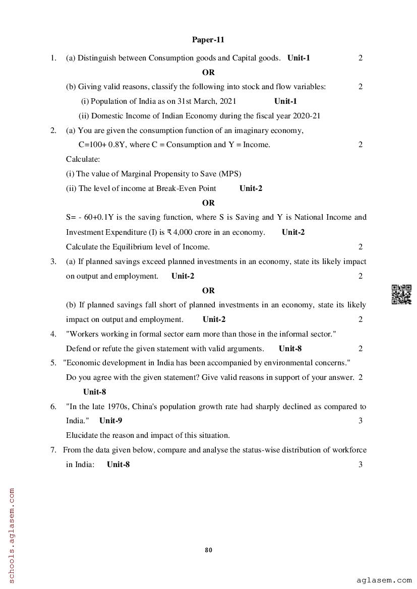 Study Material HereAssam Board Model Paper of Class 12 Economics