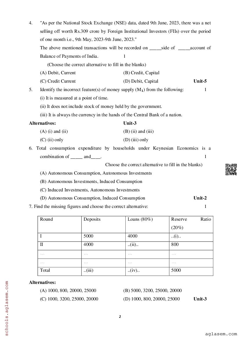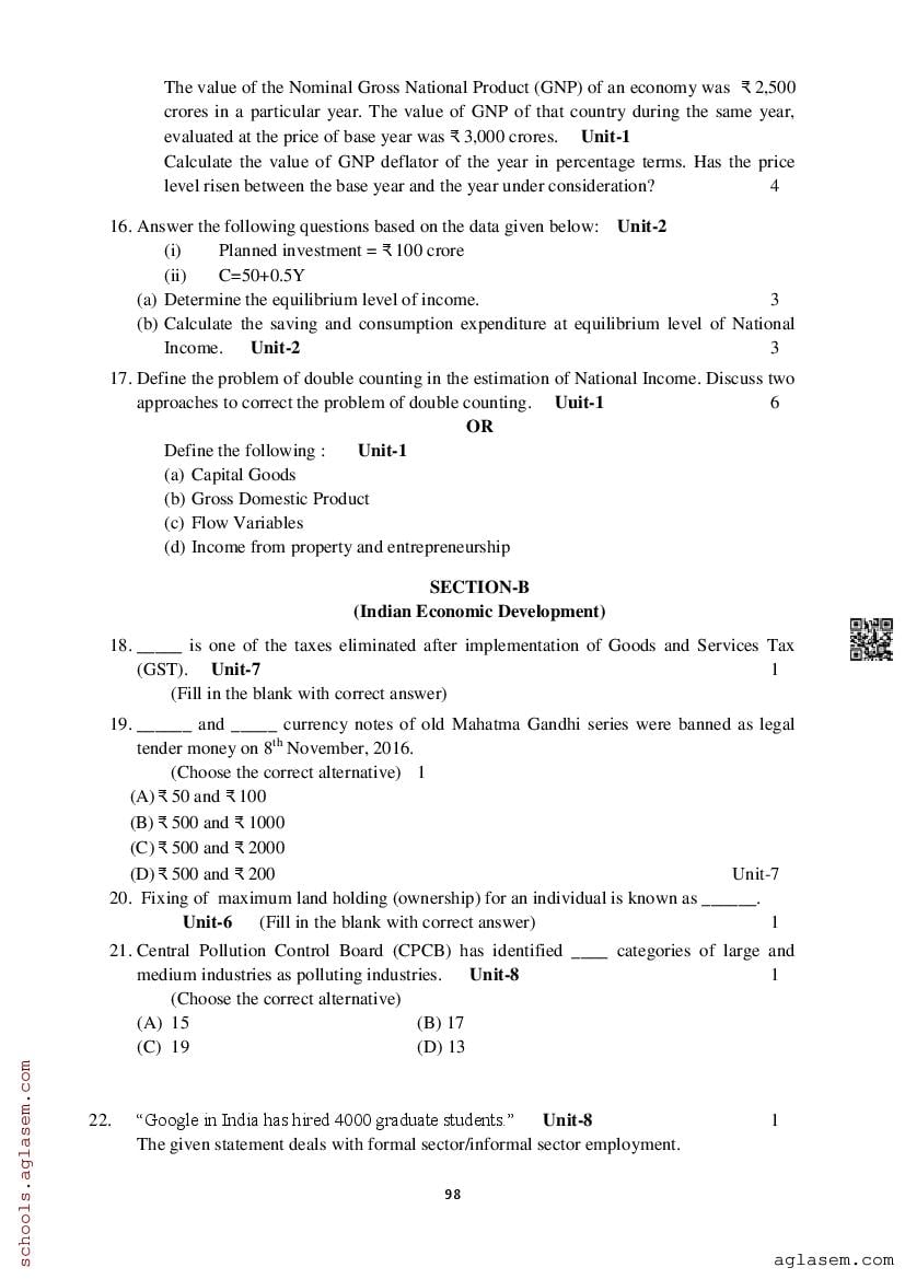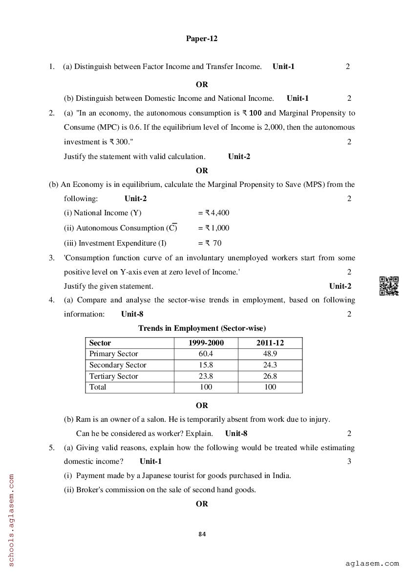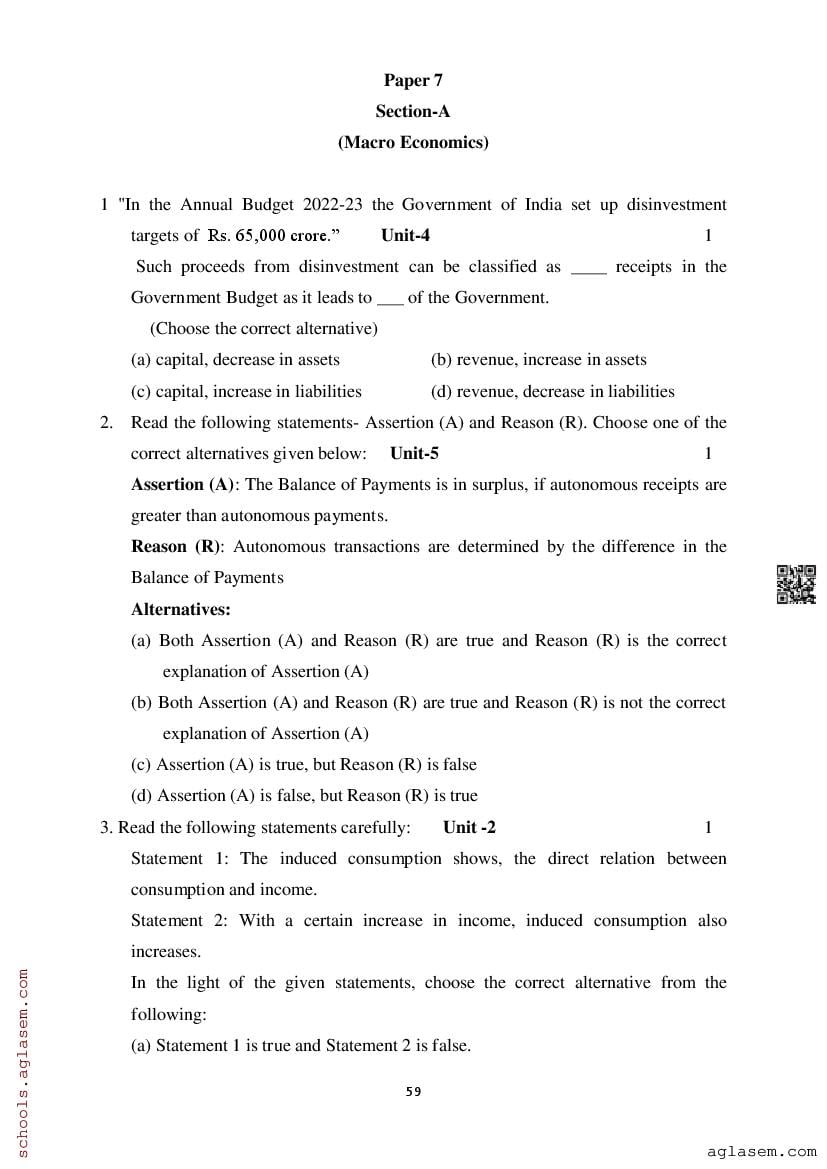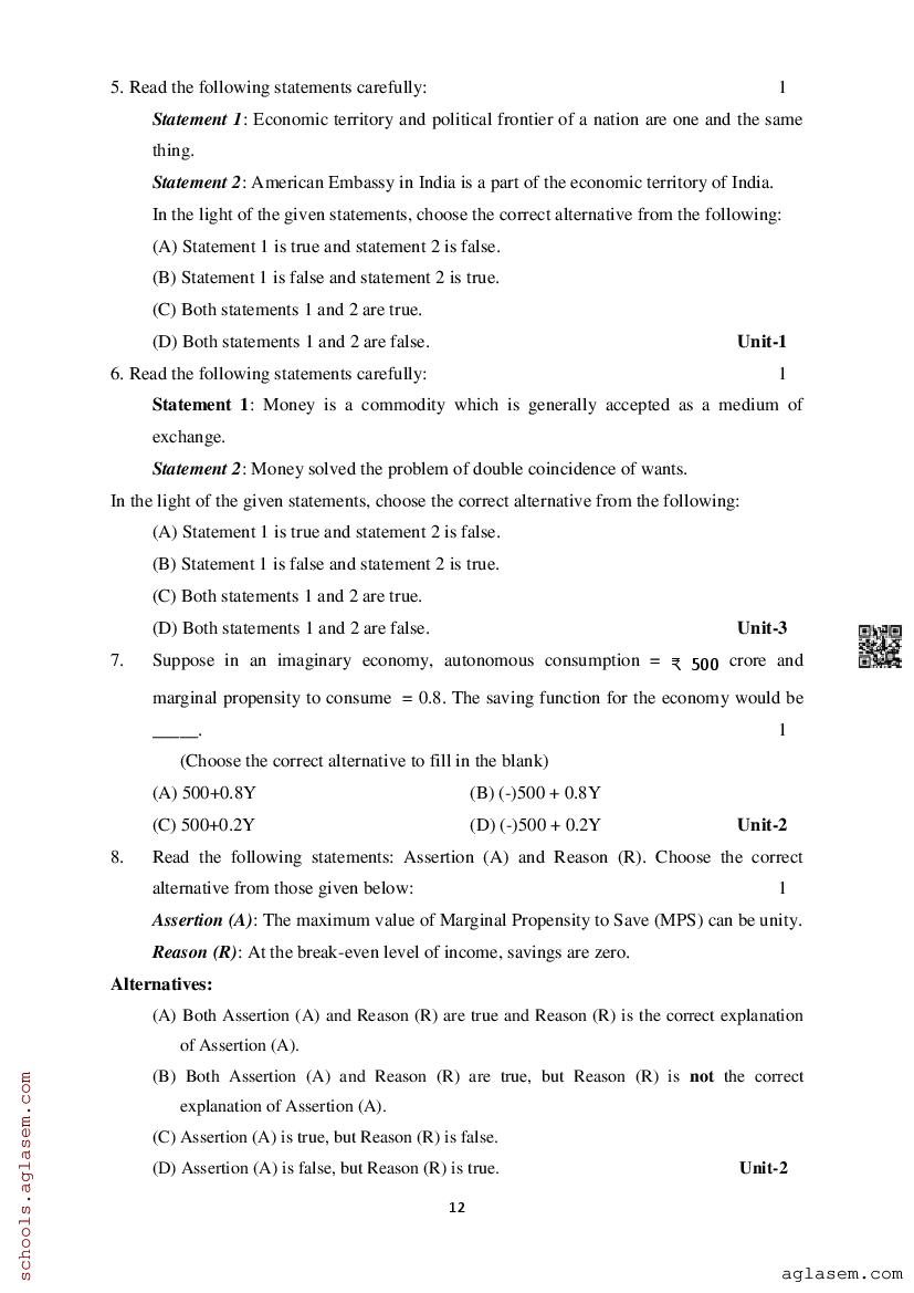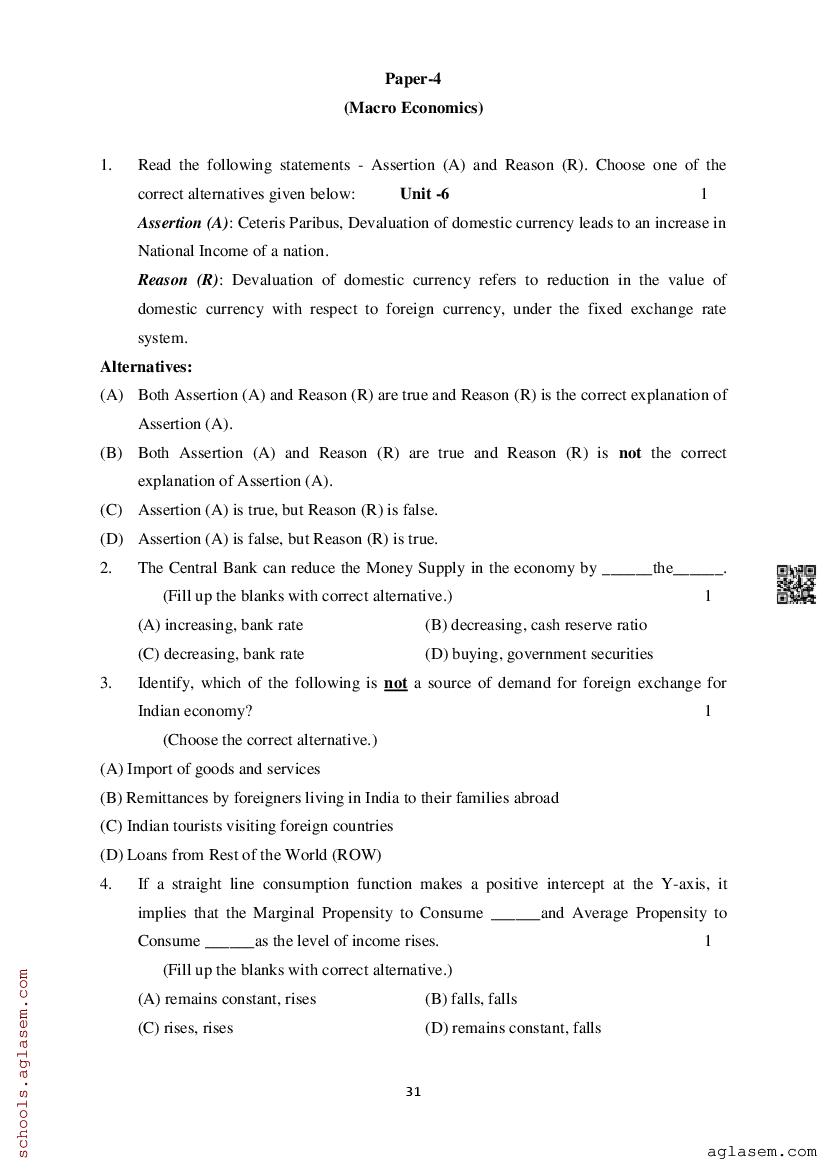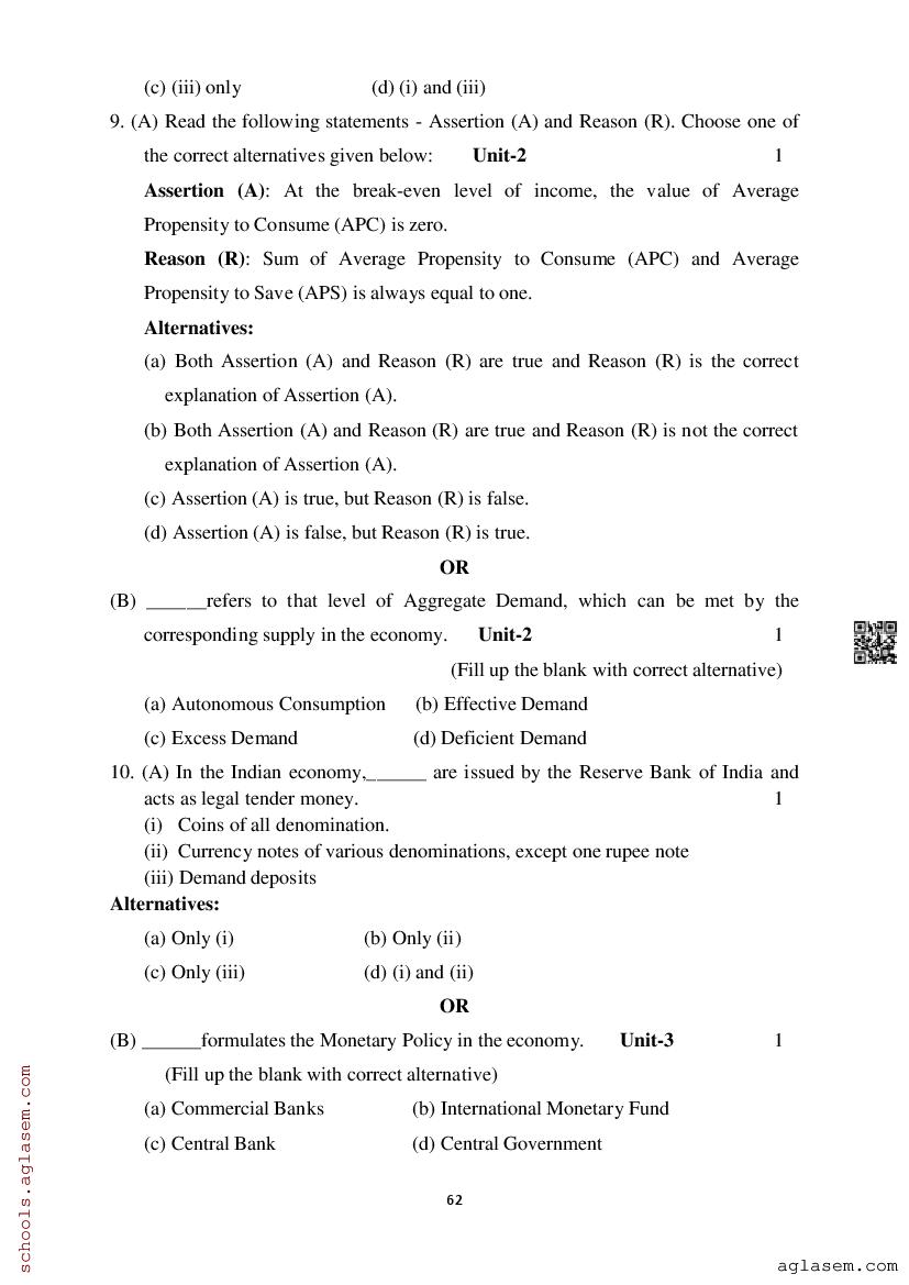 Study Material HereAssam Board Model Paper of Class 12 Economics