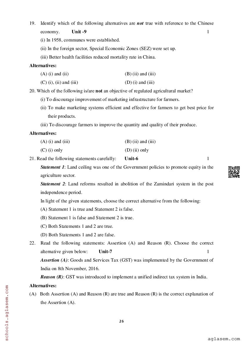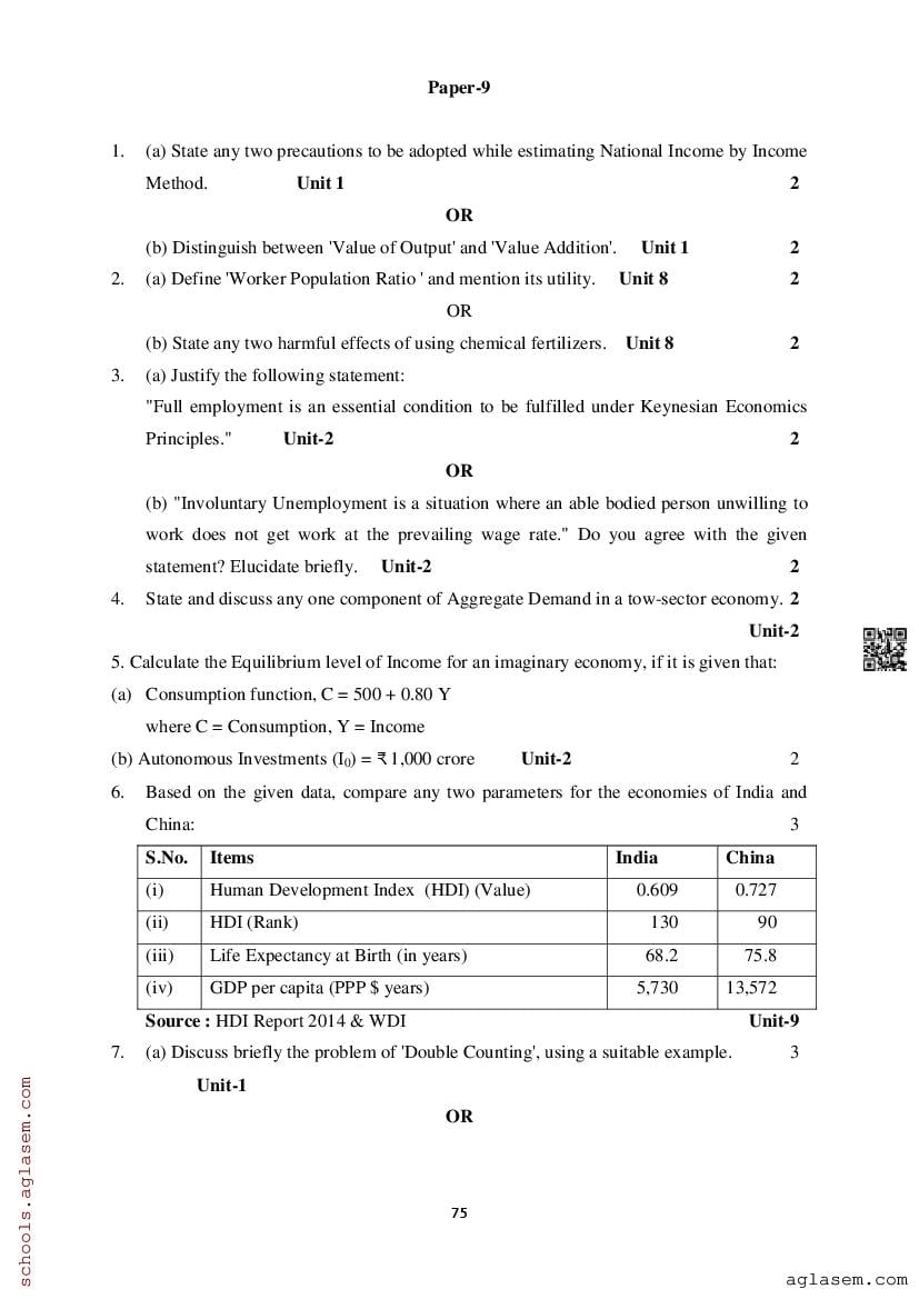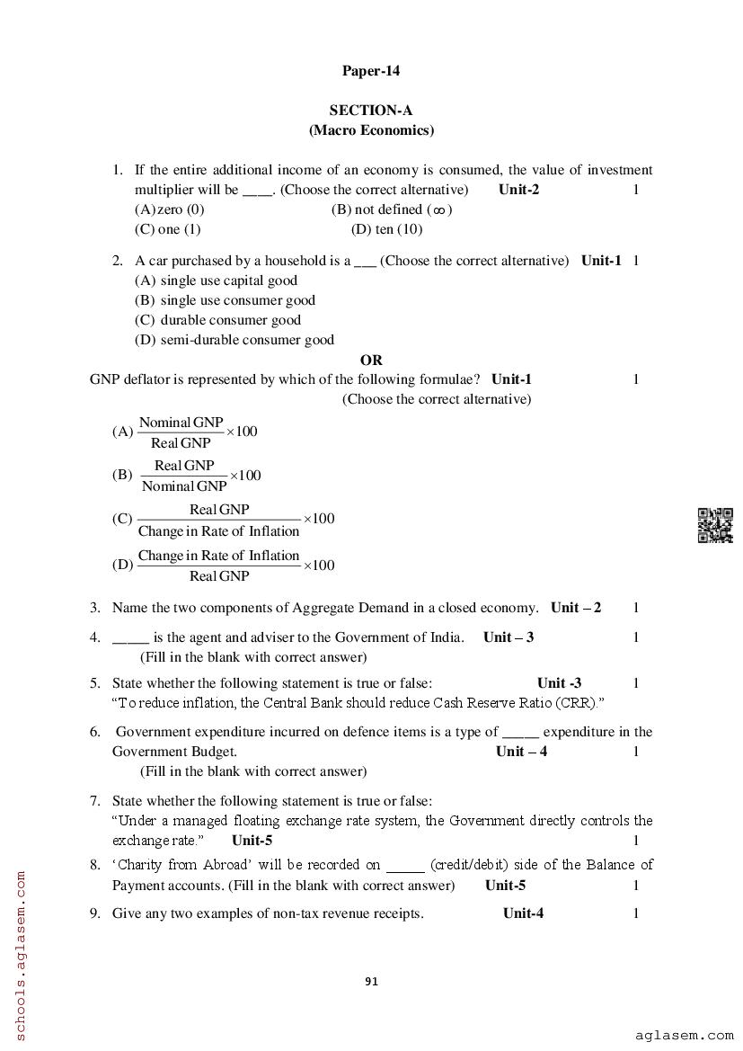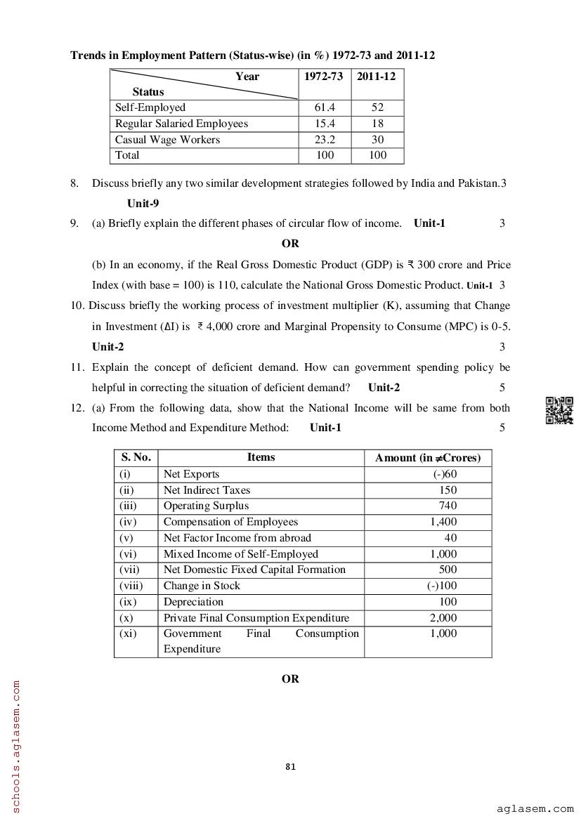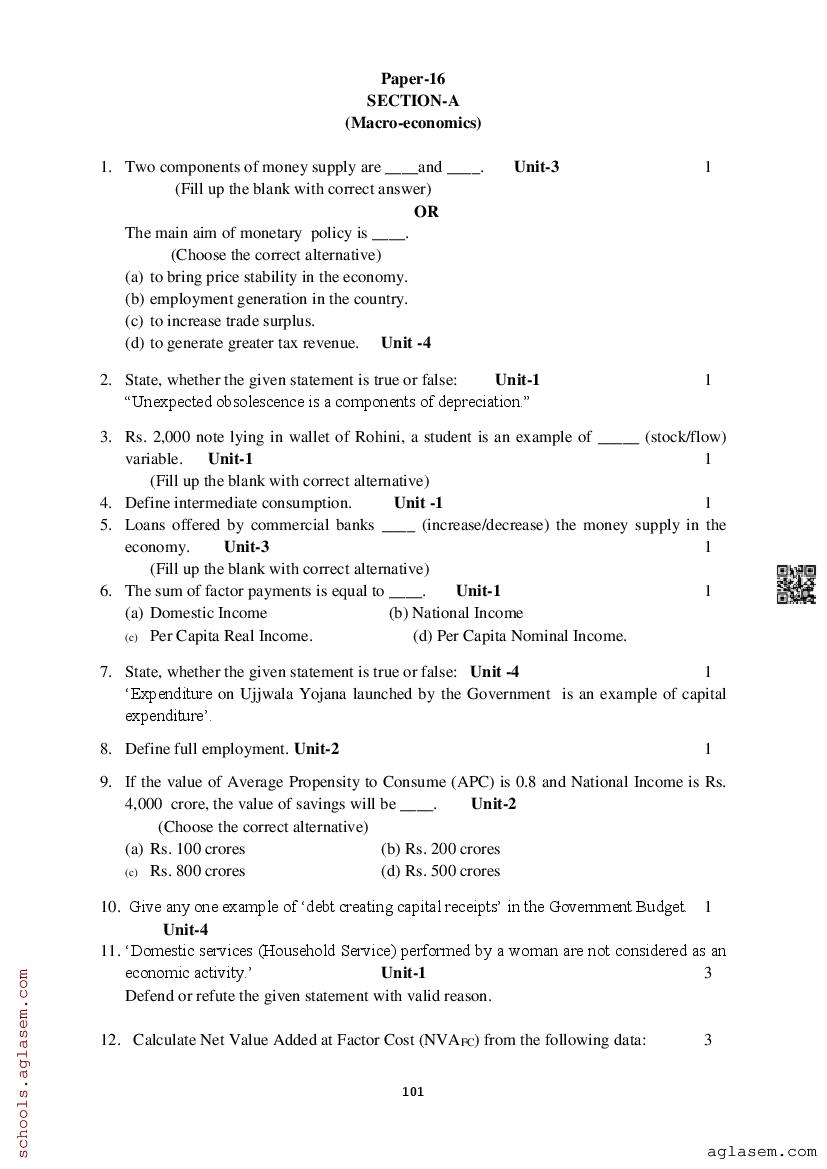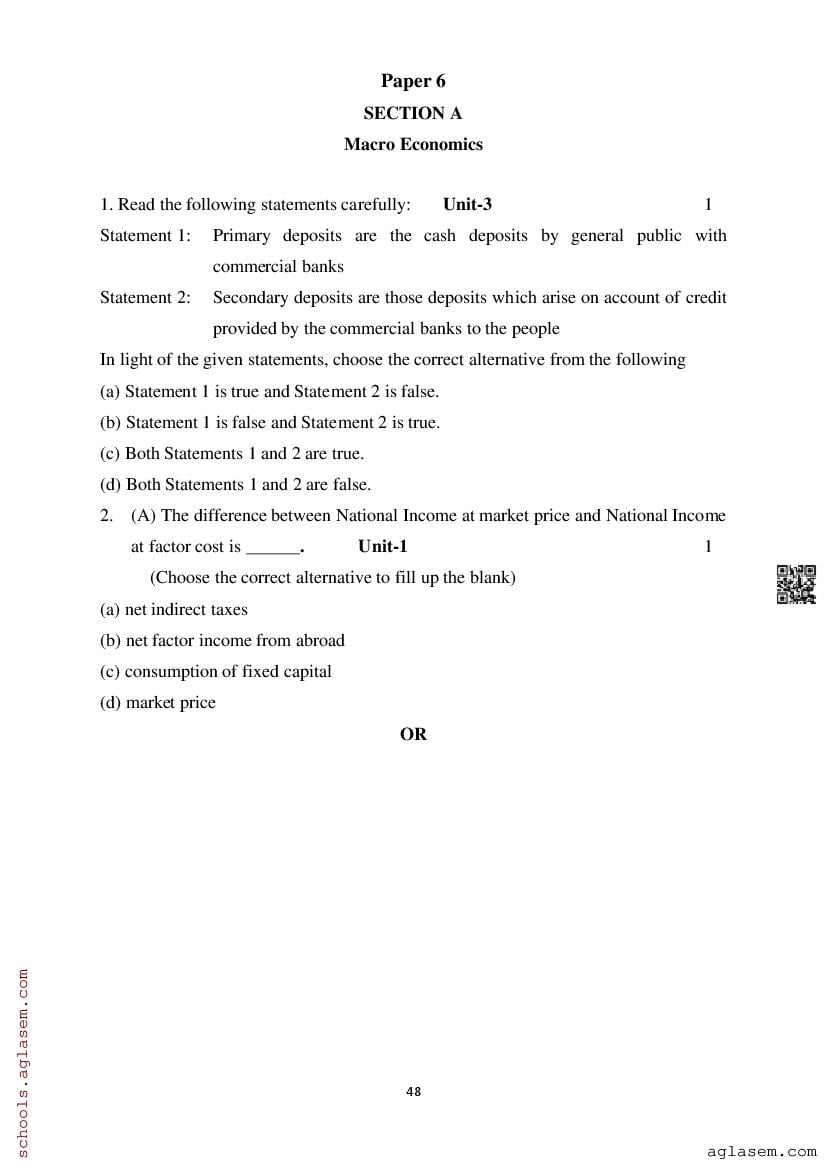 Study Material HereAssam Board Model Paper of Class 12 Economics