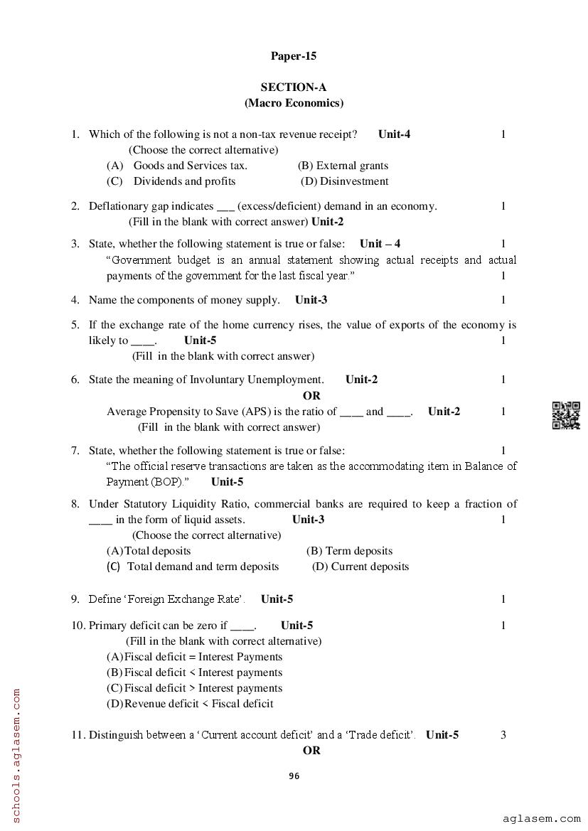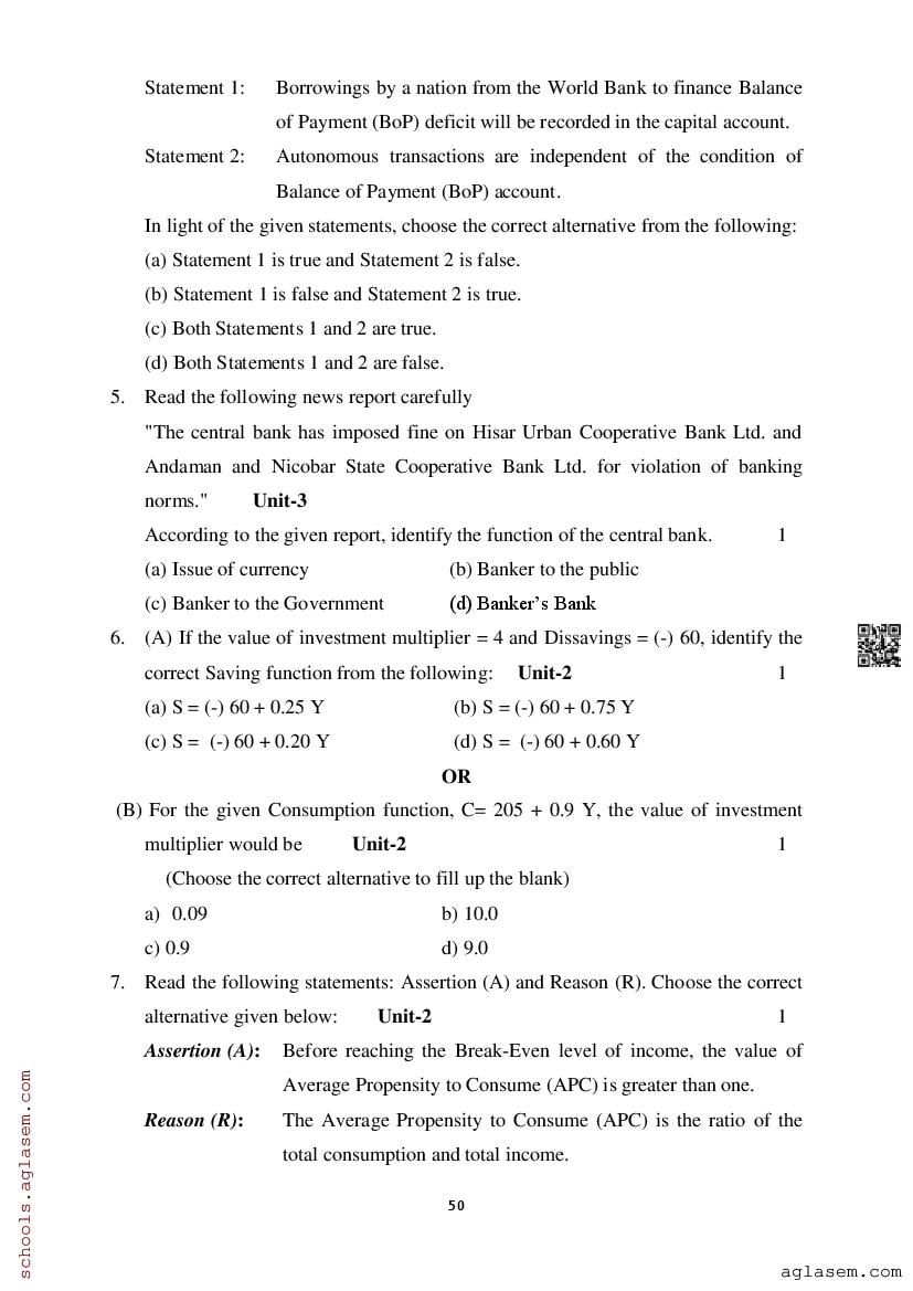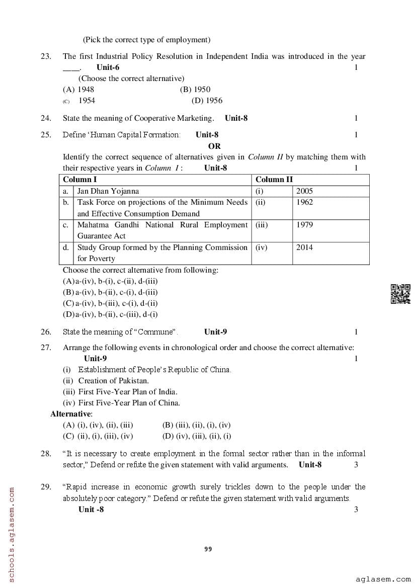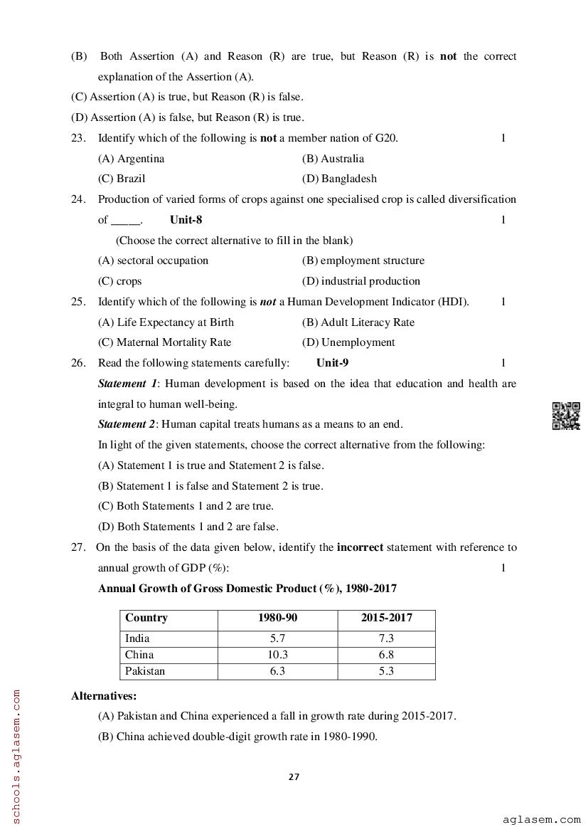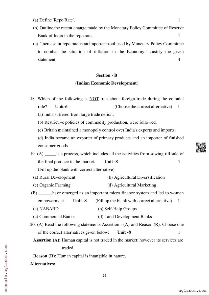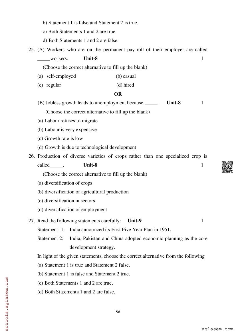 Study Material HereAssam Board Model Paper of Class 12 Economics