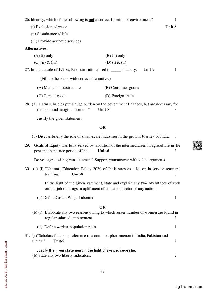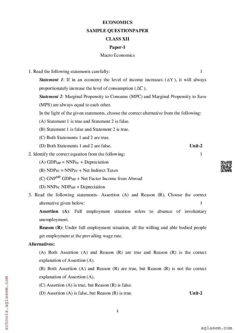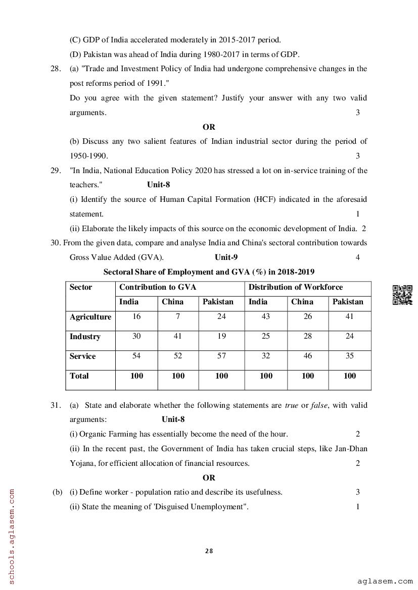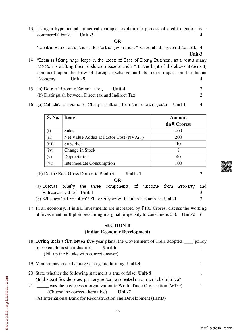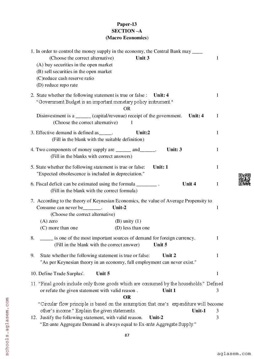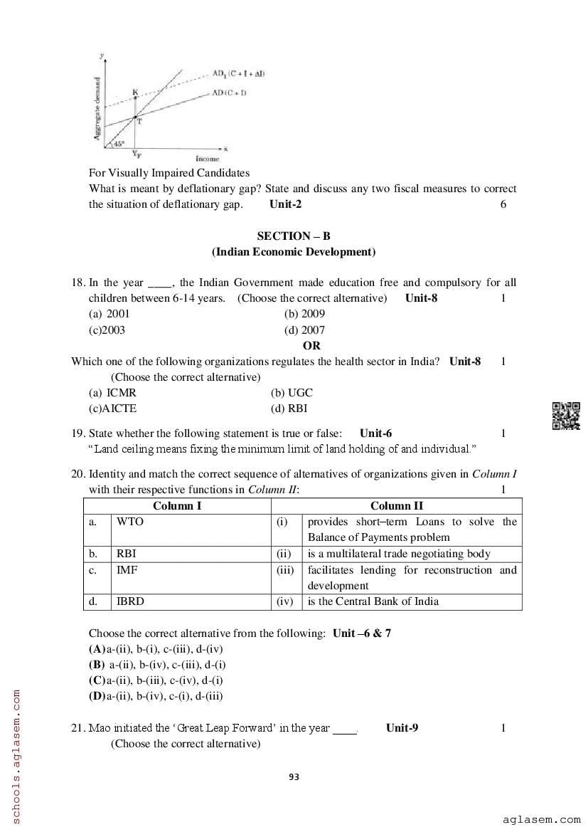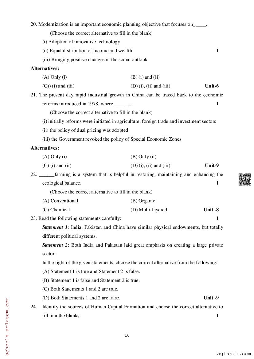 Study Material HereAssam Board Model Paper of Class 12 Economics