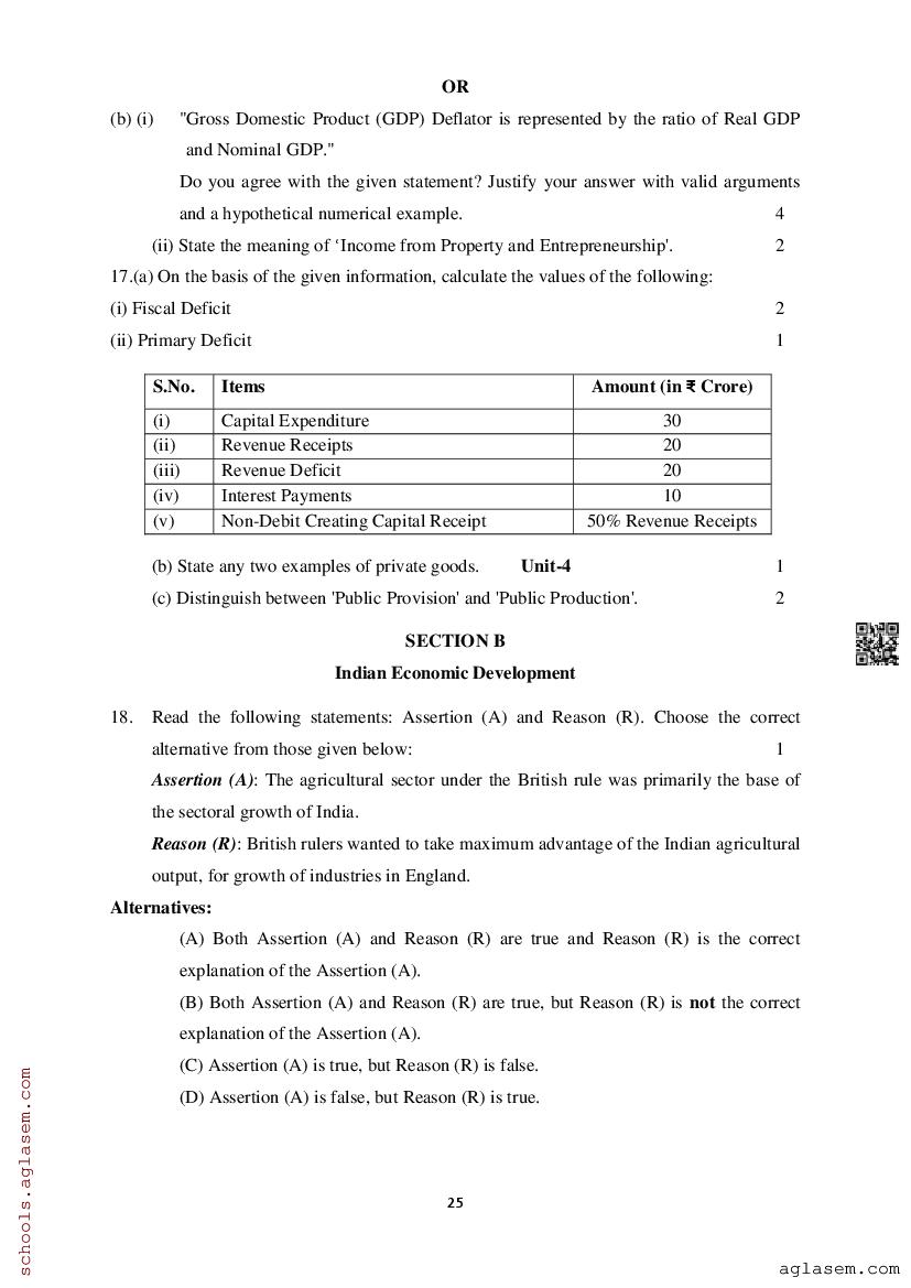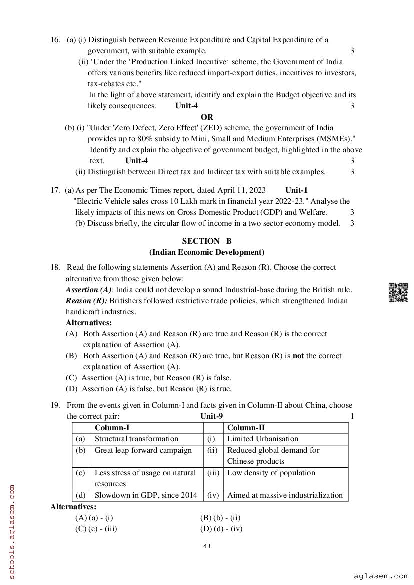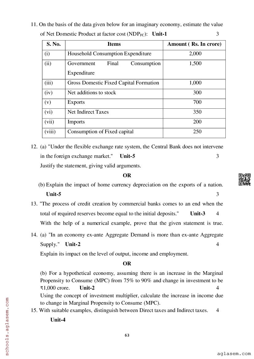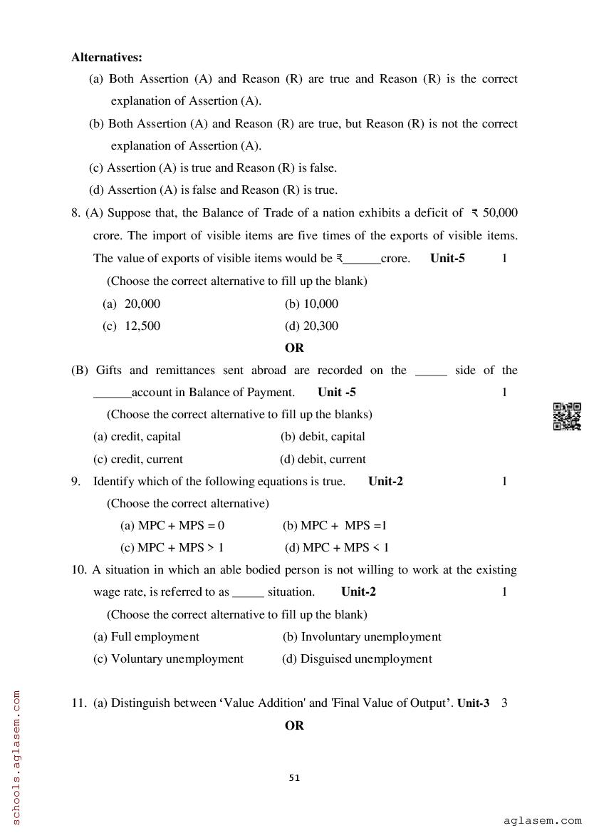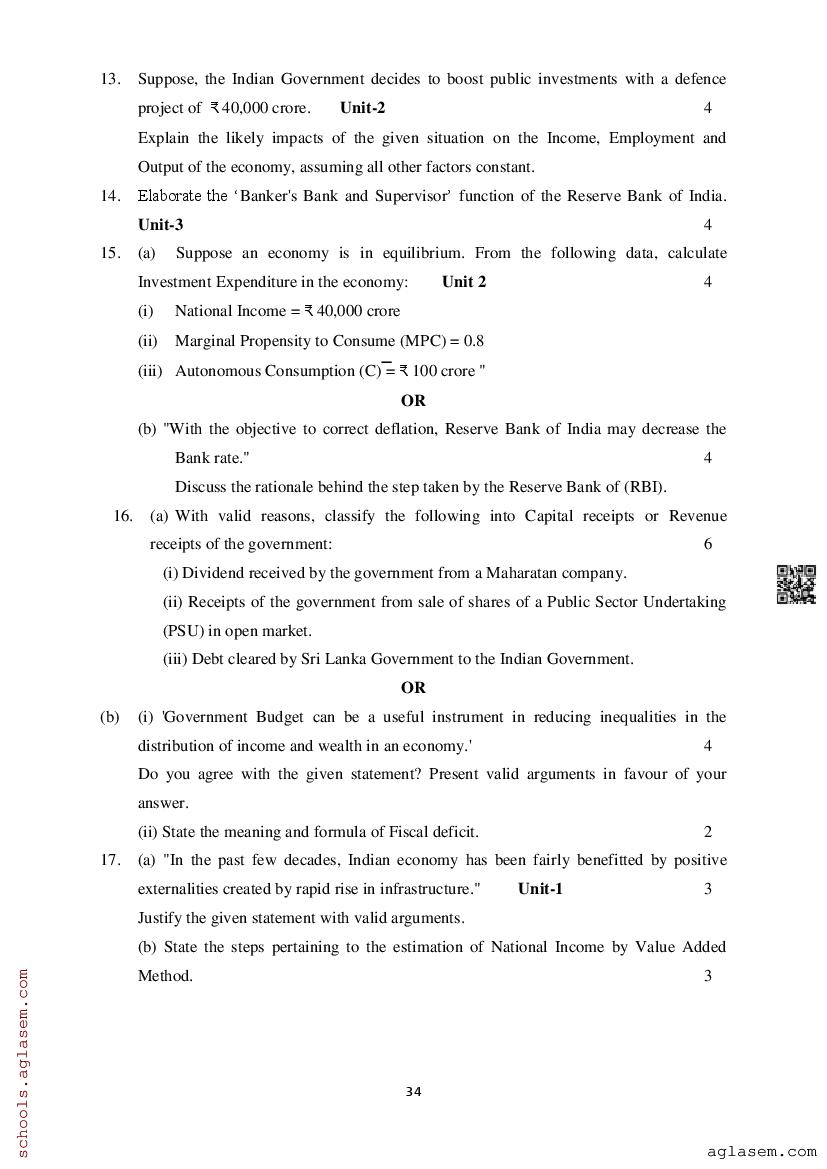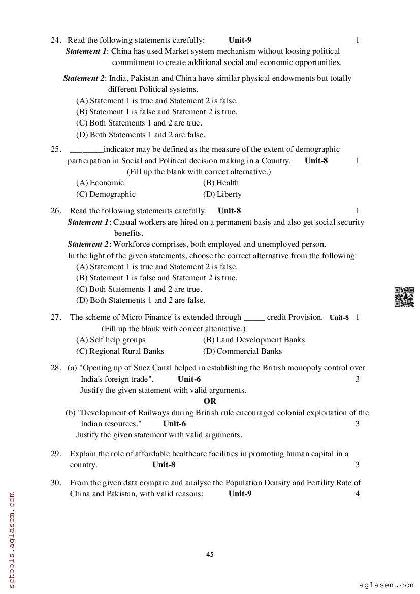 Study Material HereAssam Board Model Paper of Class 12 Economics