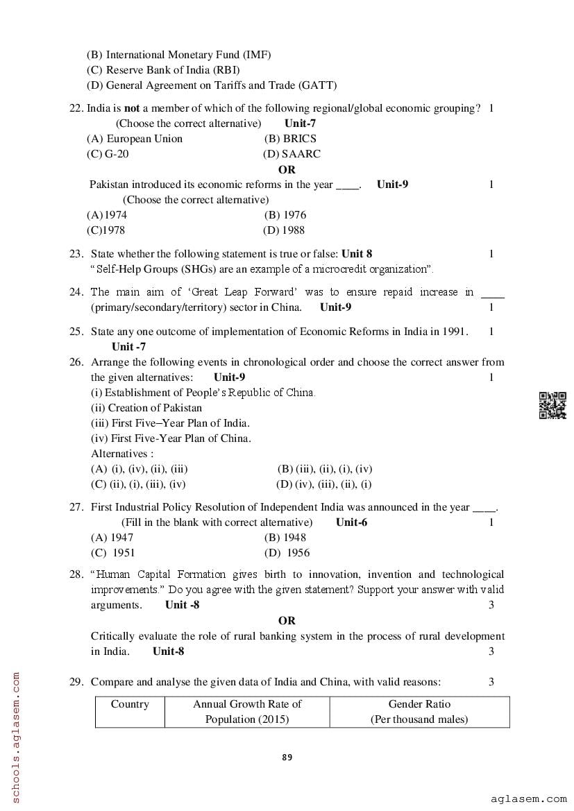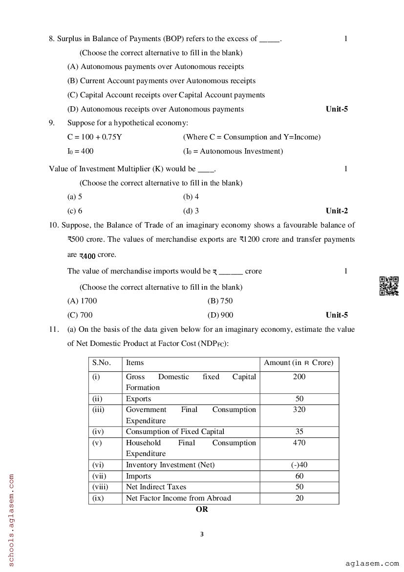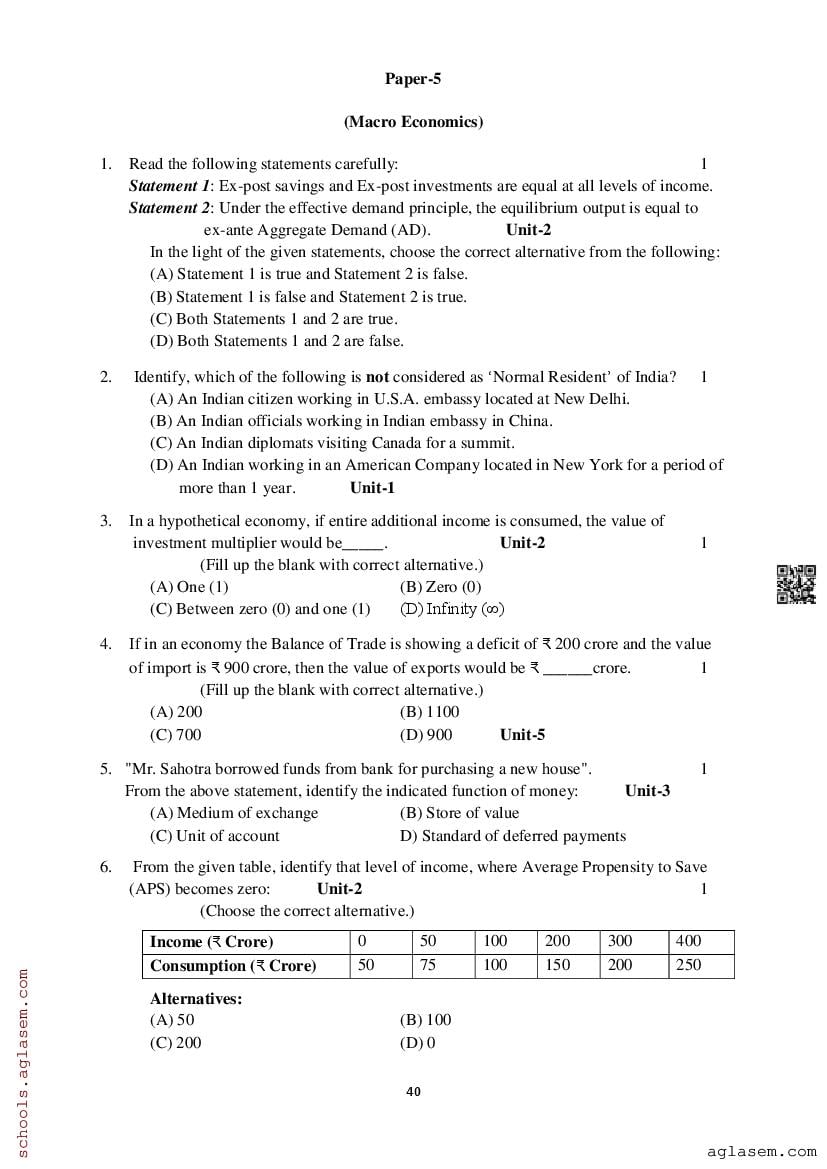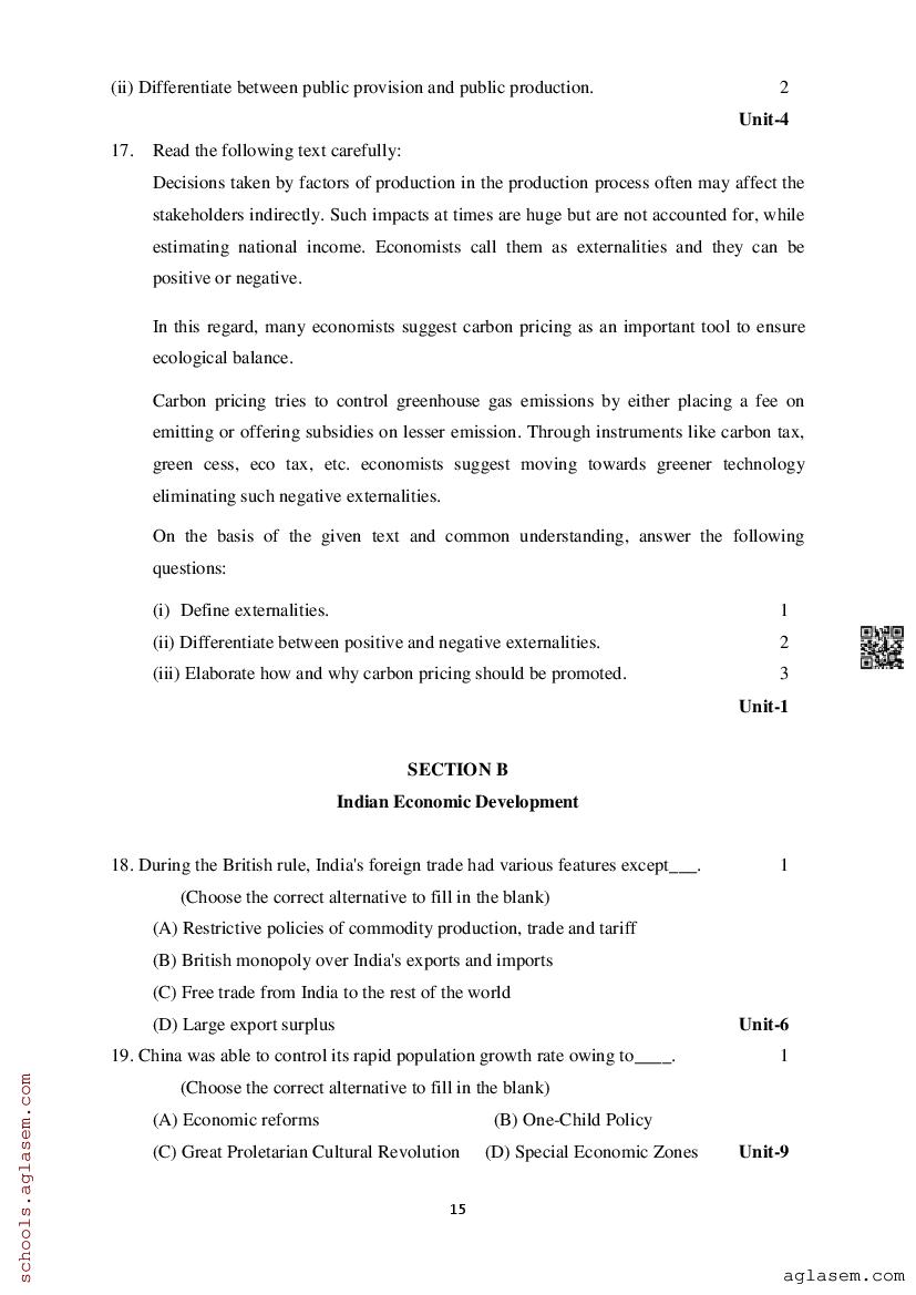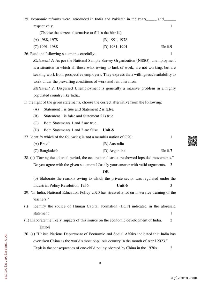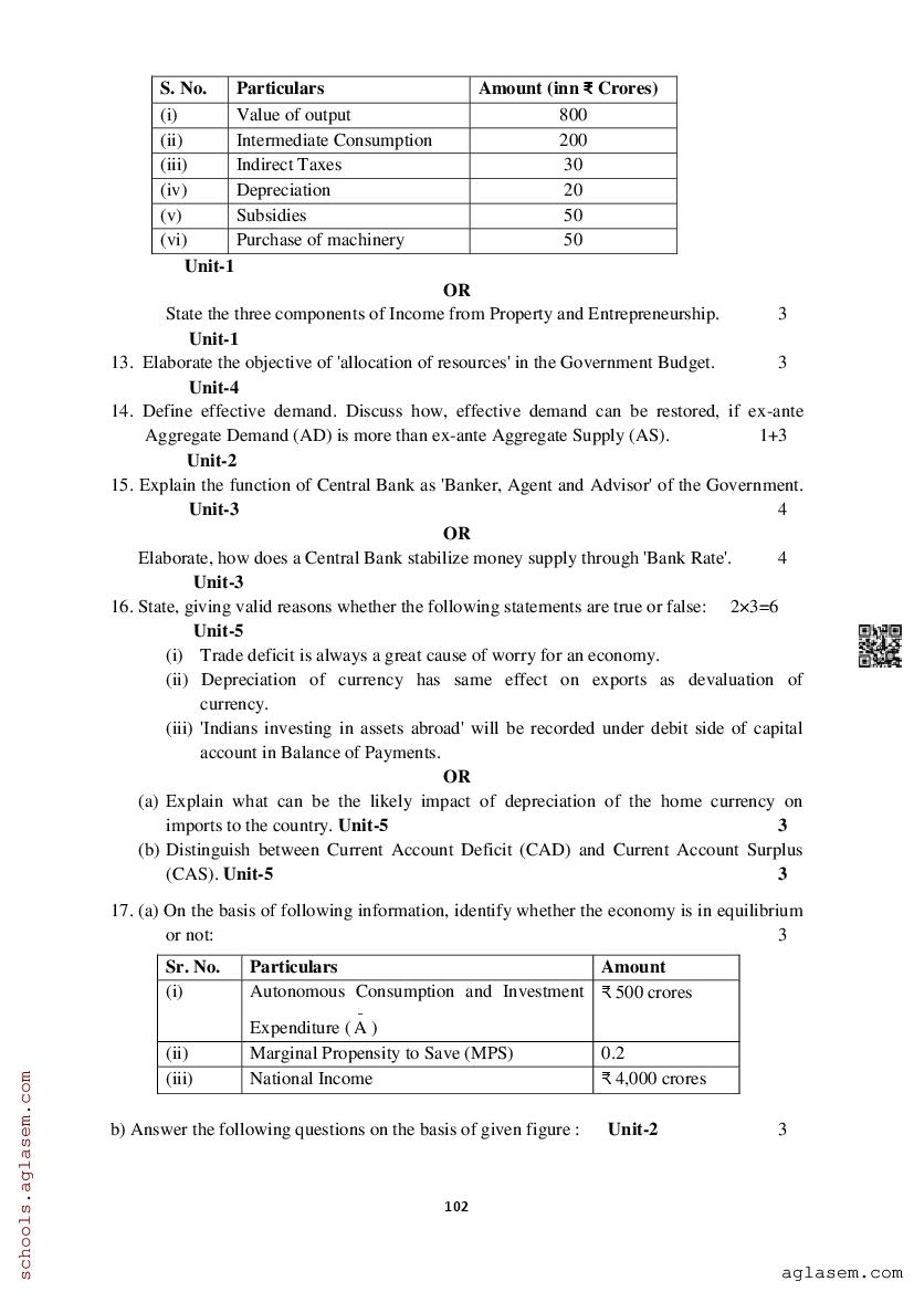 Study Material HereAssam Board Model Paper of Class 12 Economics