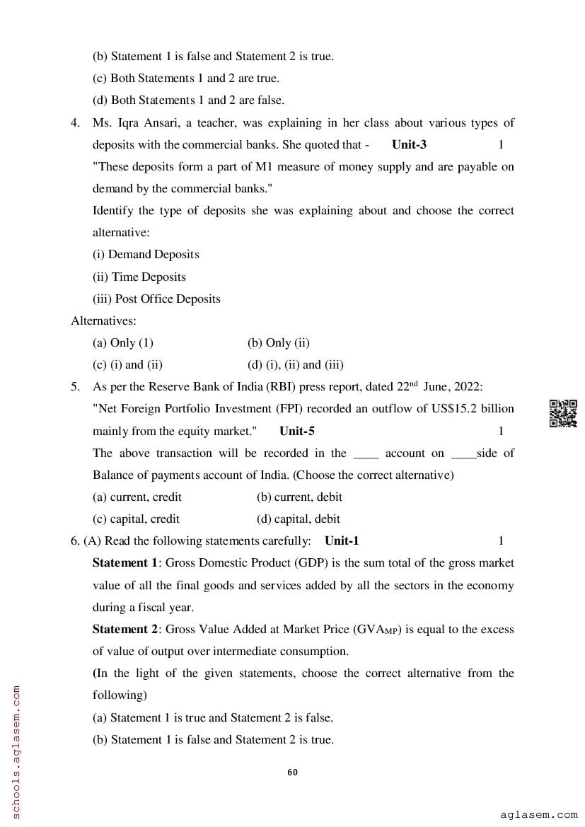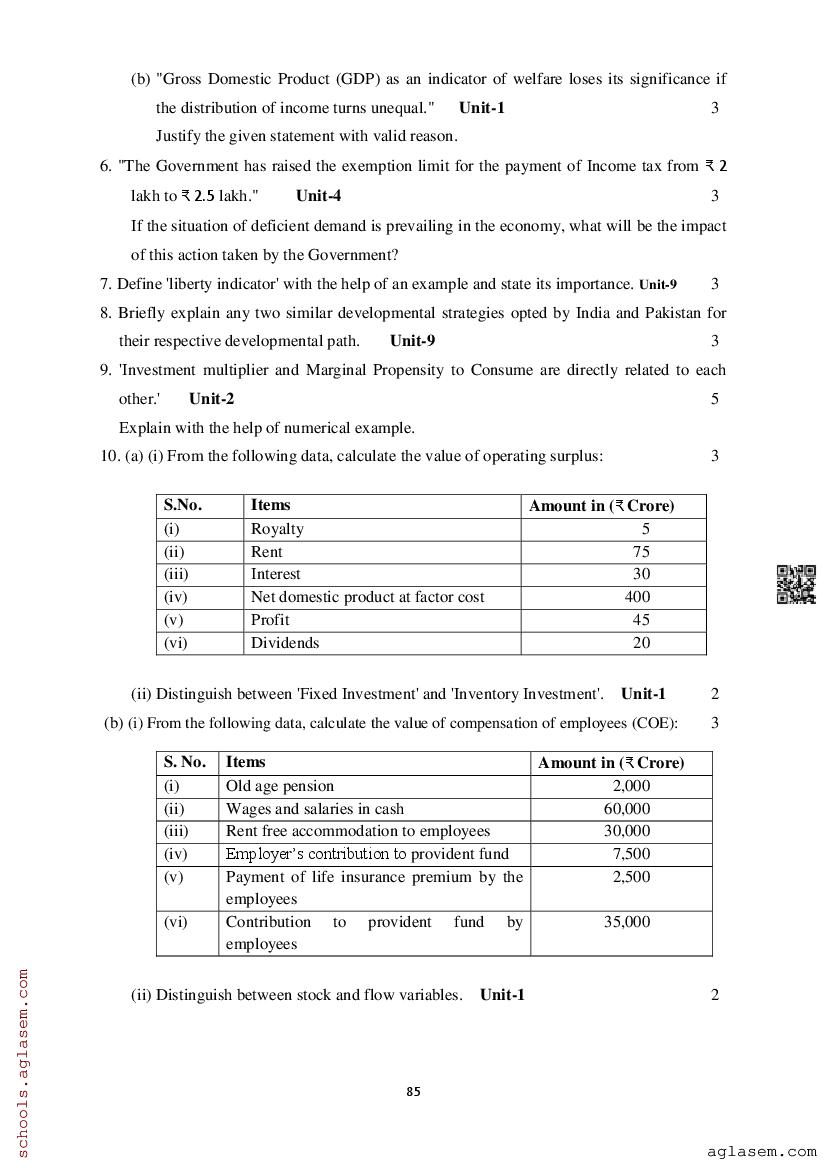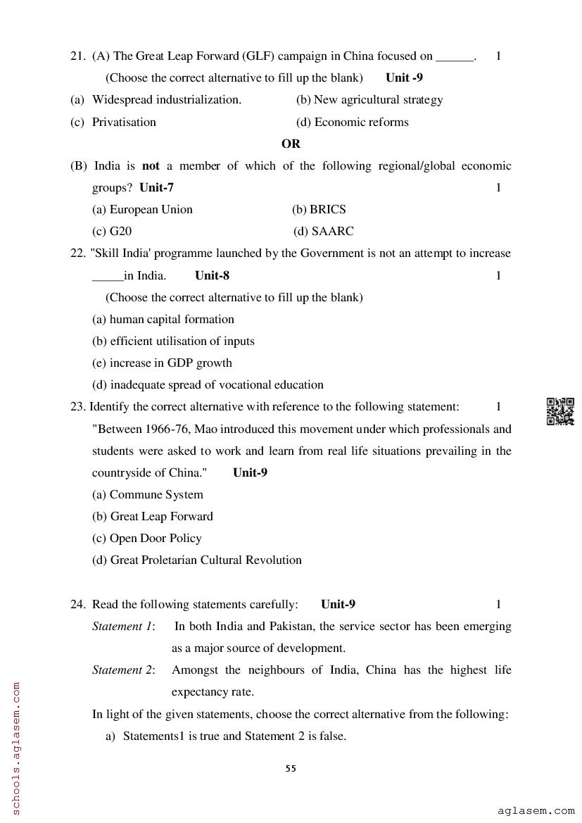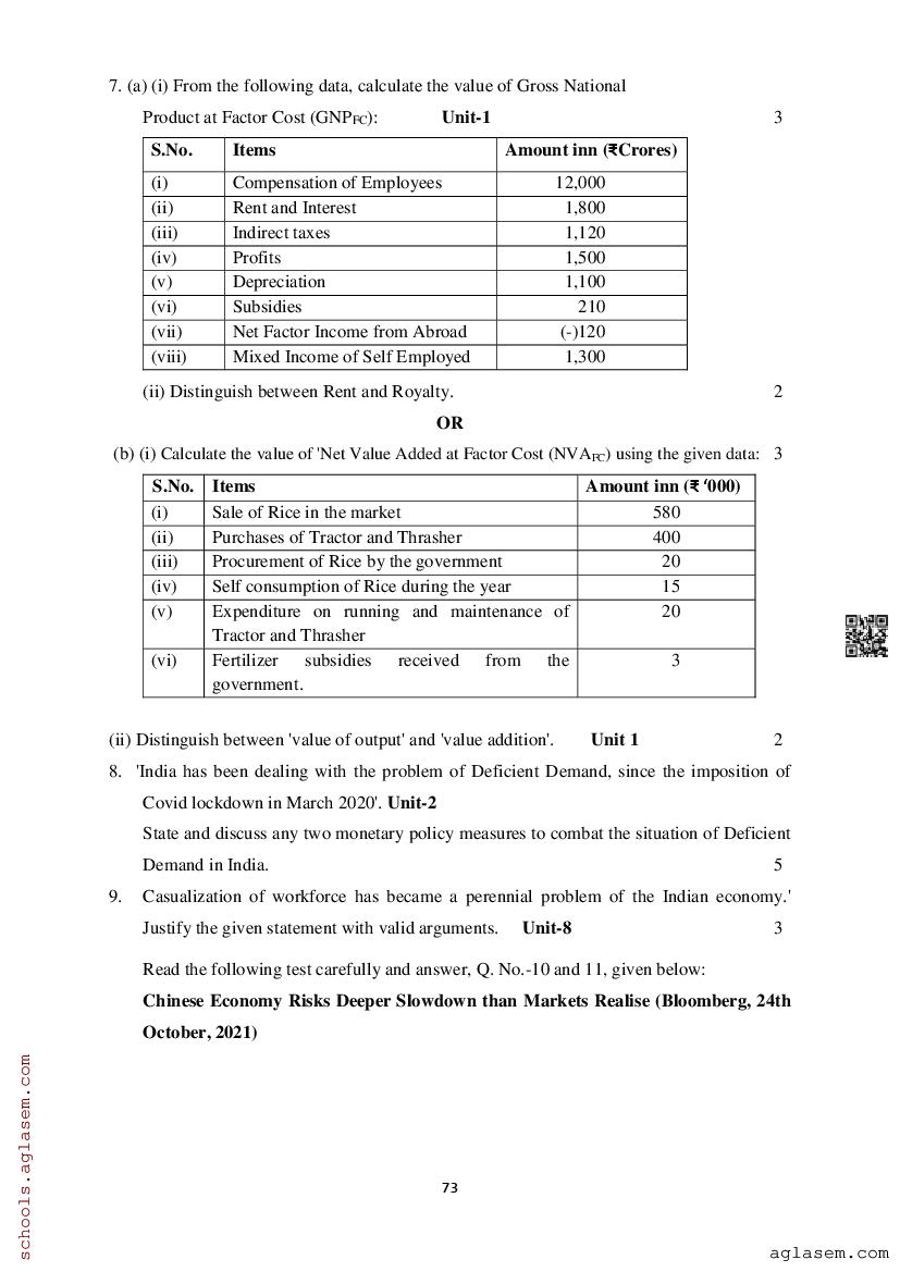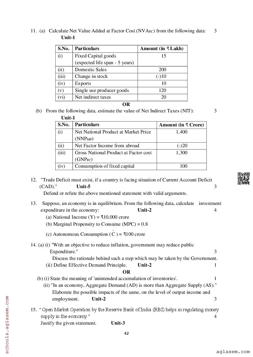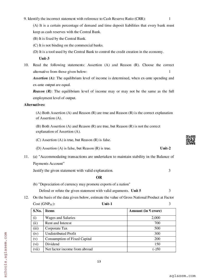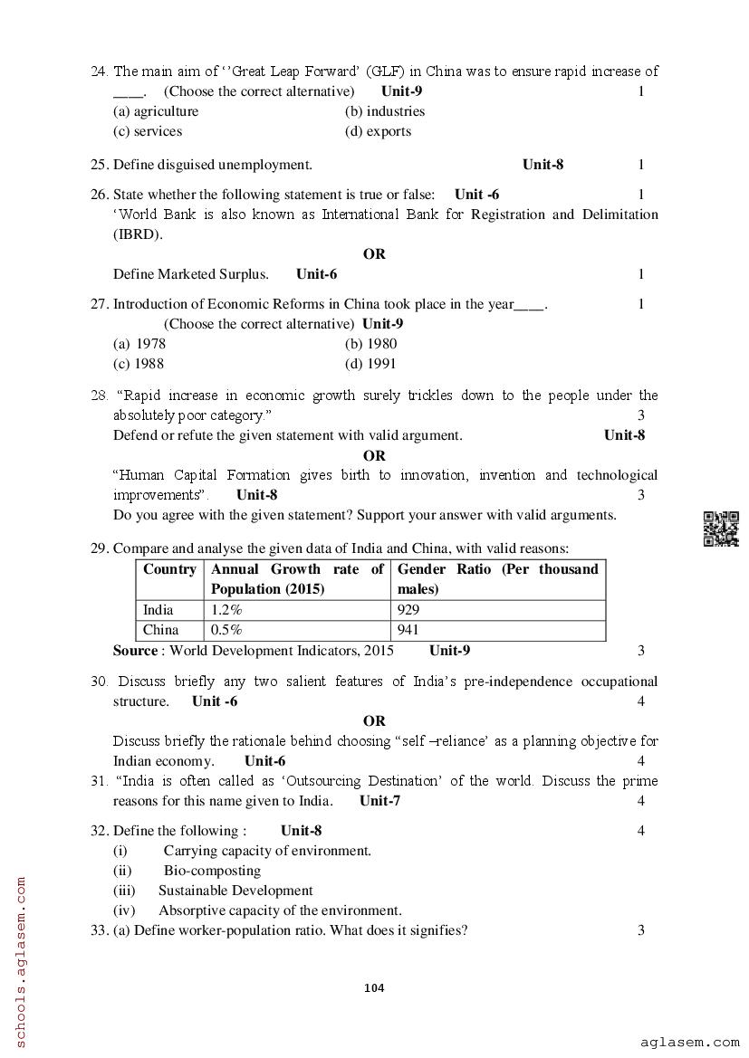 Study Material HereAssam Board Model Paper of Class 12 Economics