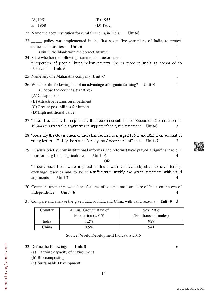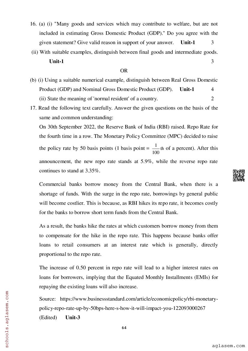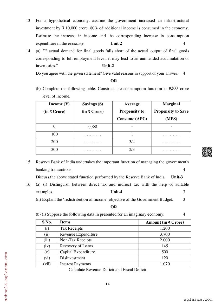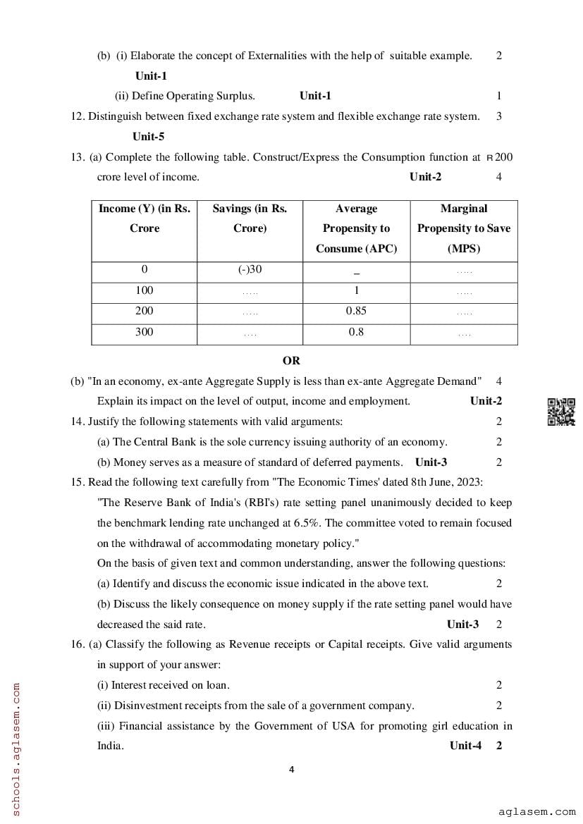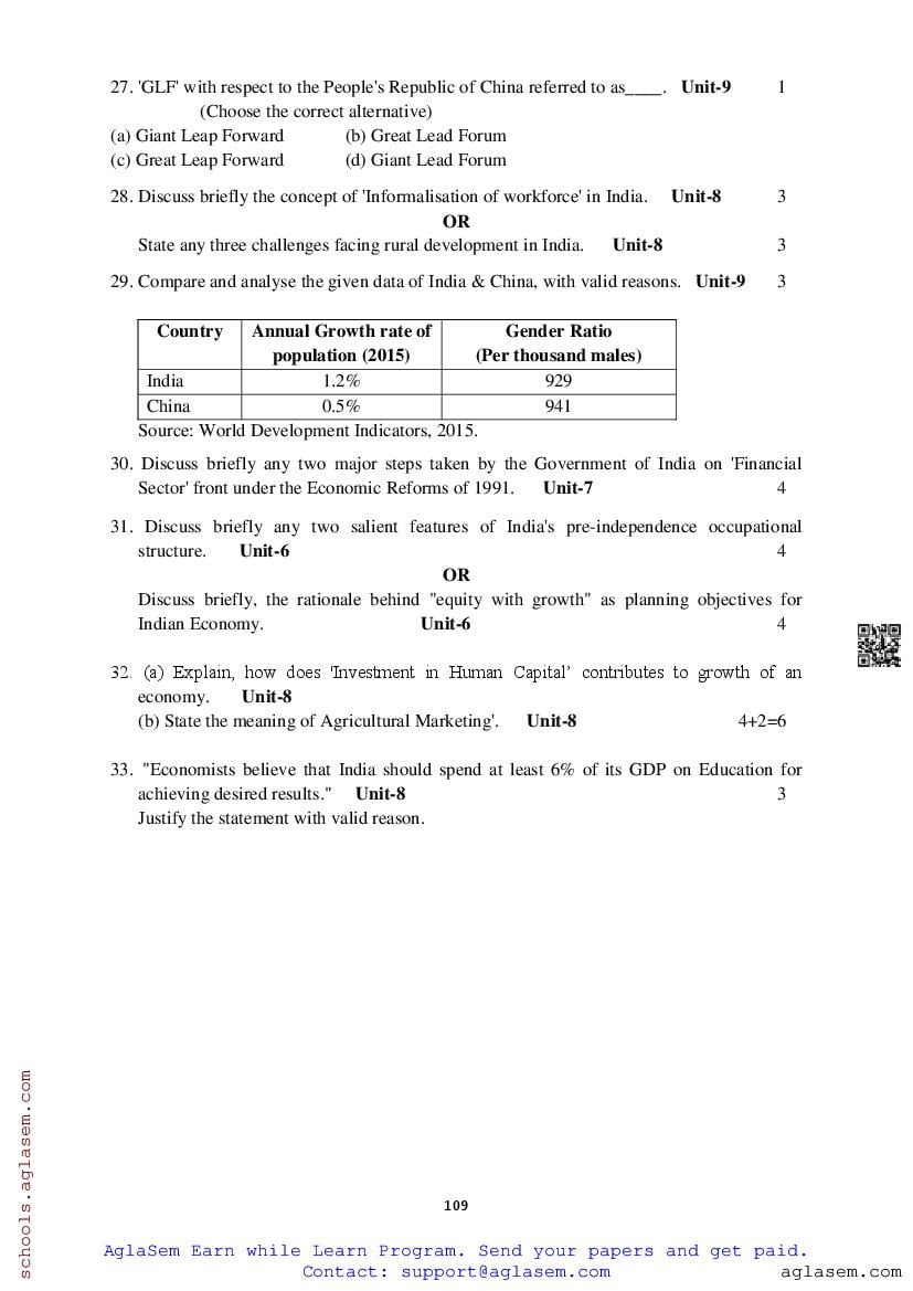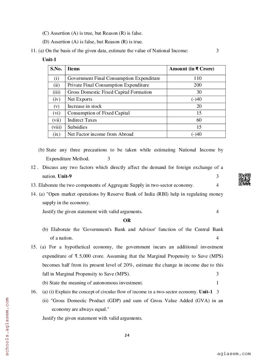 Study Material HereAssam Board Model Paper of Class 12 Economics