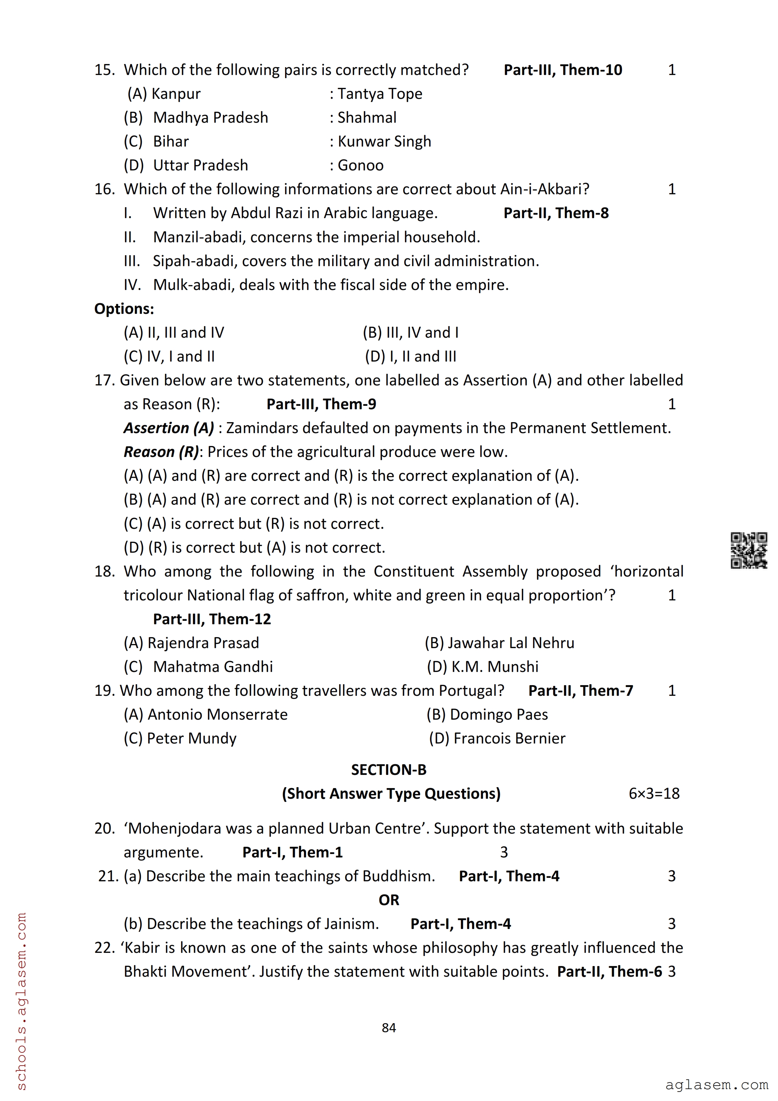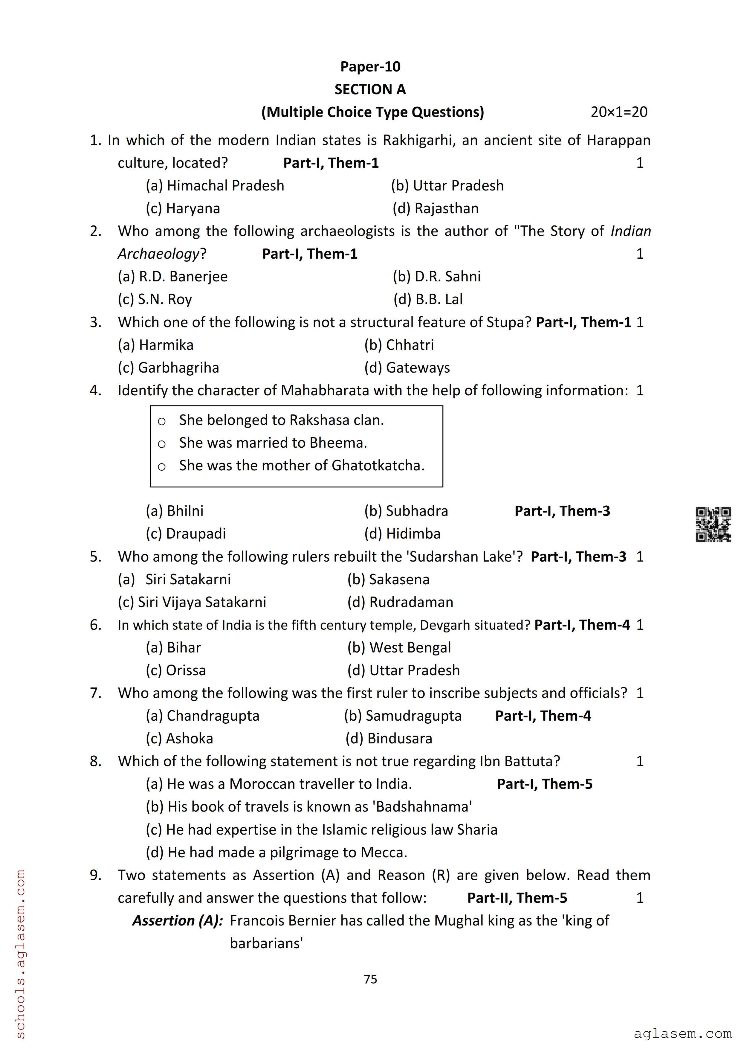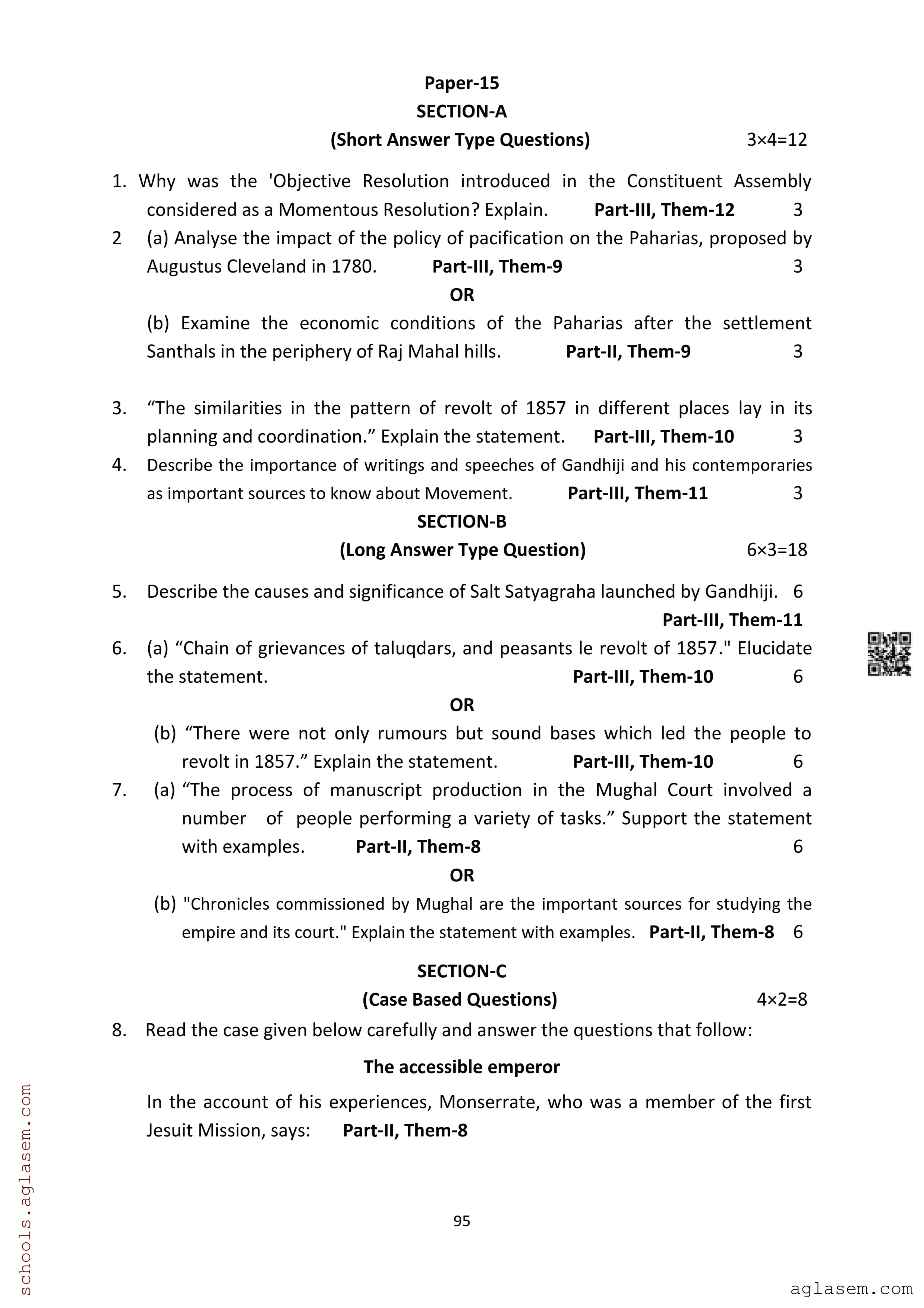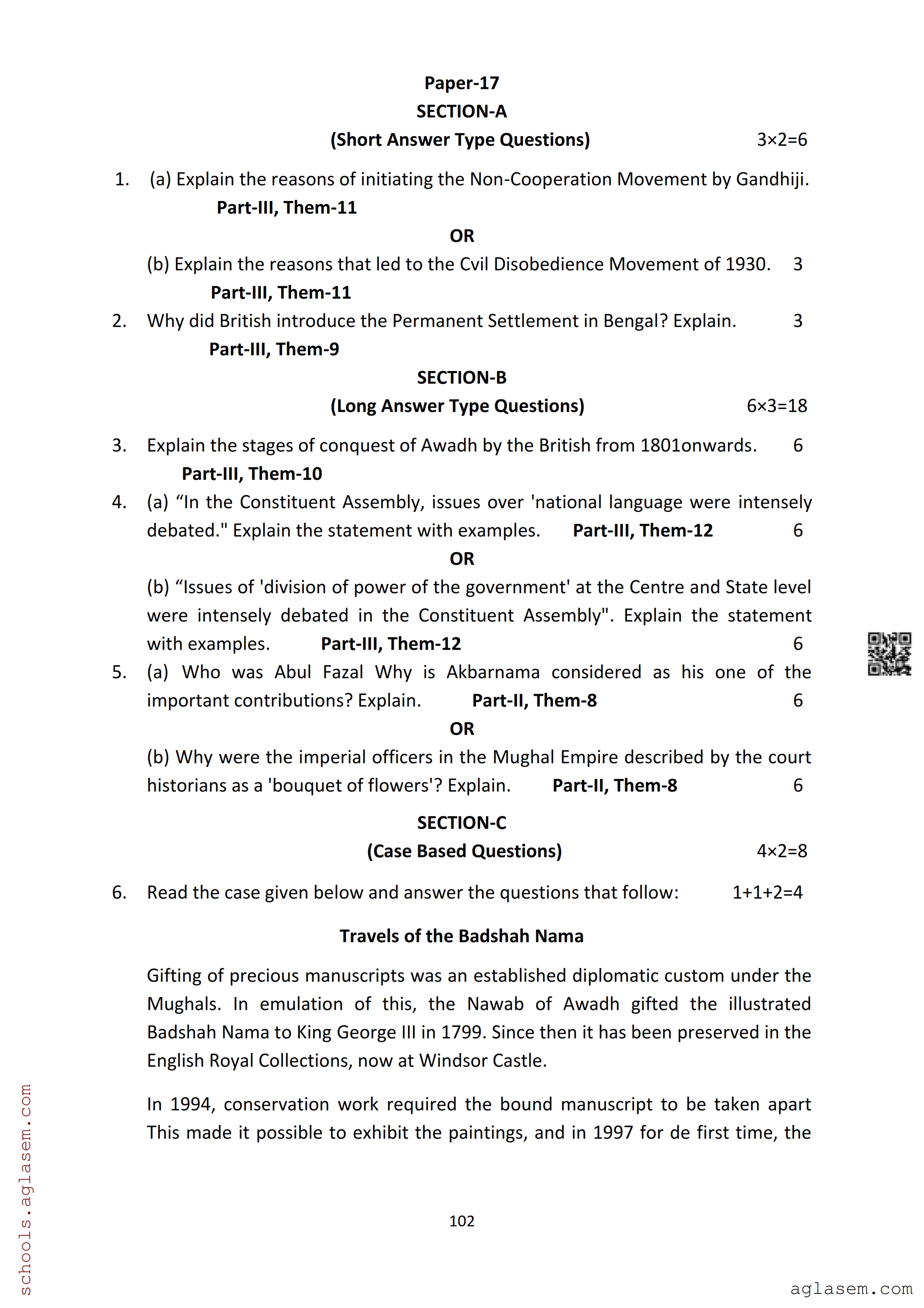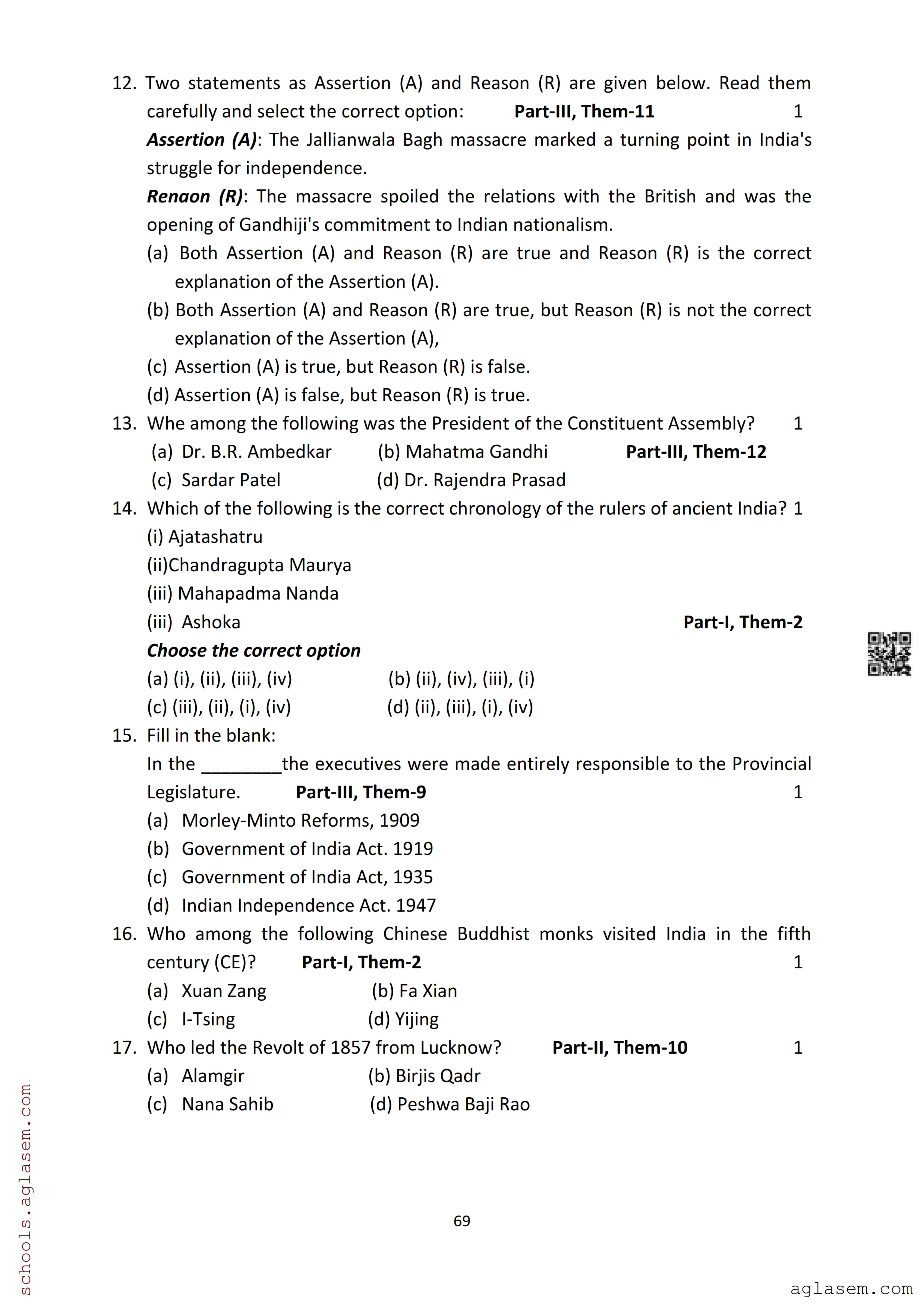 | Study Material Here | Assam Board Model Paper of Class 12 History |