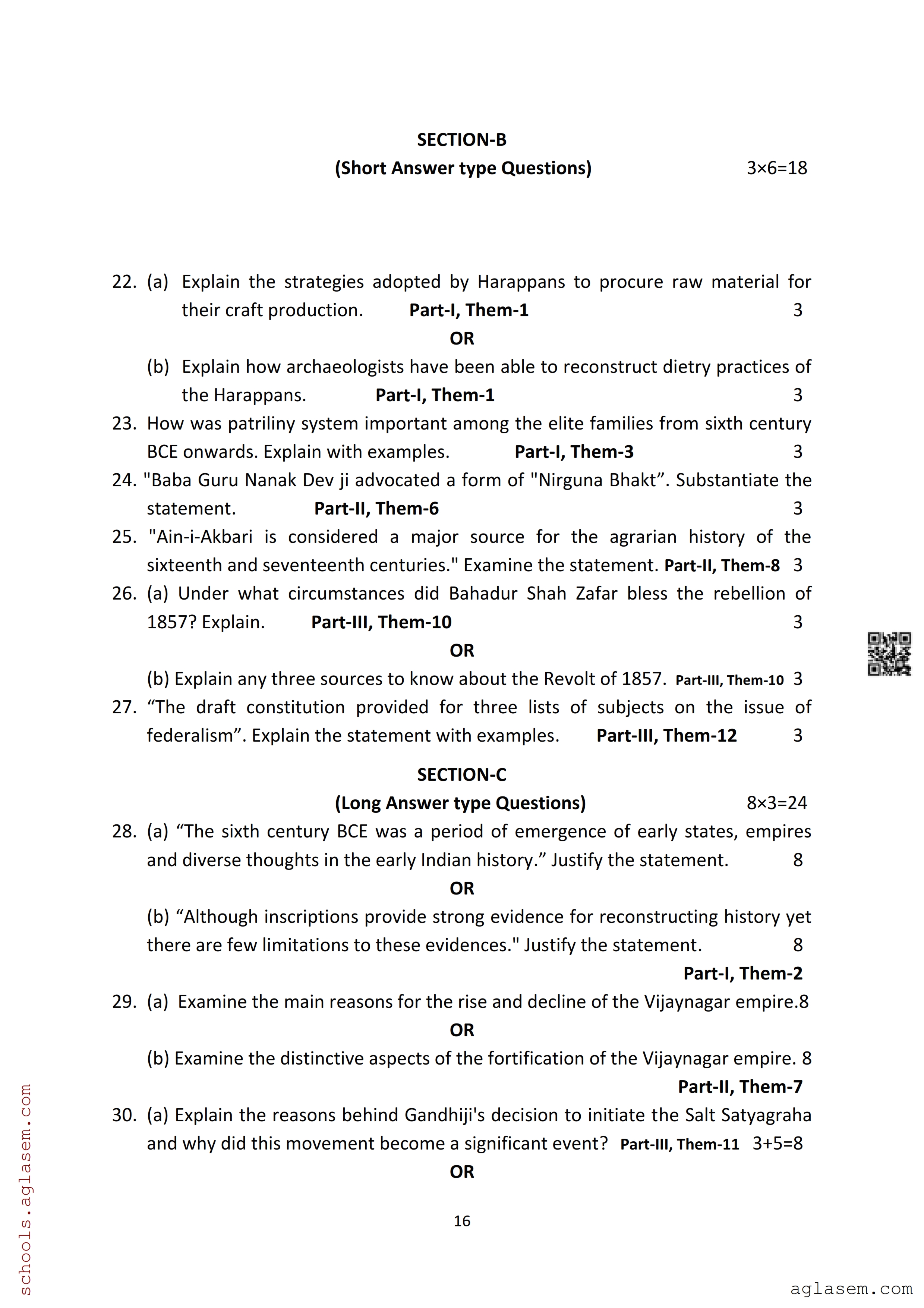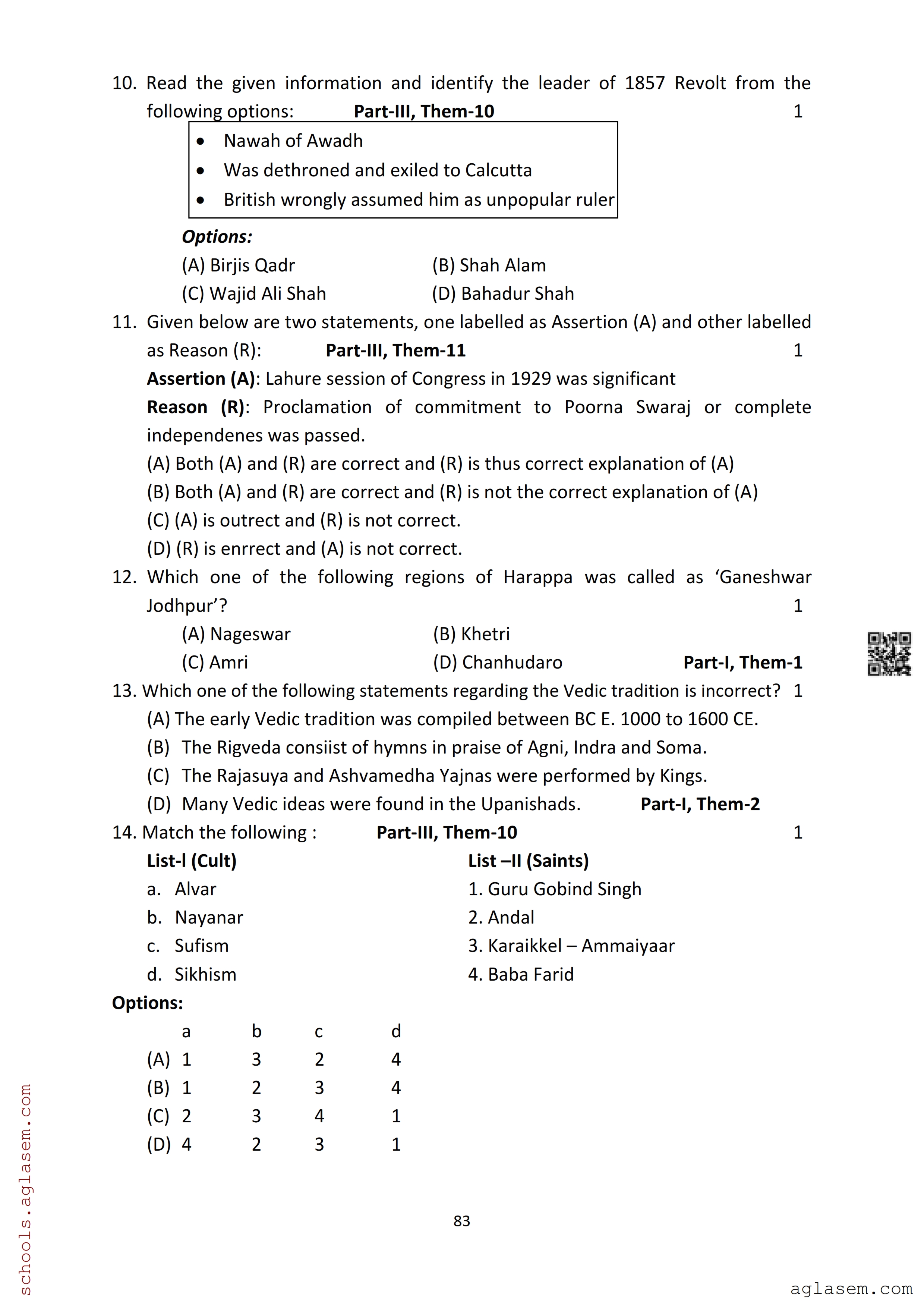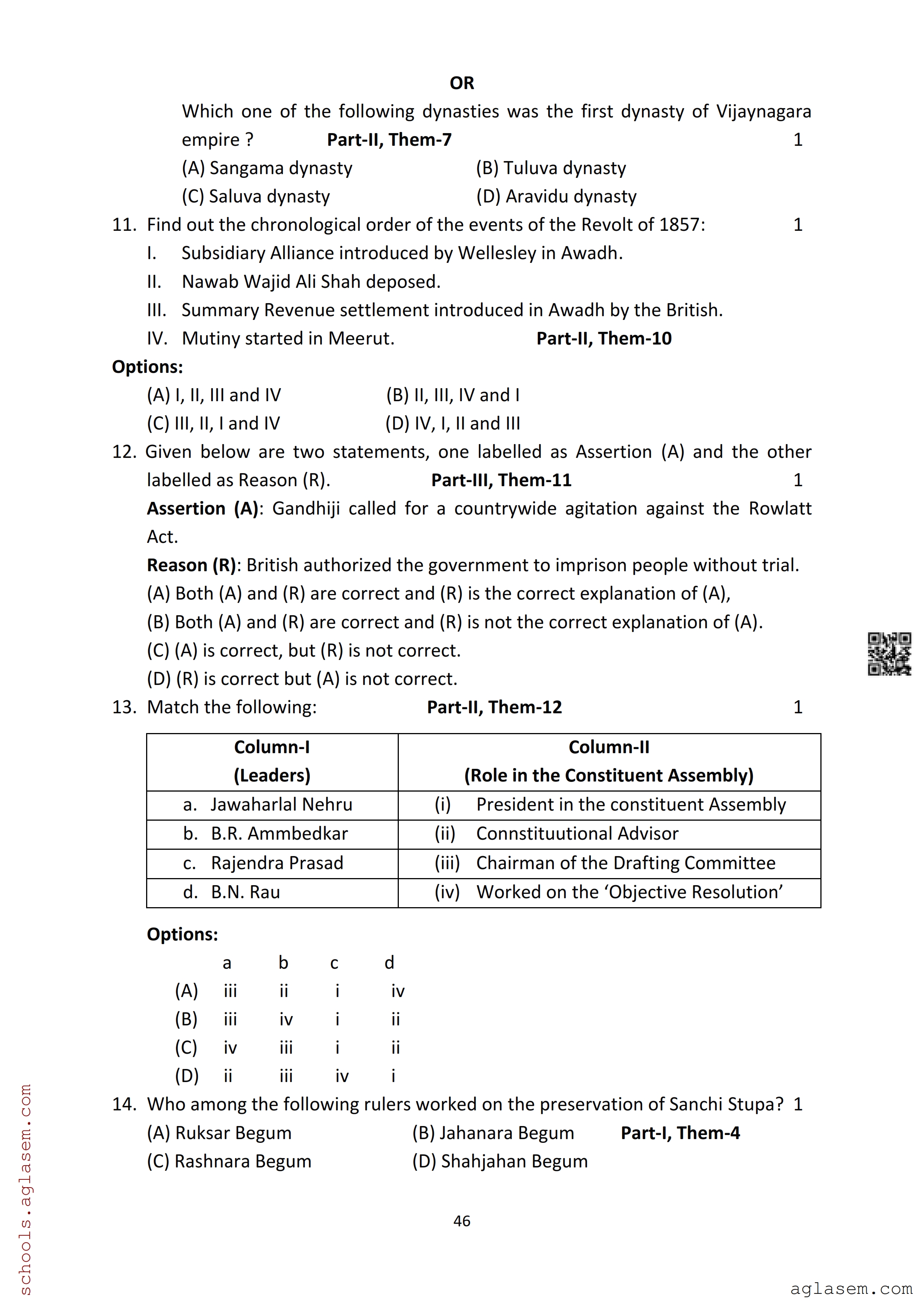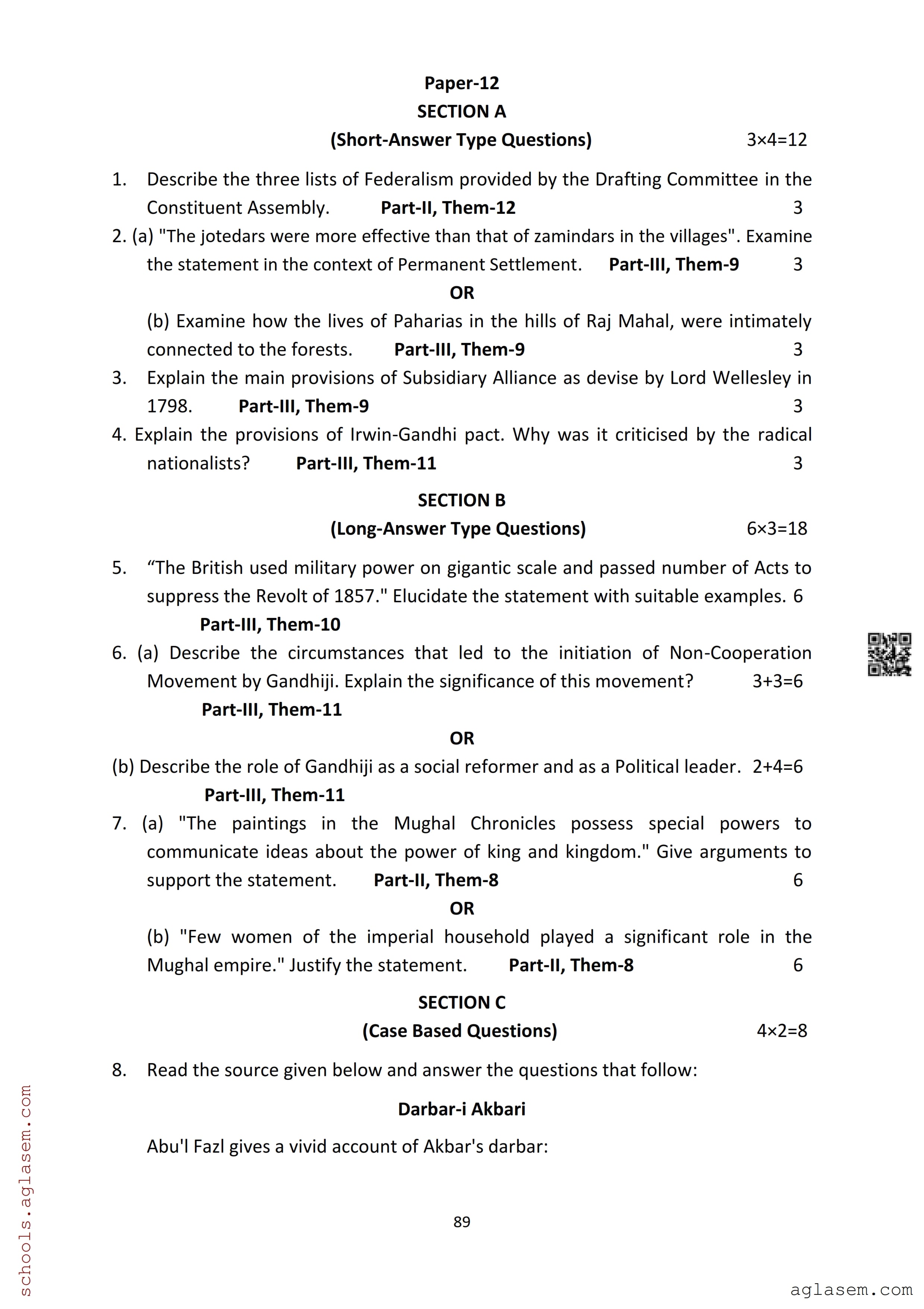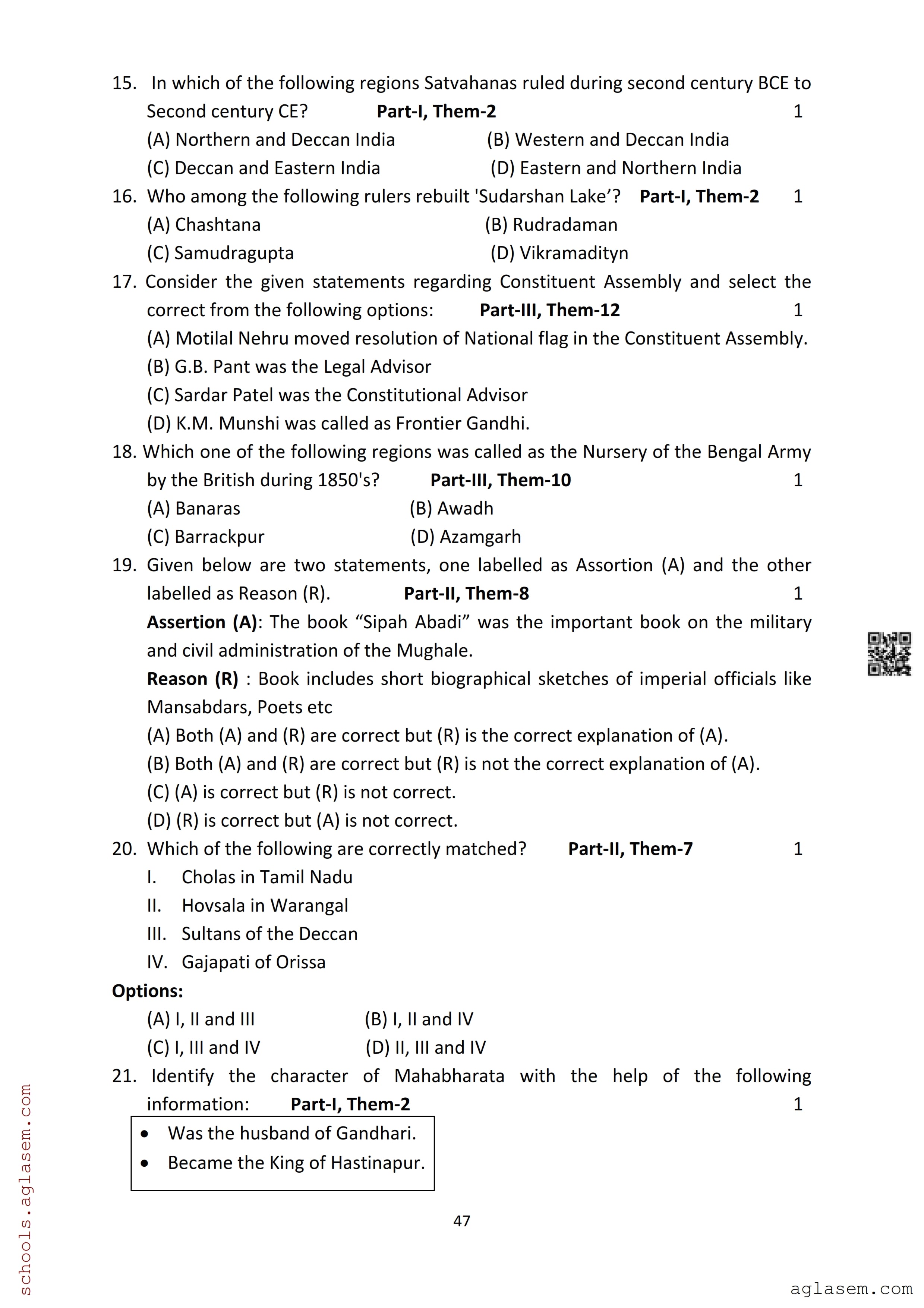 | Study Material Here | Assam Board Model Paper of Class 12 History |