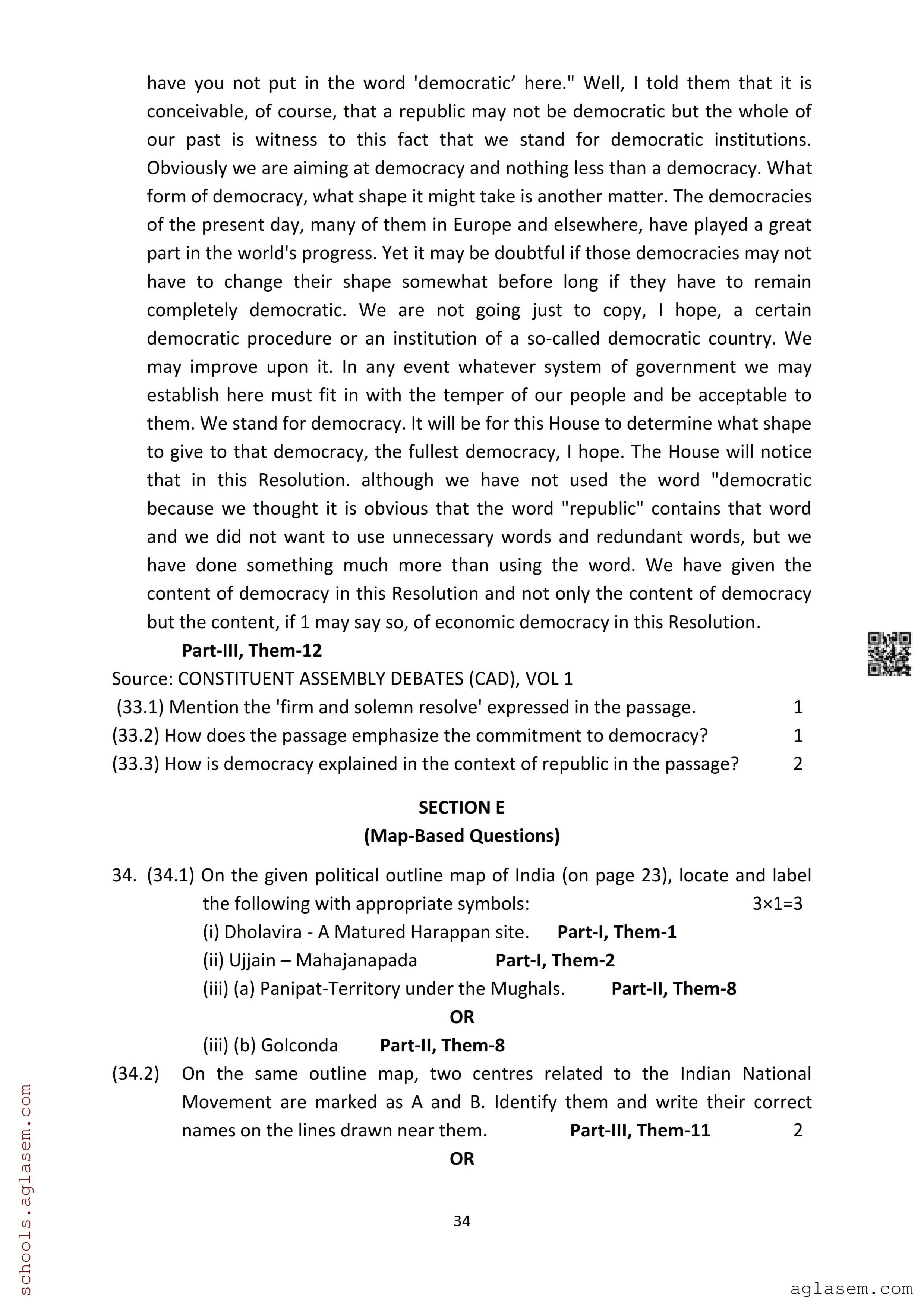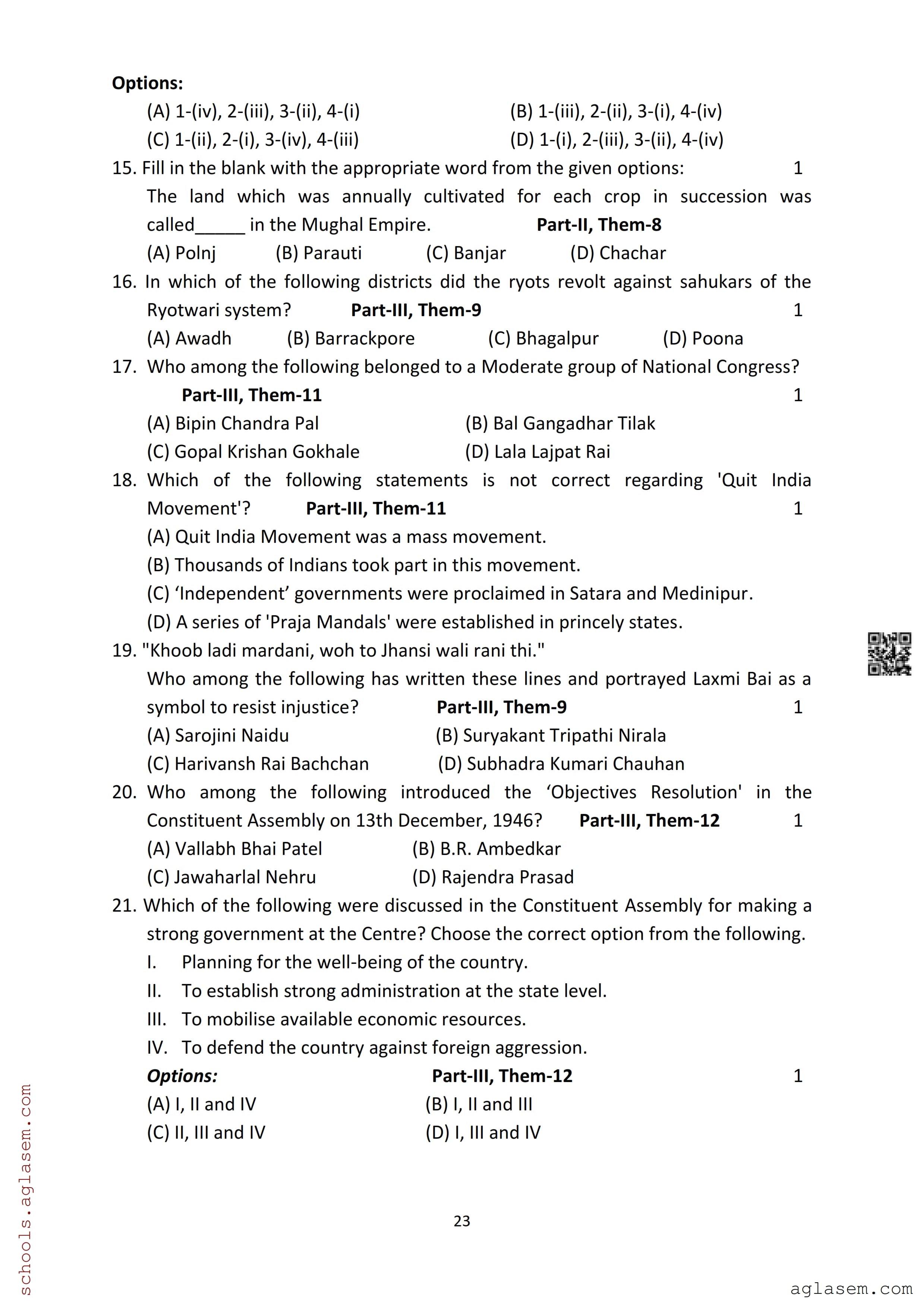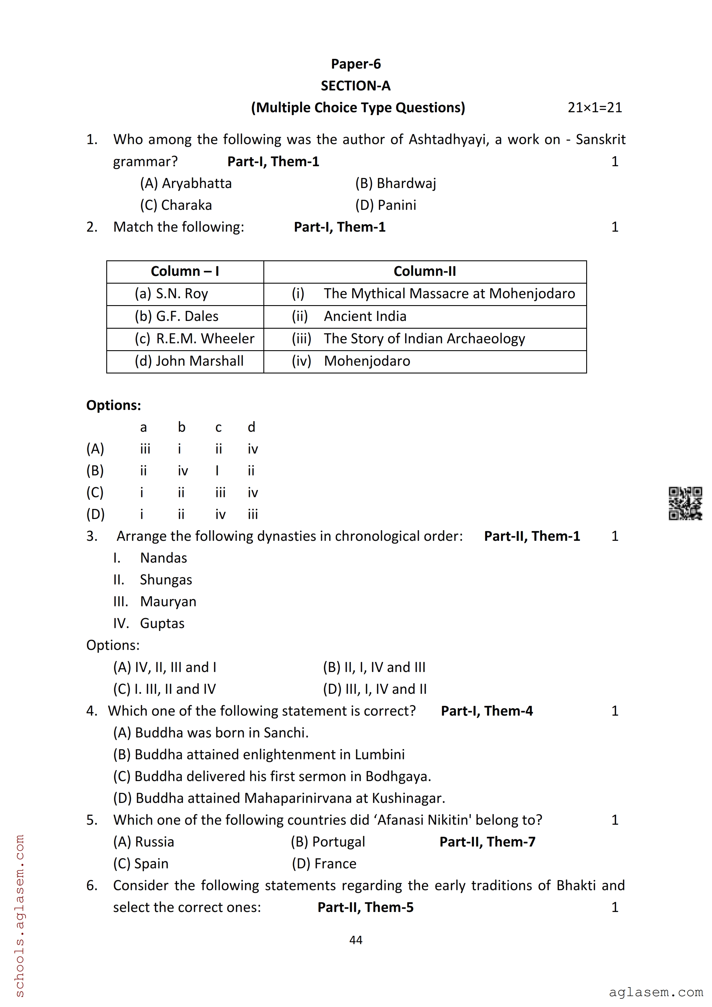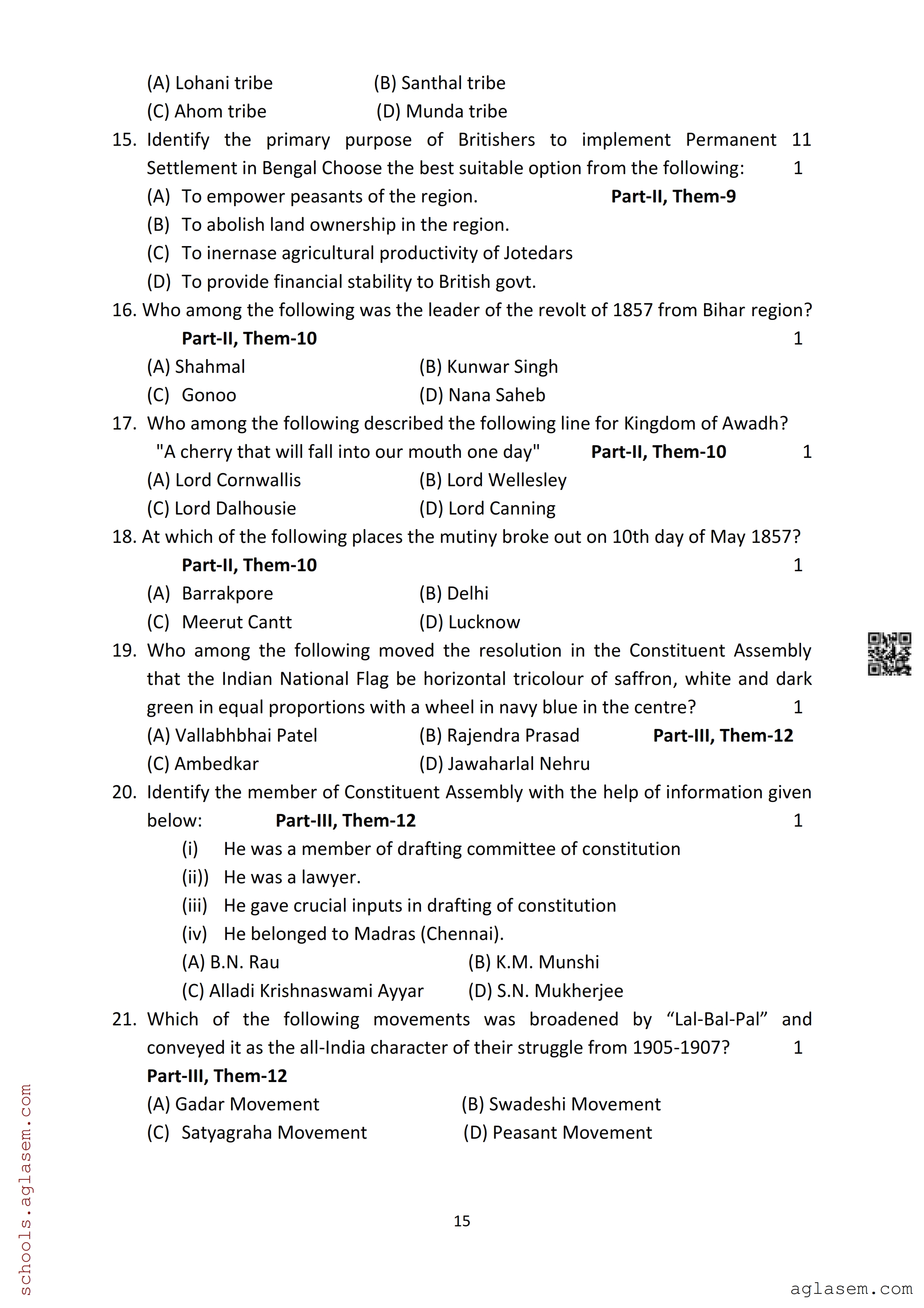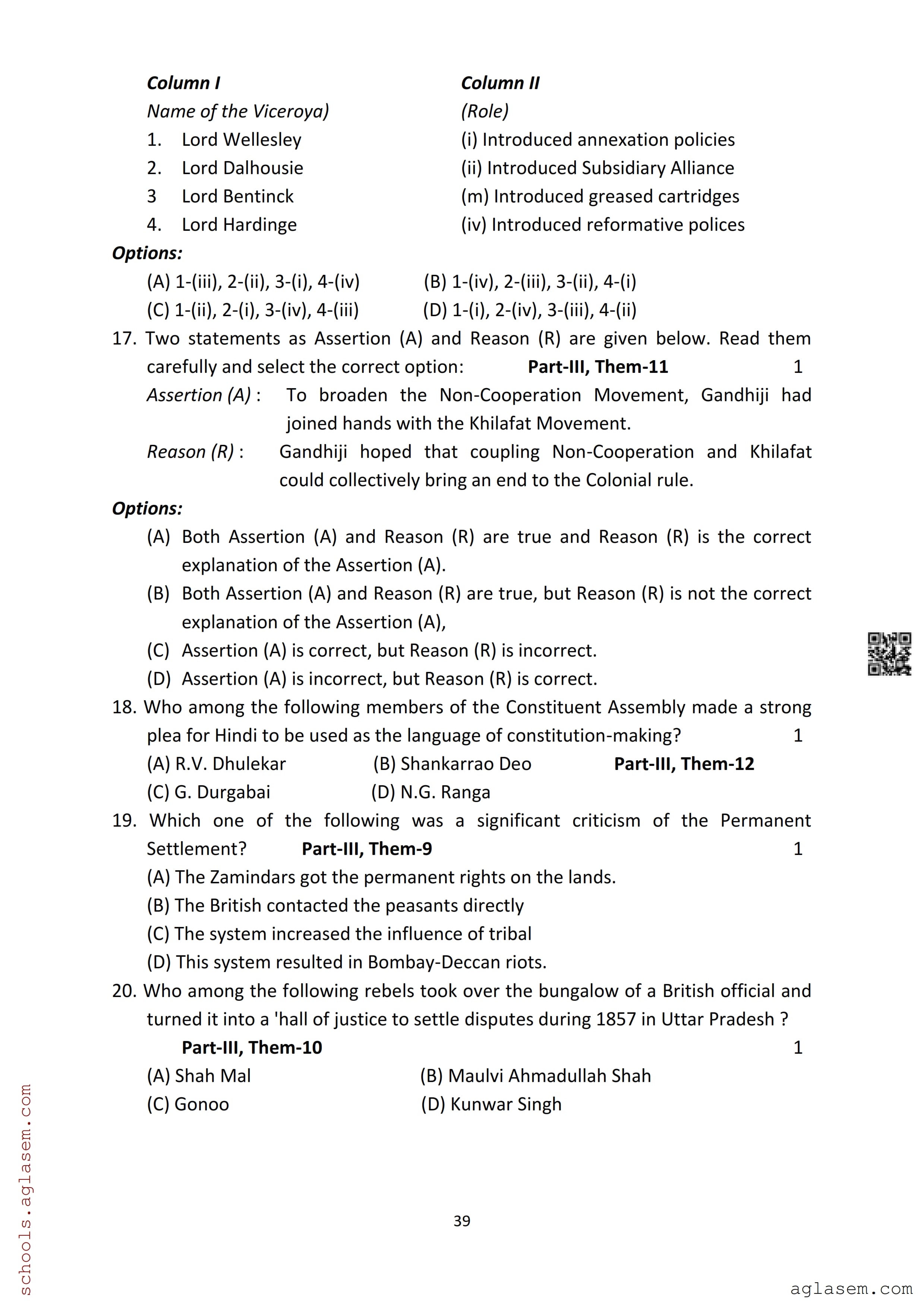 | Study Material Here | Assam Board Model Paper of Class 12 History |