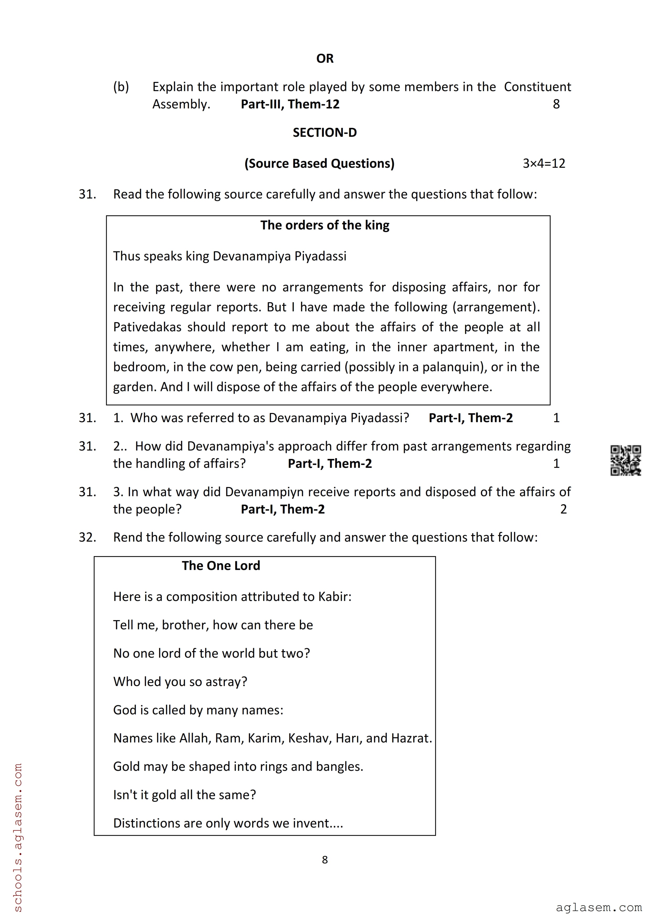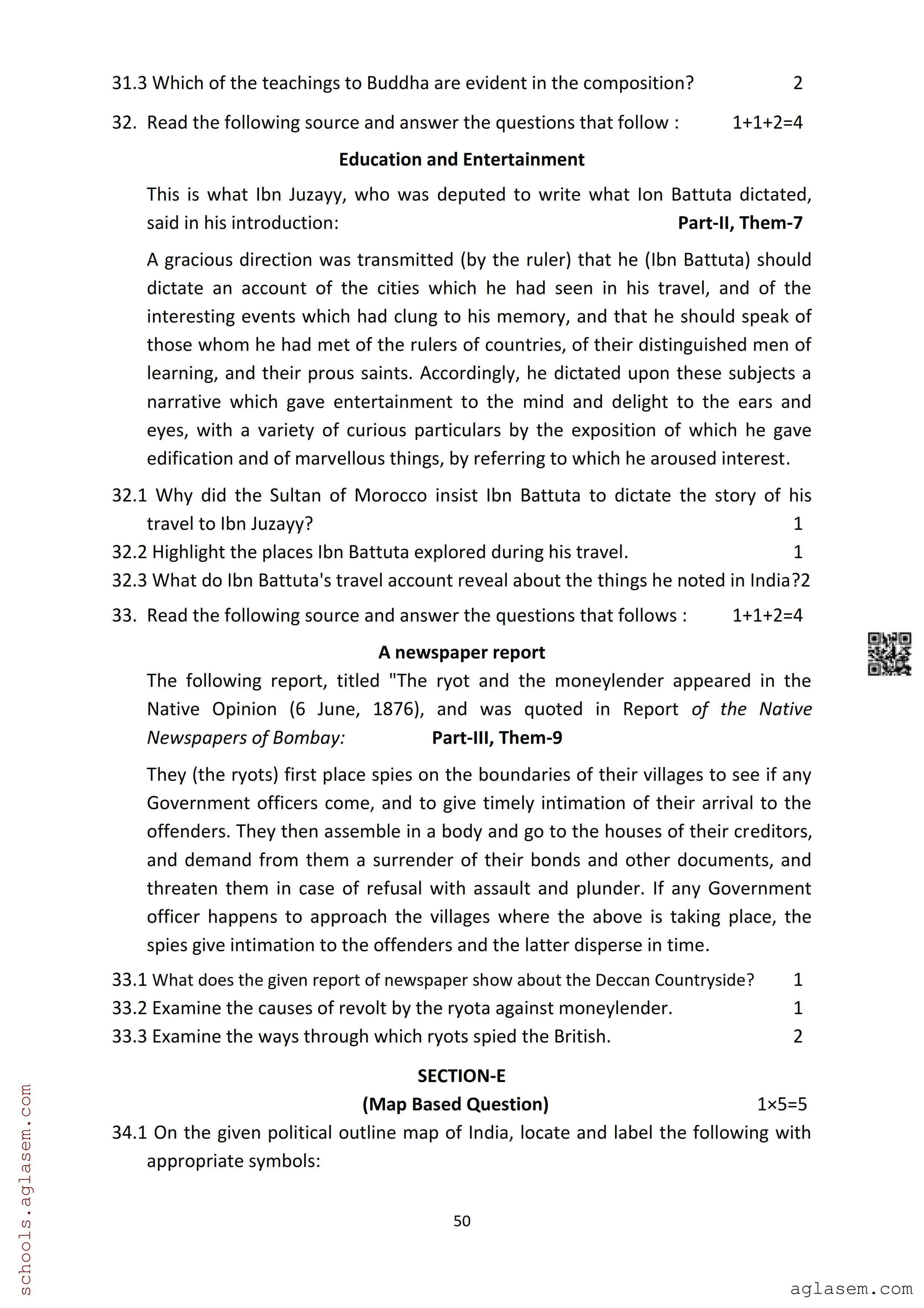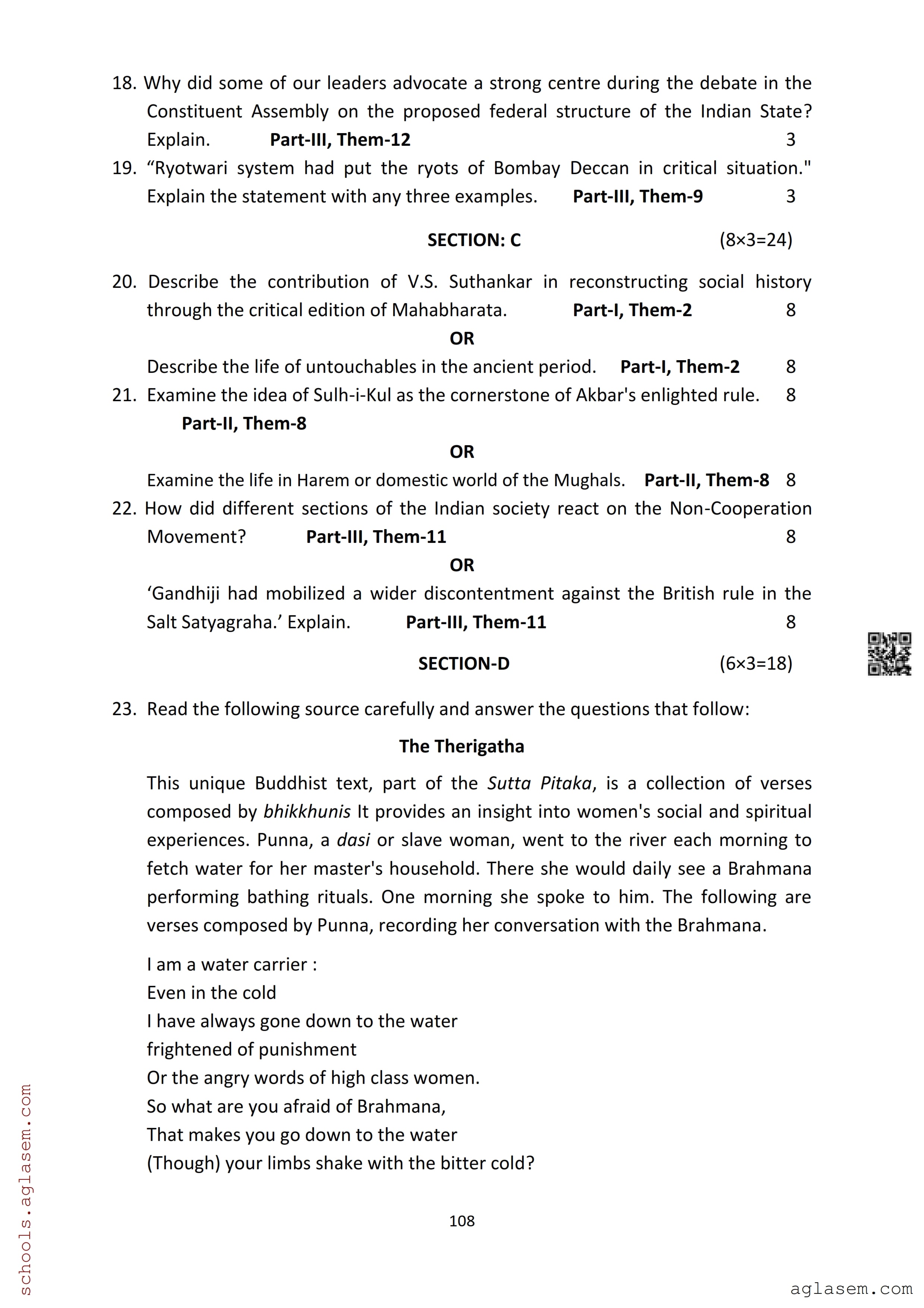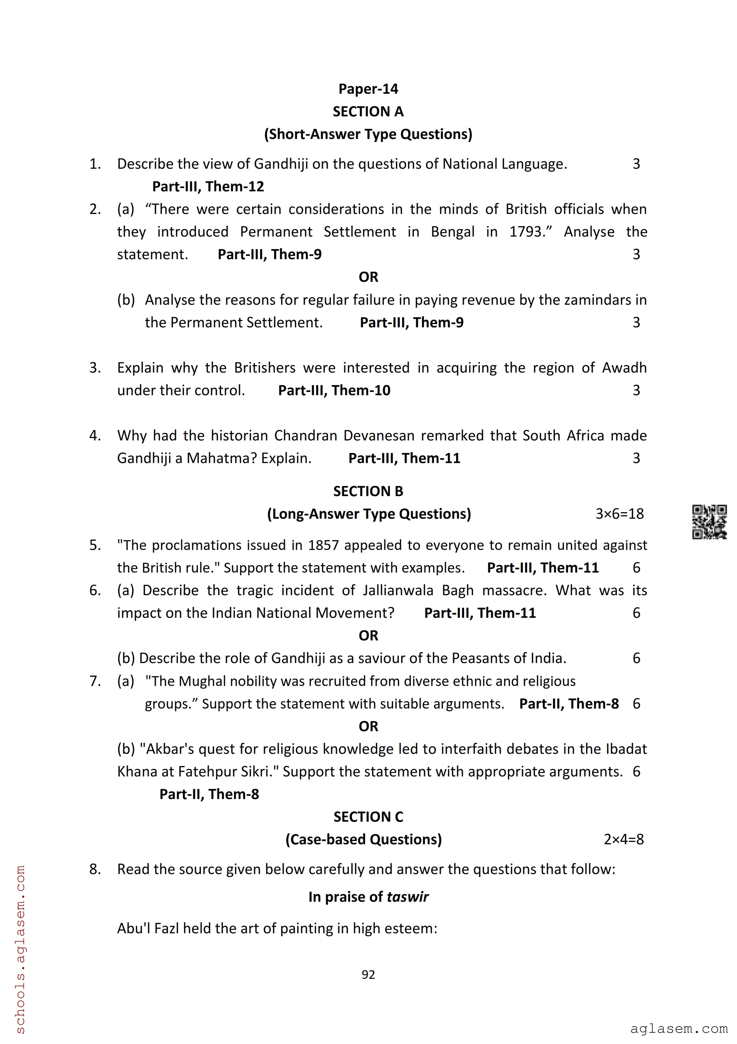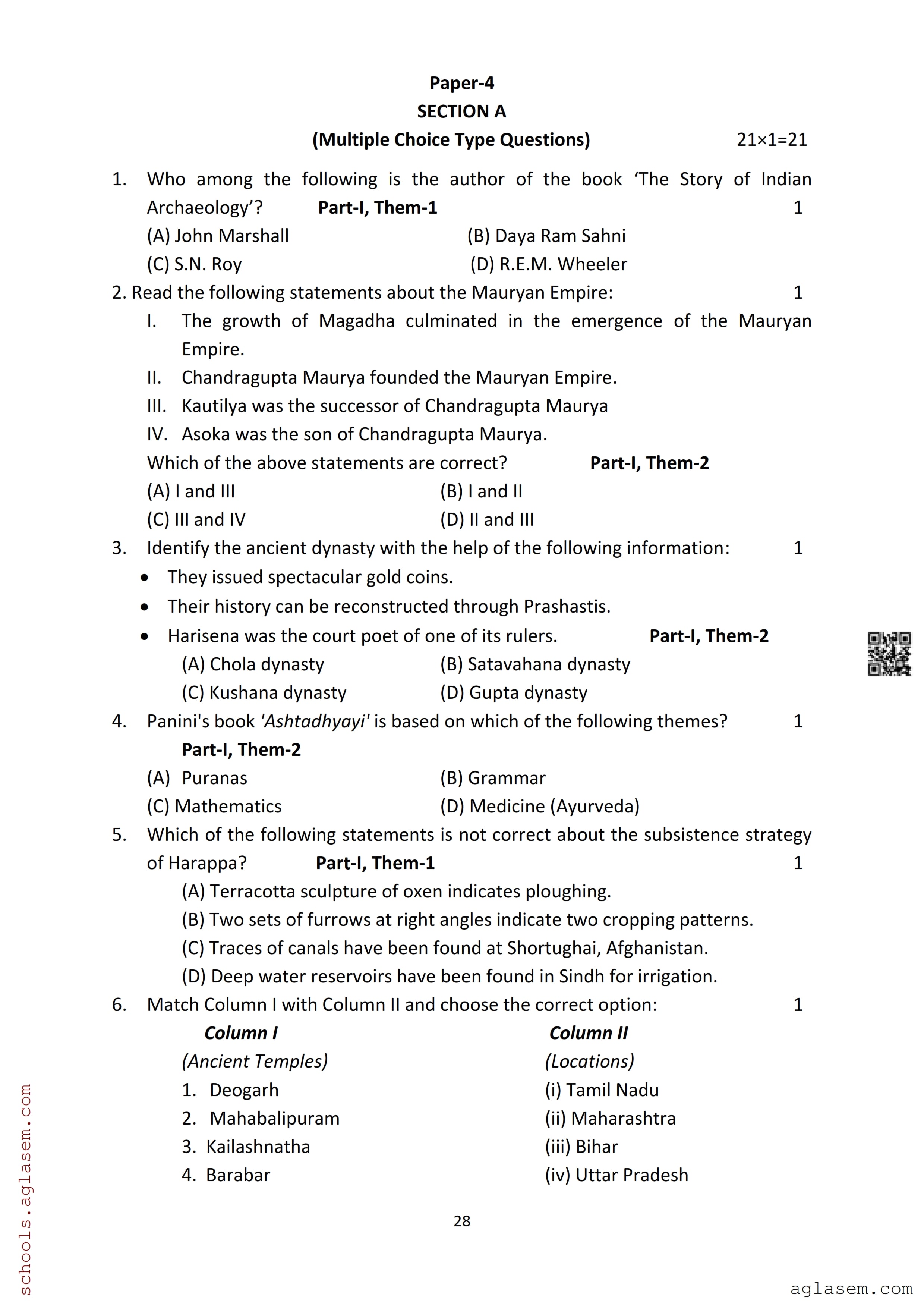 | Study Material Here | Assam Board Model Paper of Class 12 History |