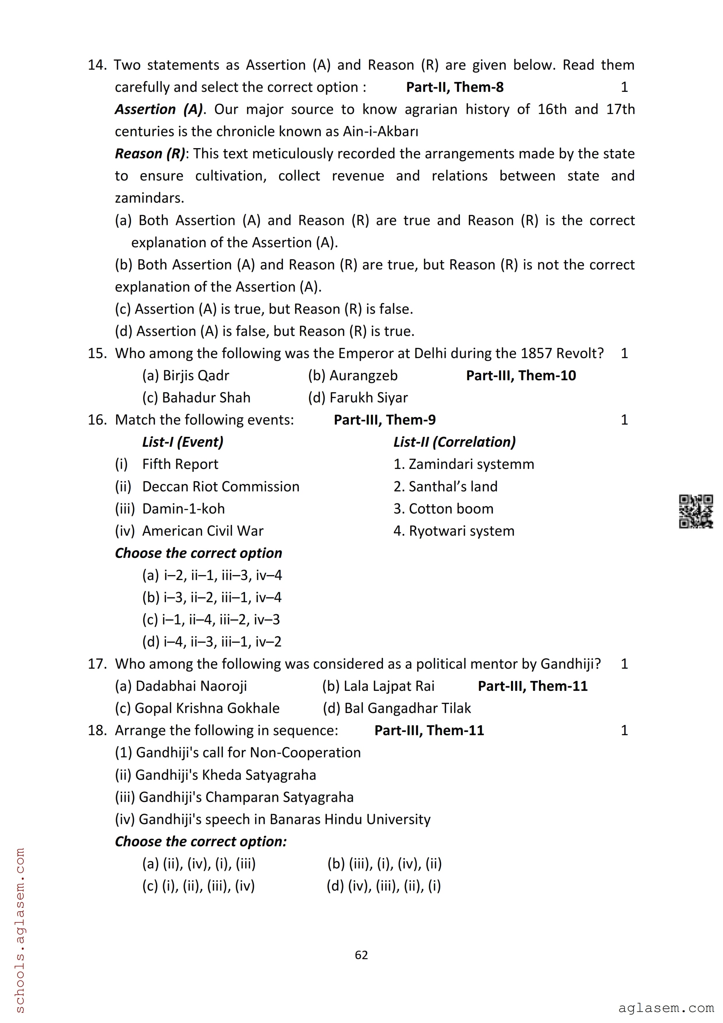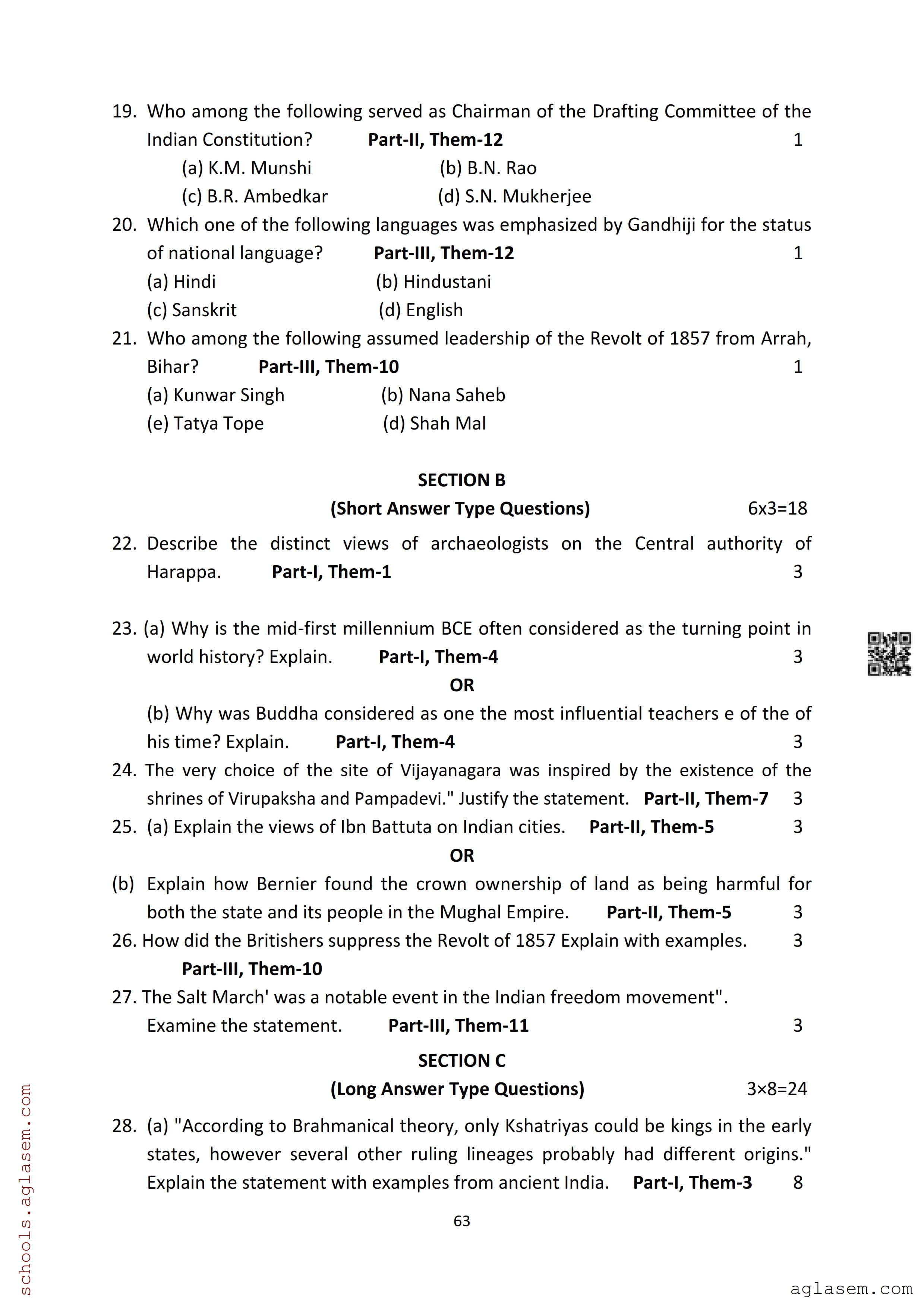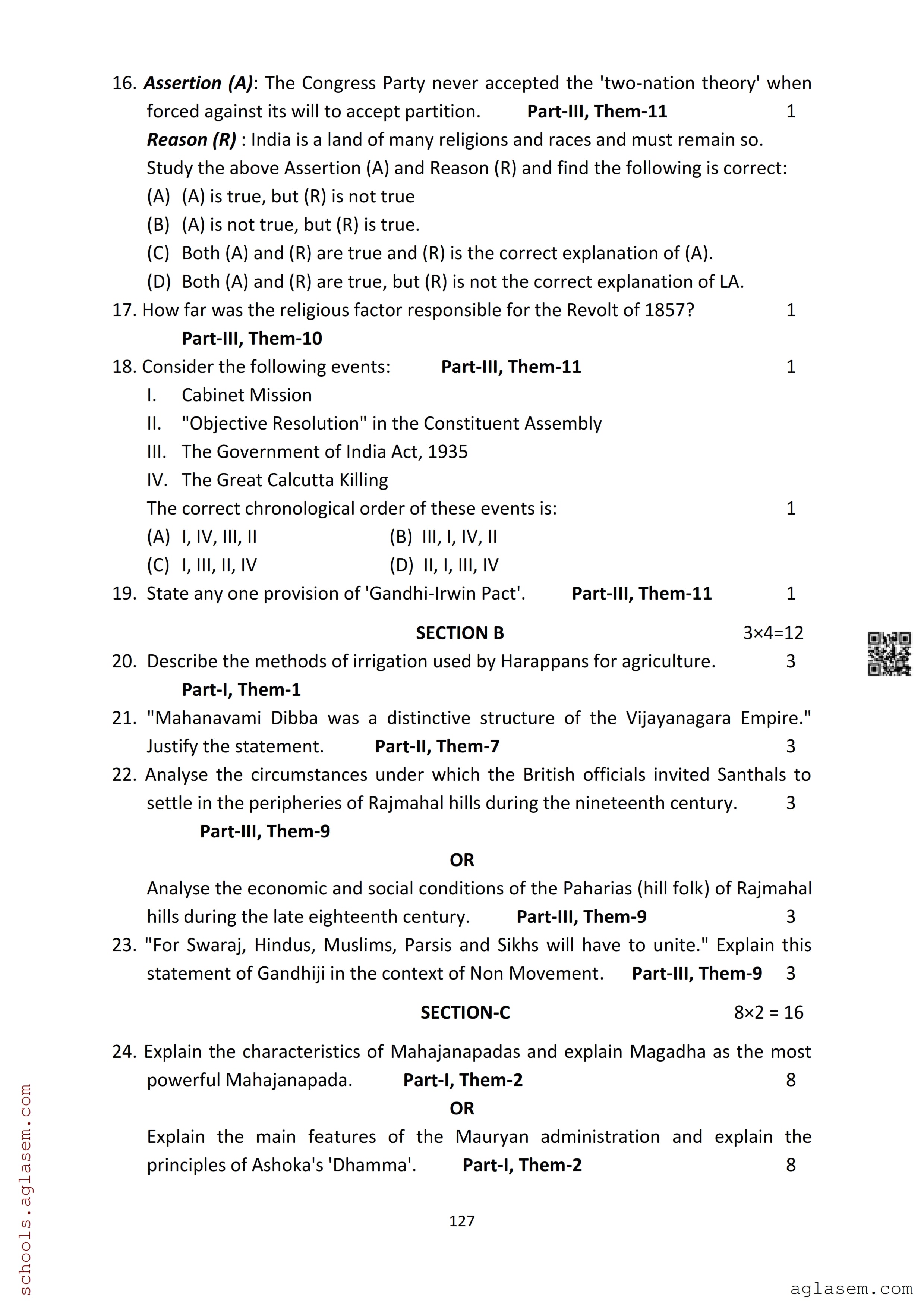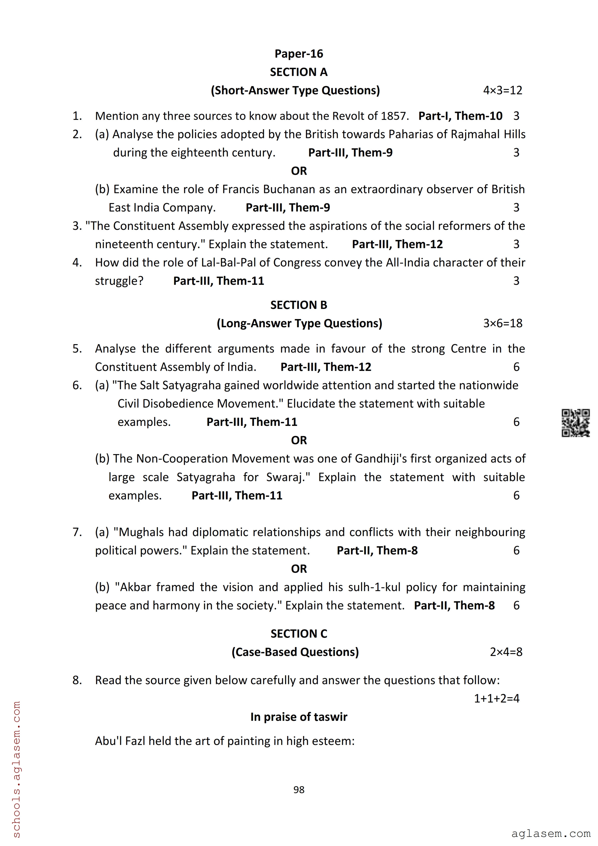 The Assam Board Sample Paper for HS 2nd Year Class 12th History is as follows.