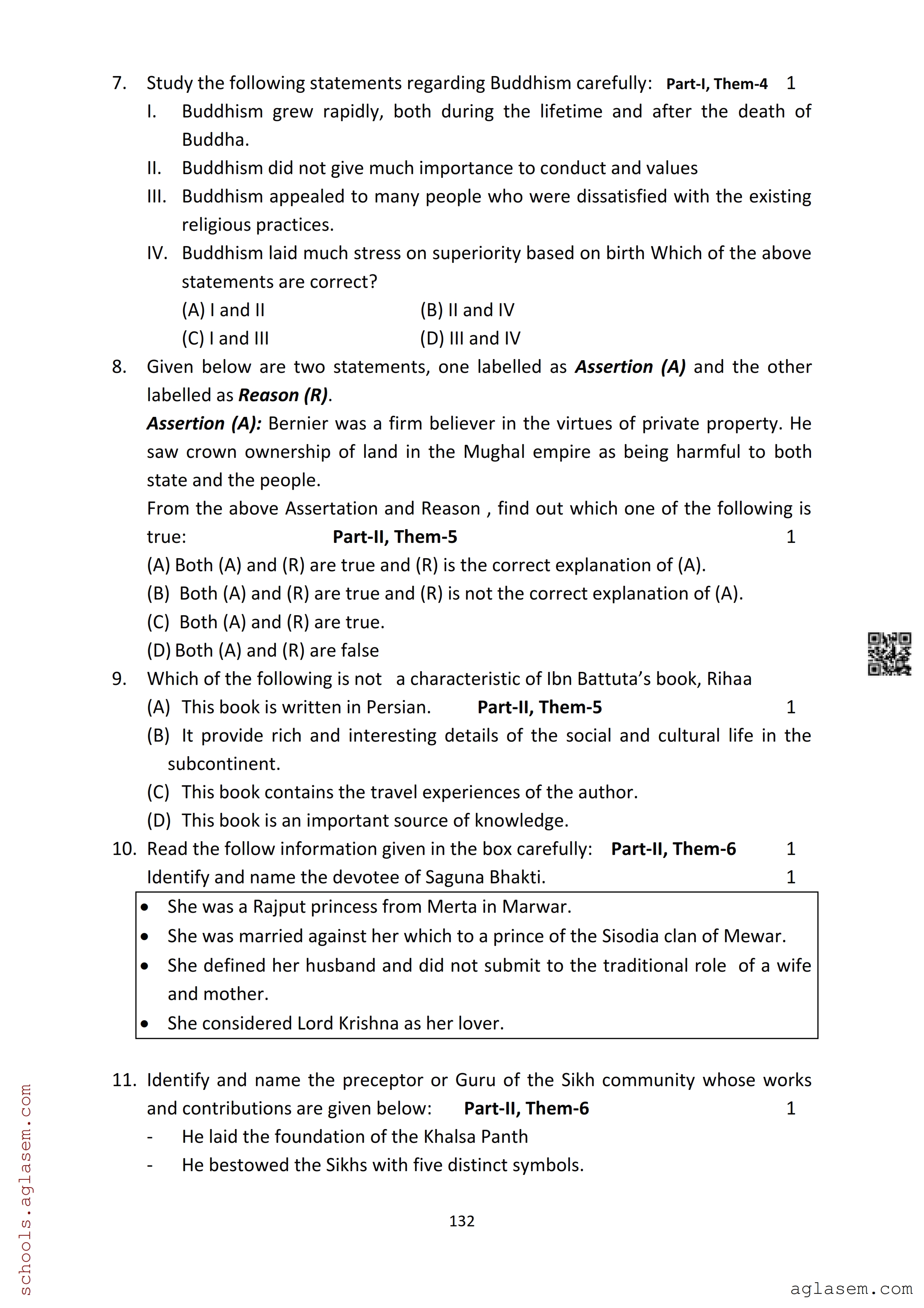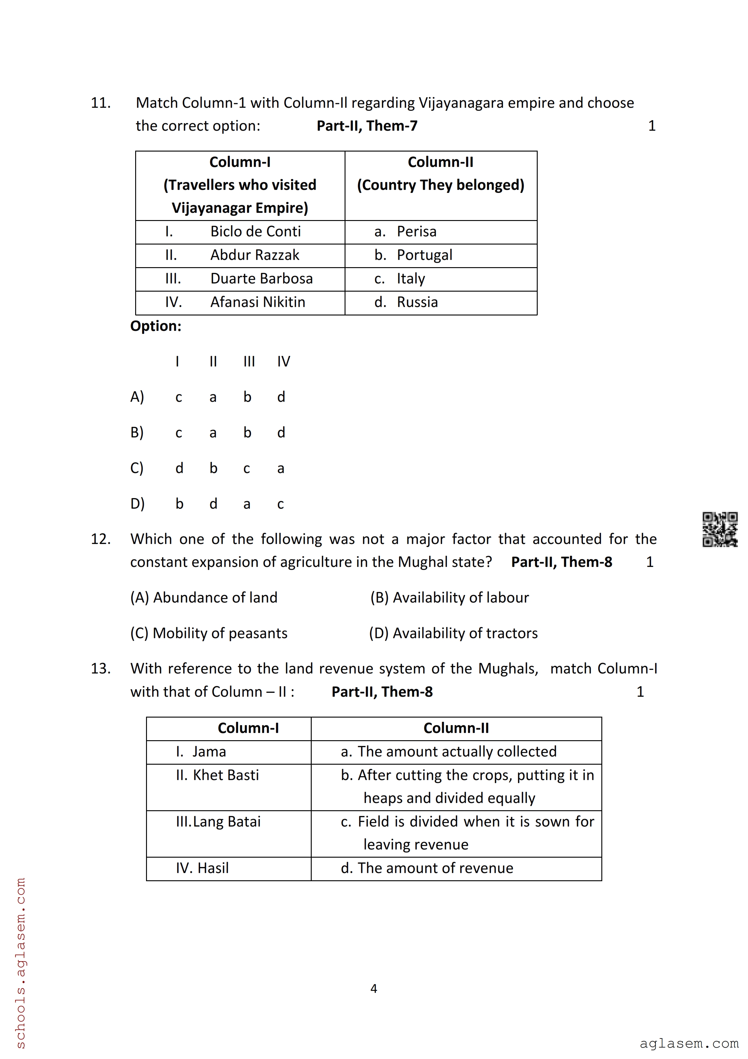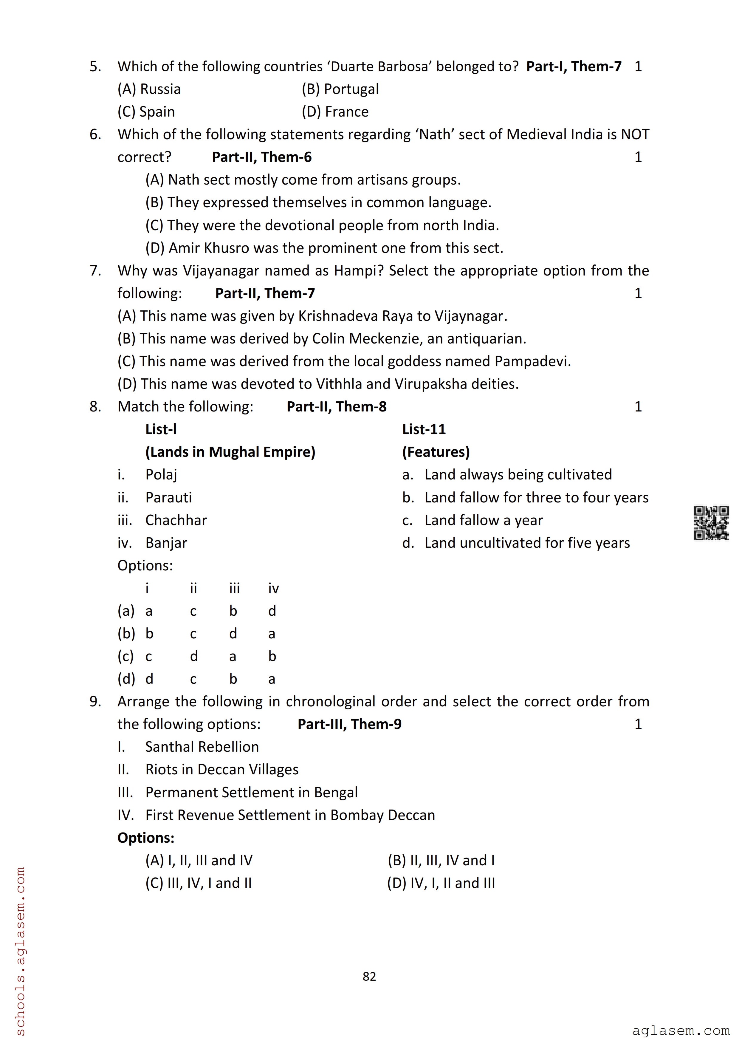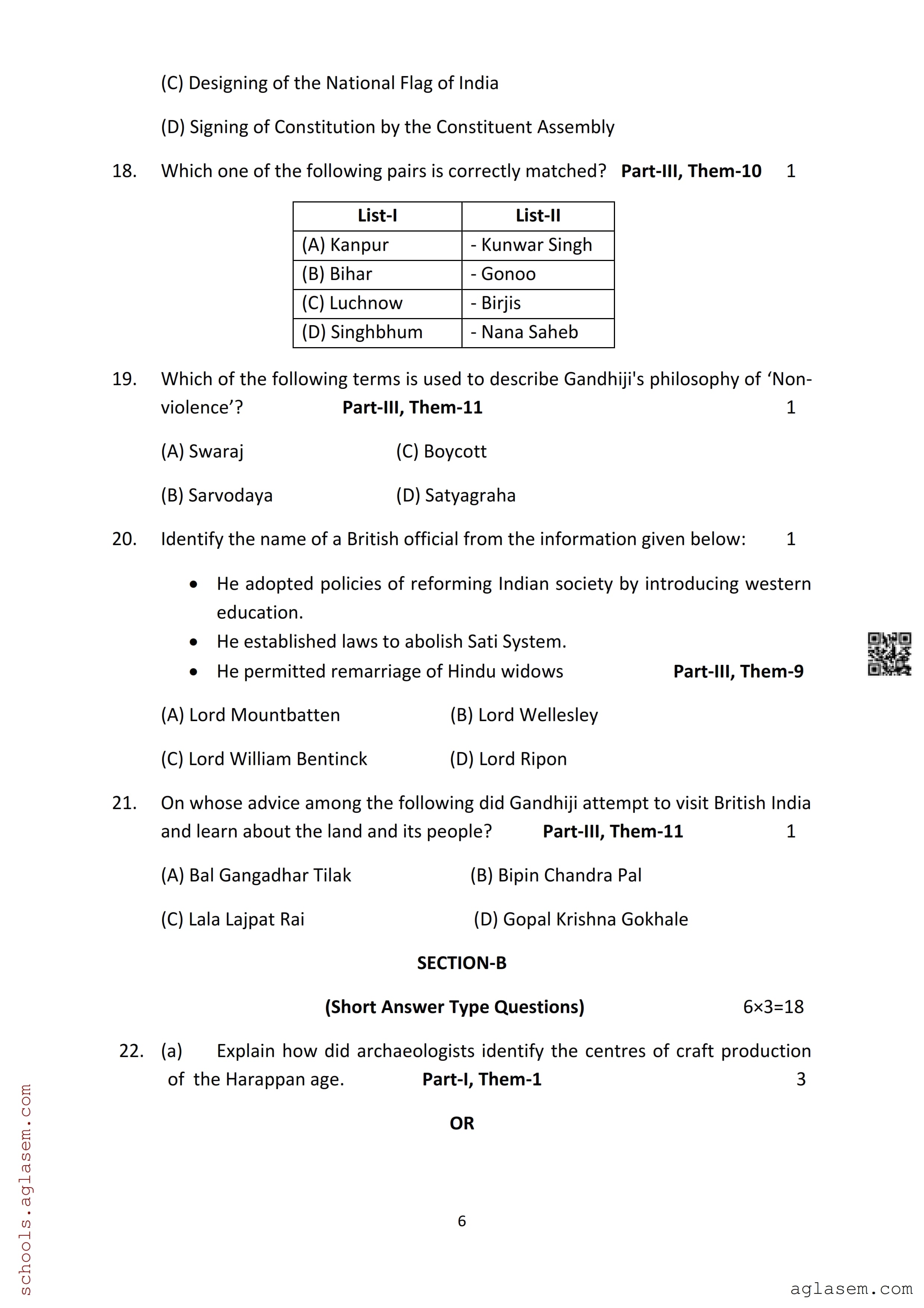 The Assam Board Sample Paper for HS 2nd Year Class 12th History is as follows.