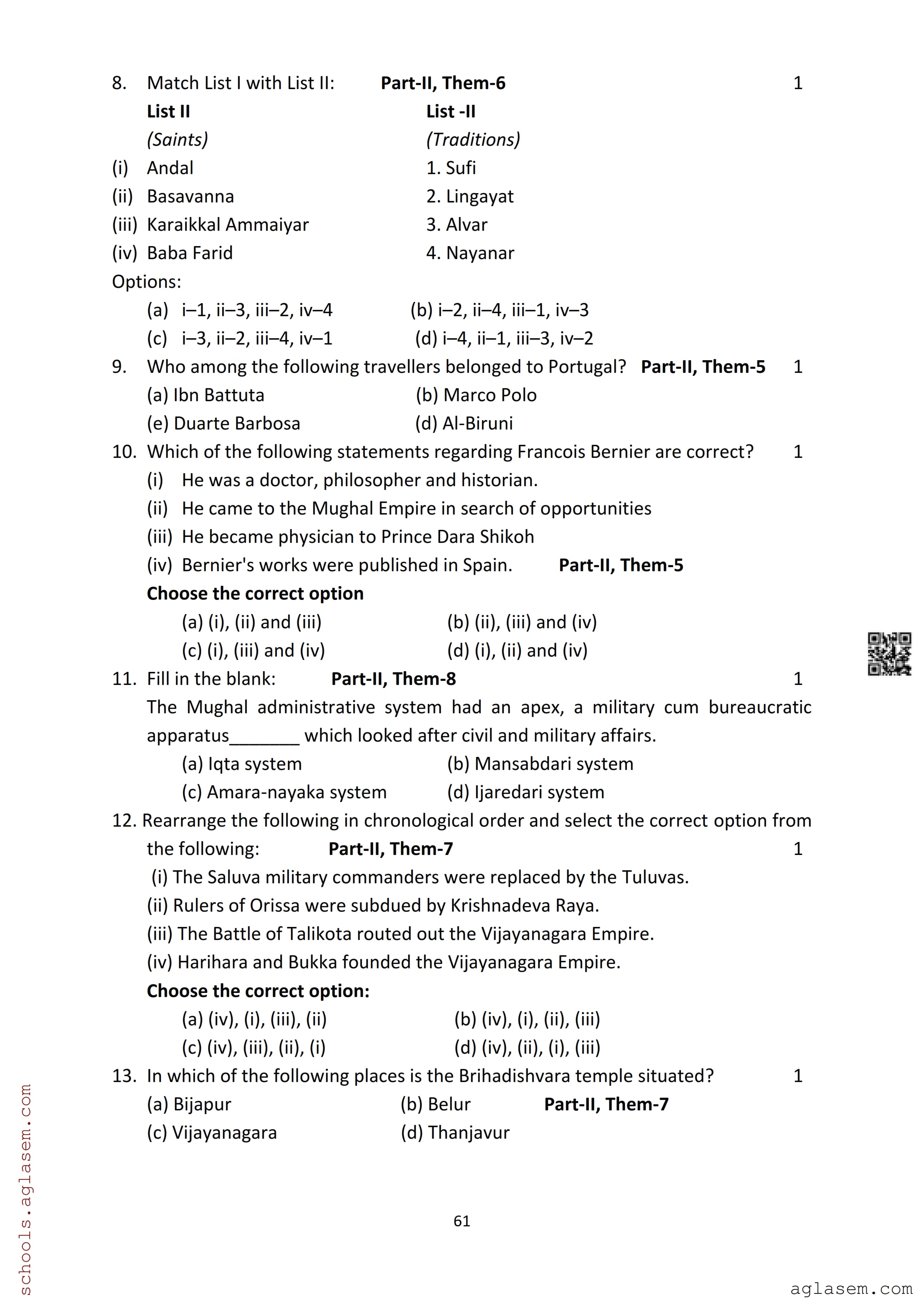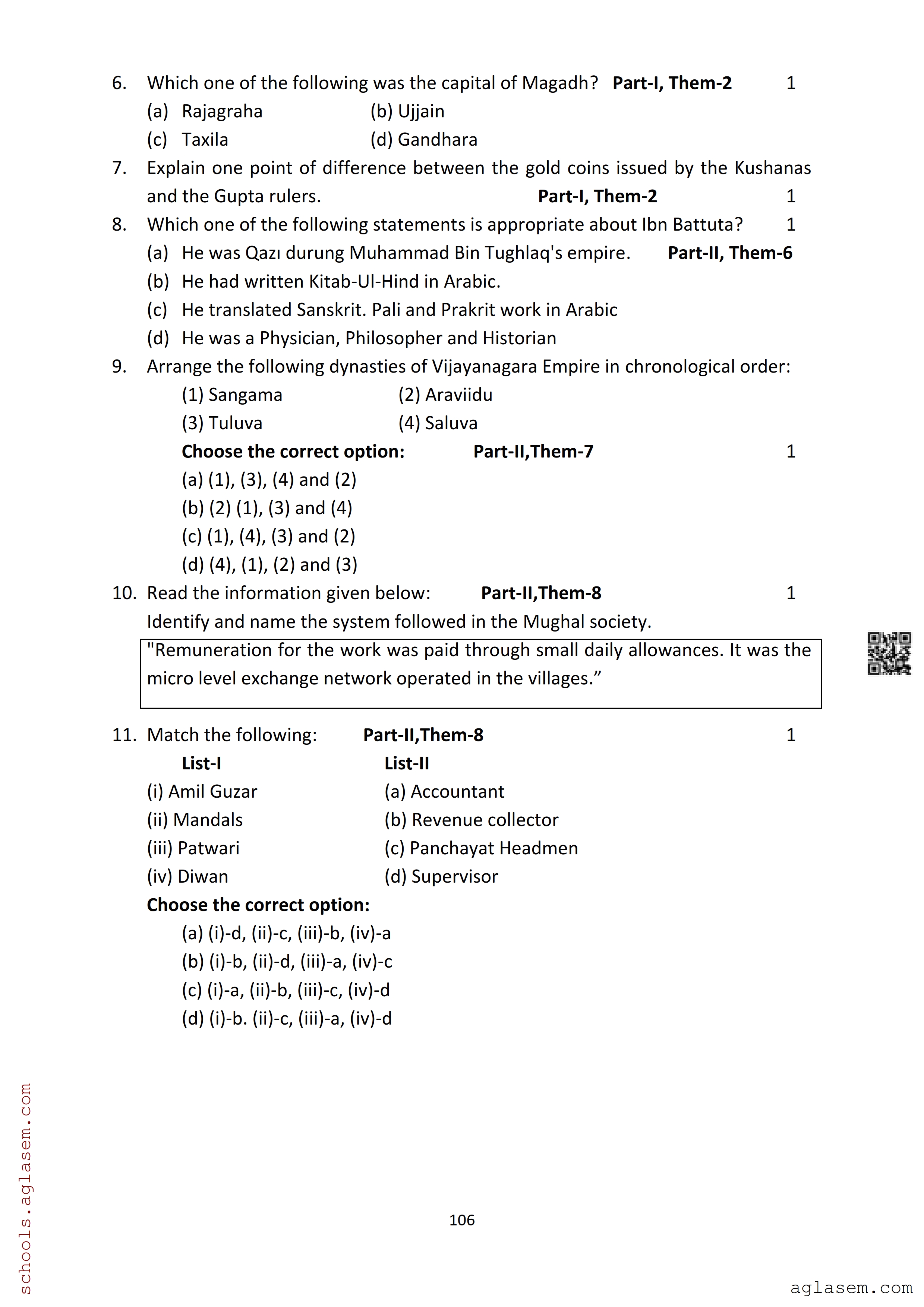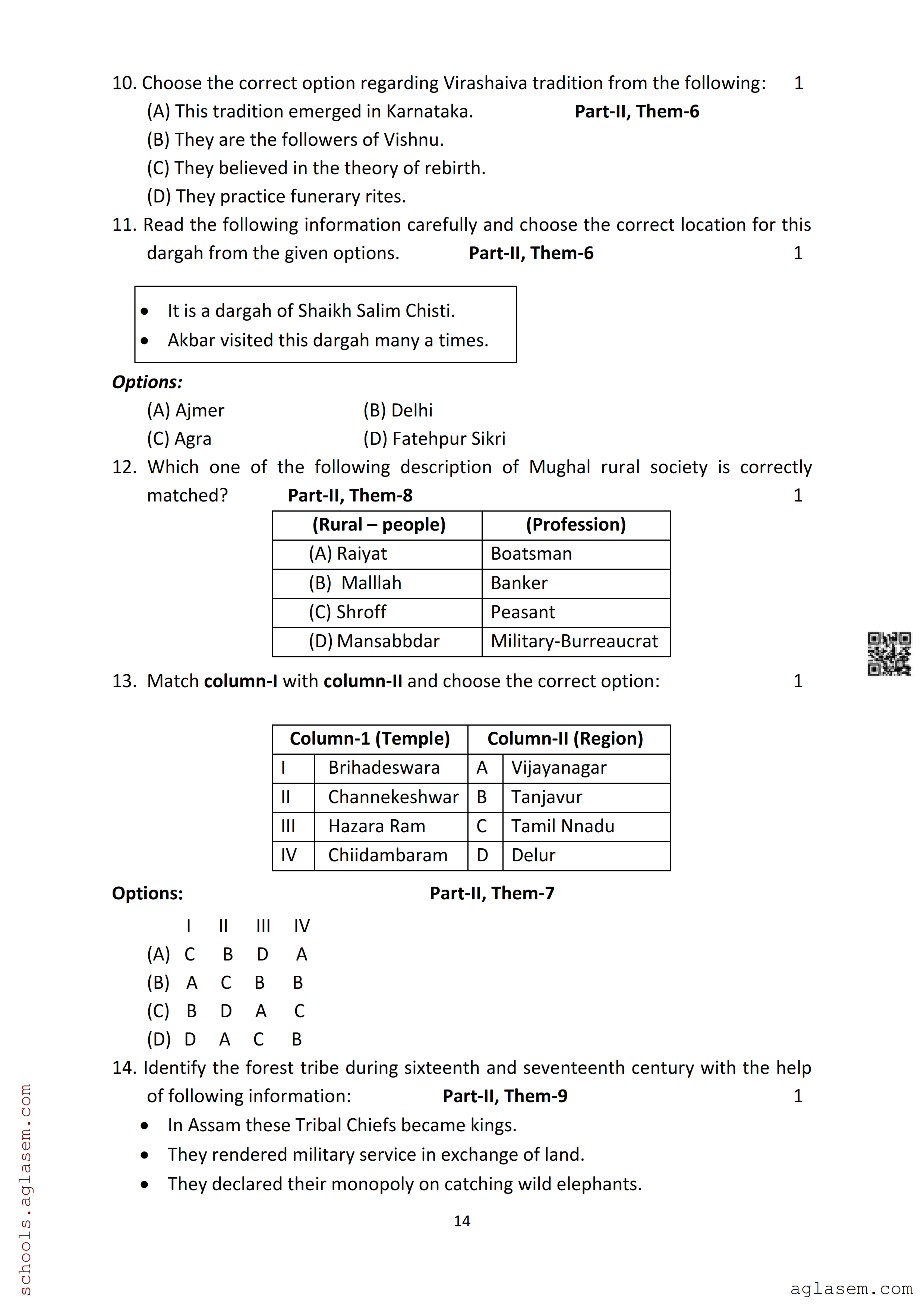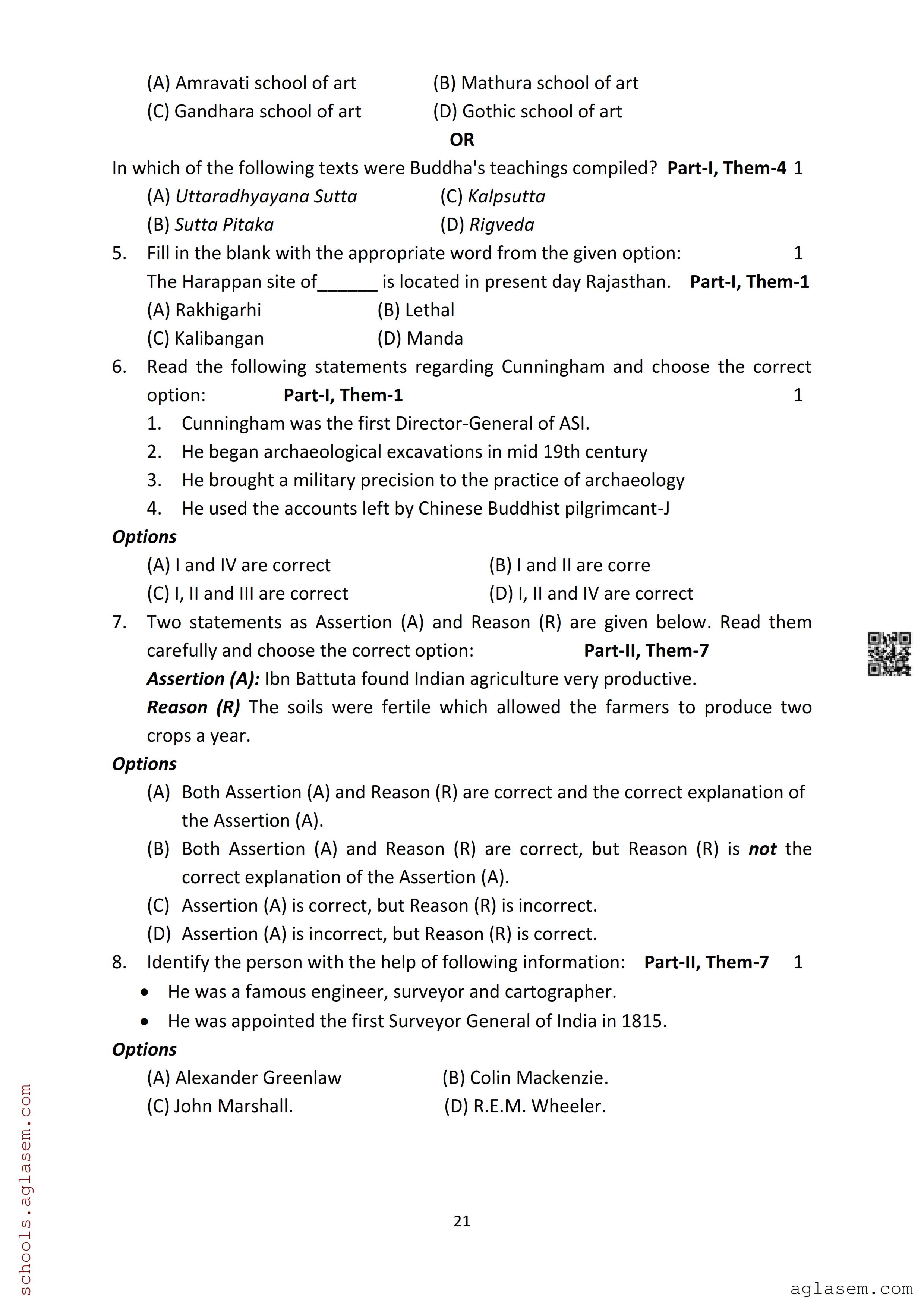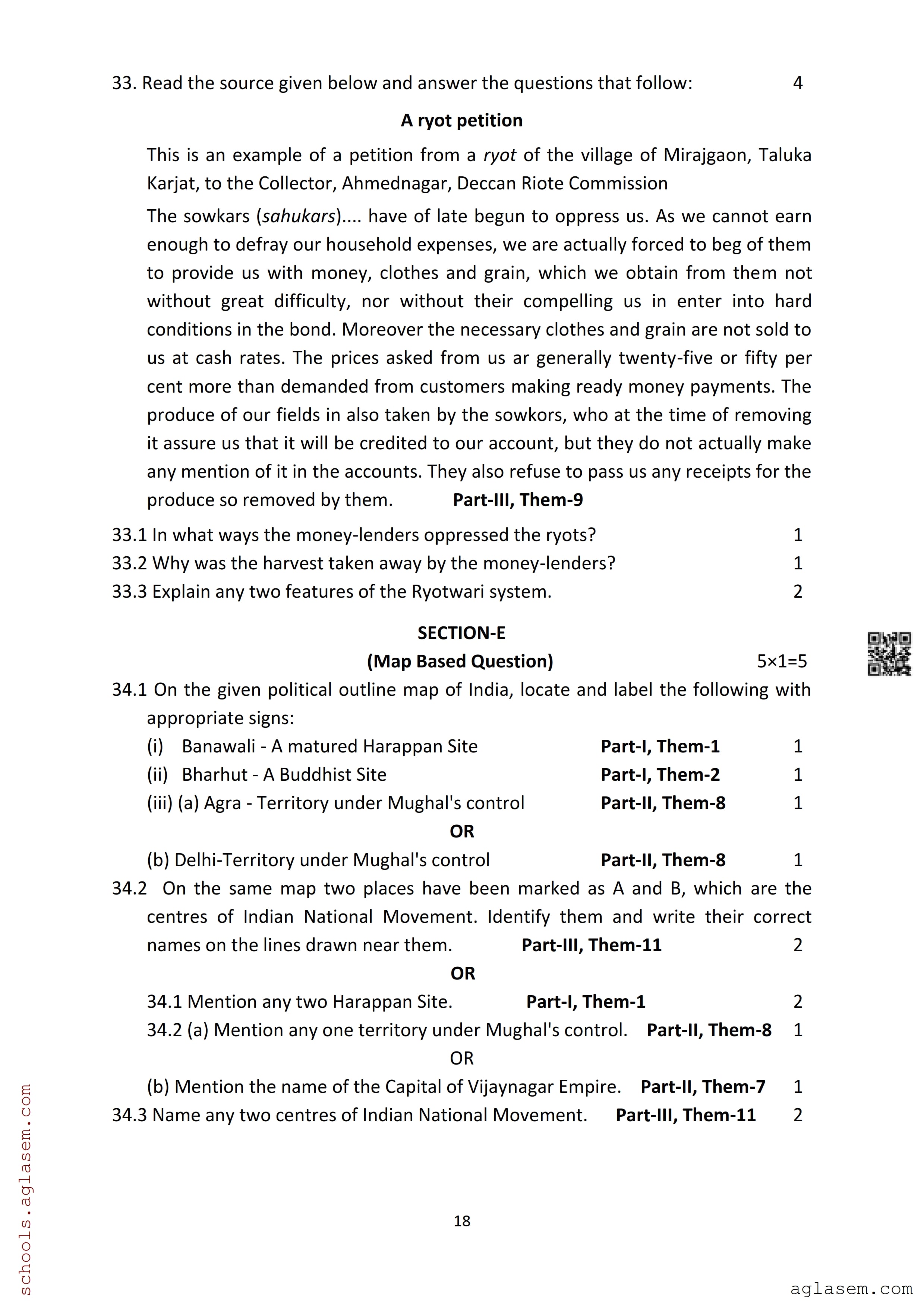 The Assam Board Sample Paper for HS 2nd Year Class 12th History is as follows.