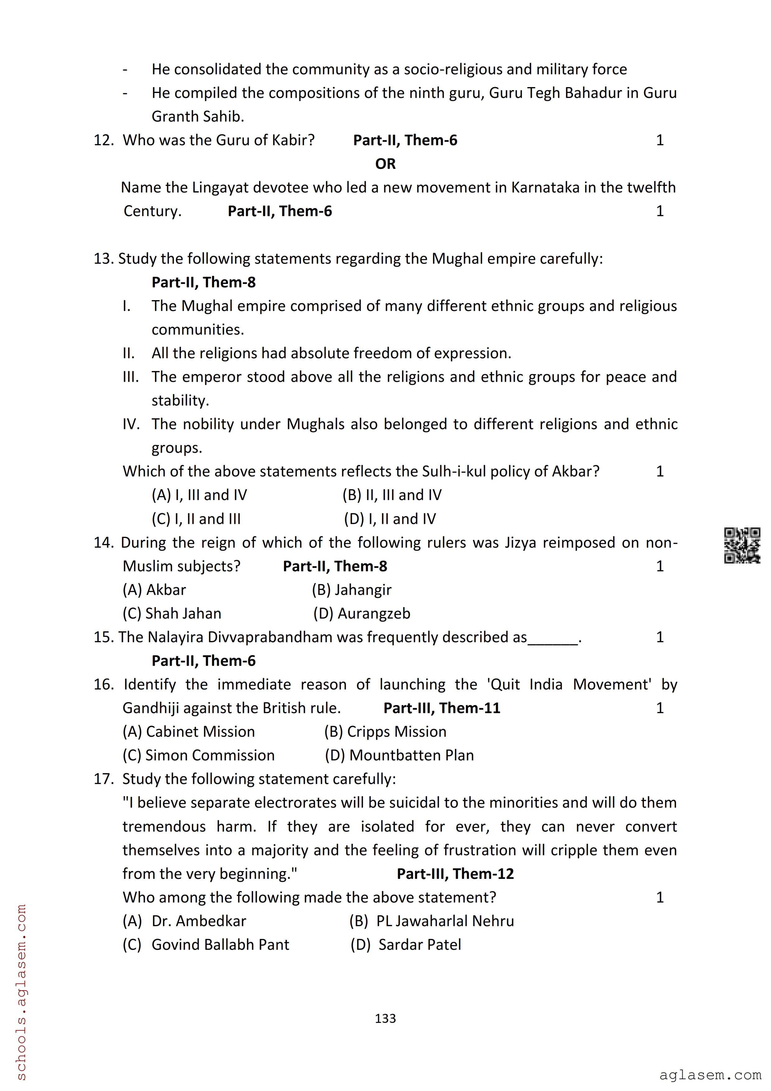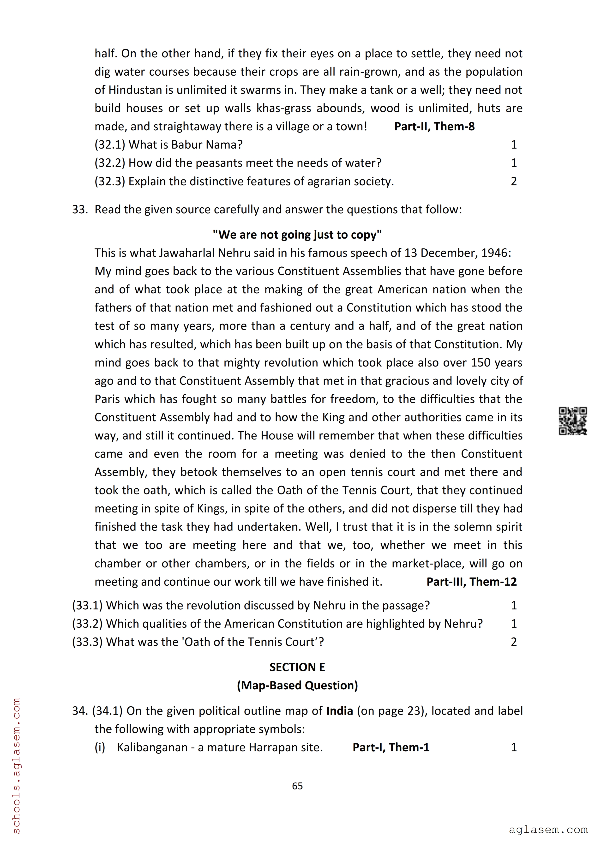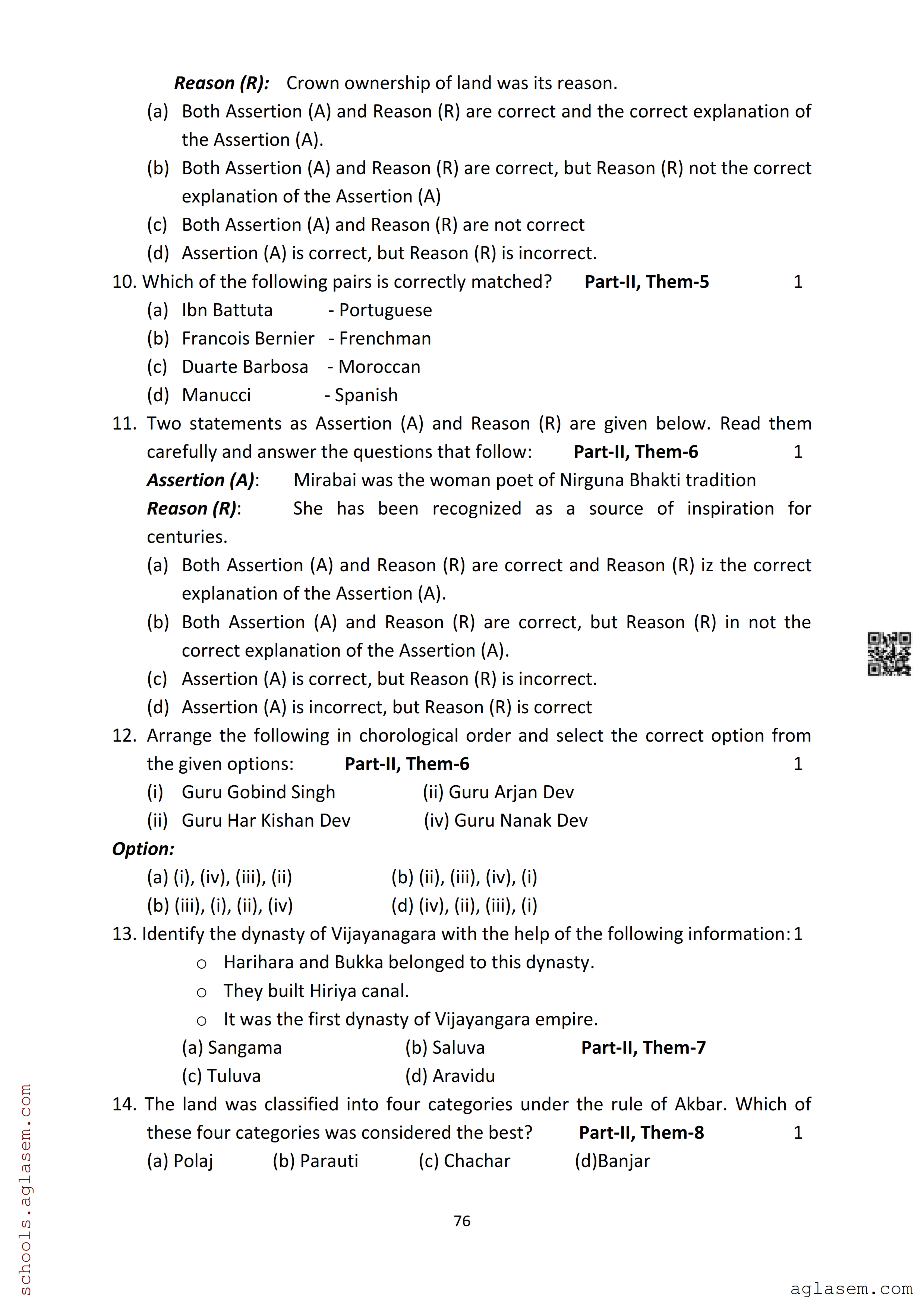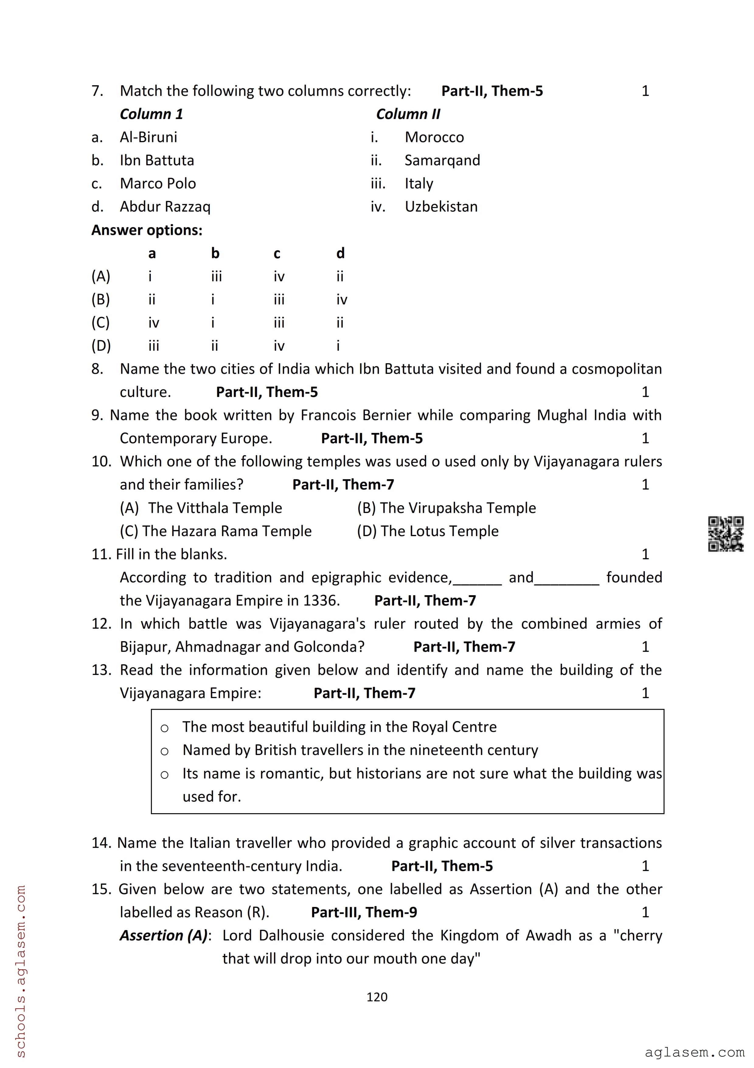 The Assam Board Sample Paper for HS 2nd Year Class 12th History is as follows.