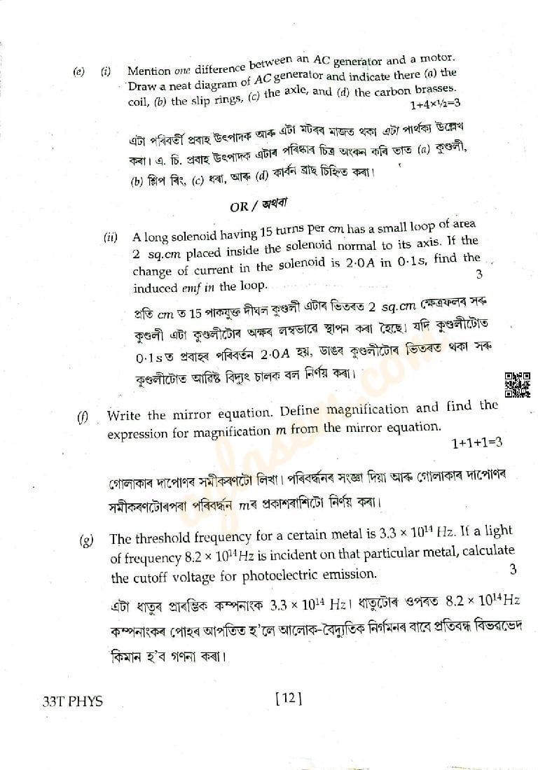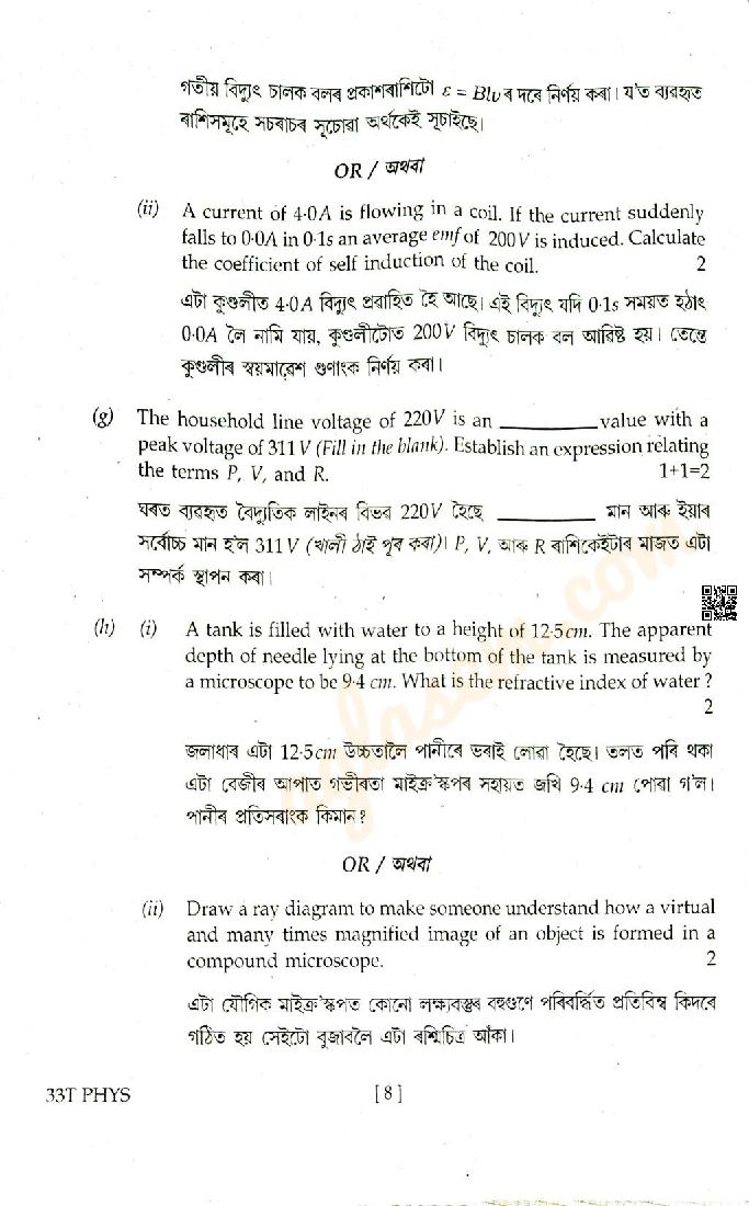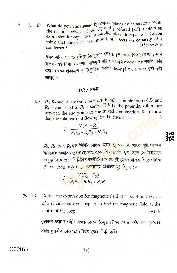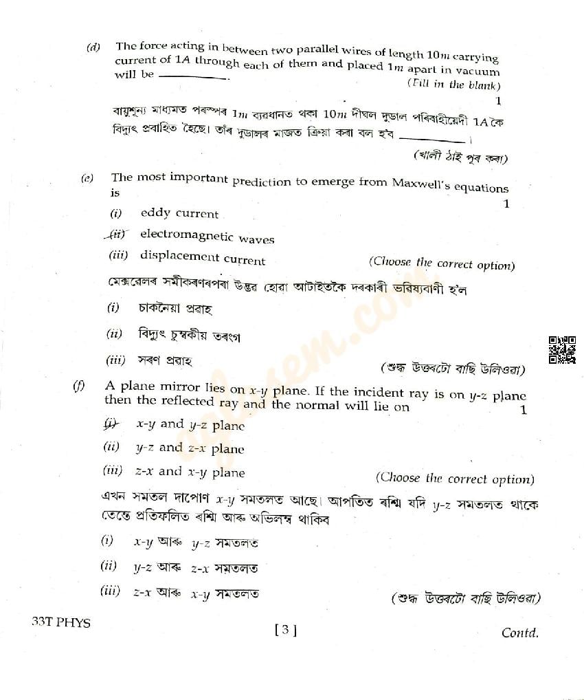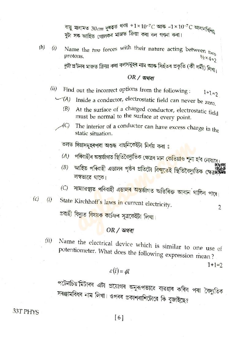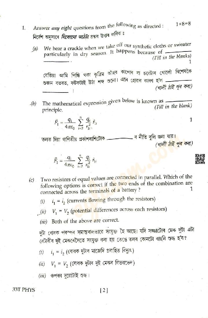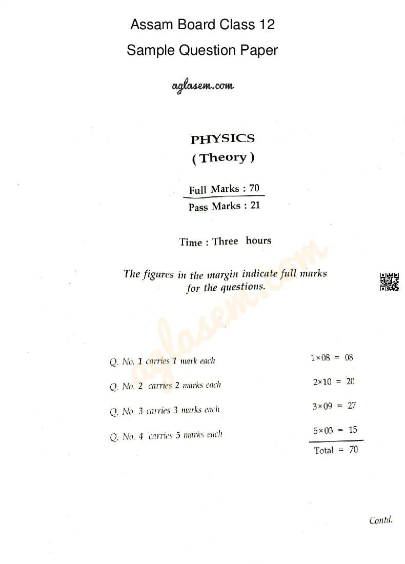 The Assam Board Sample Paper for HS 2nd Year Class 12th Physics is as follows.