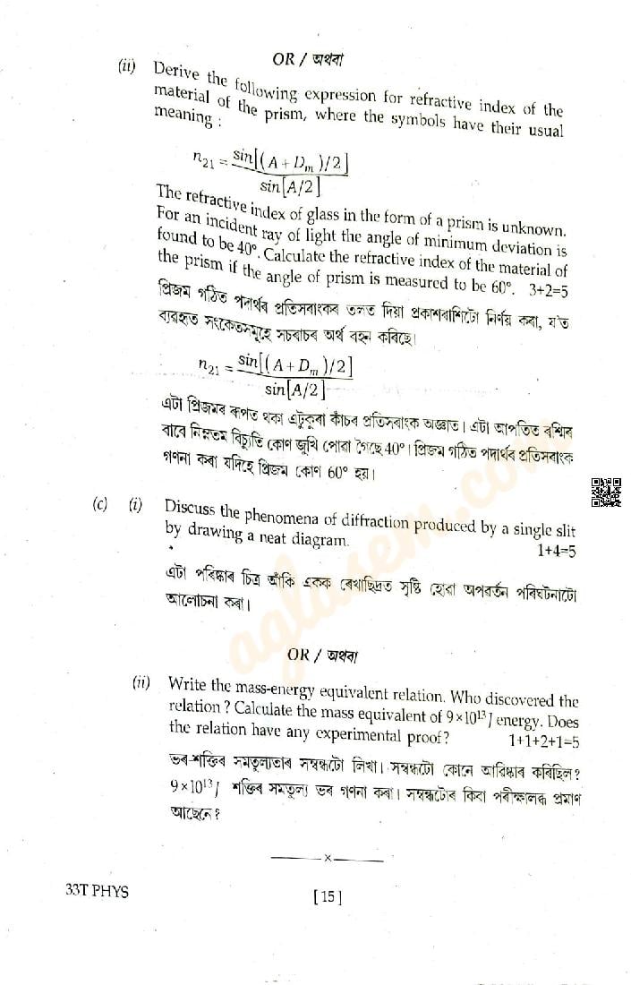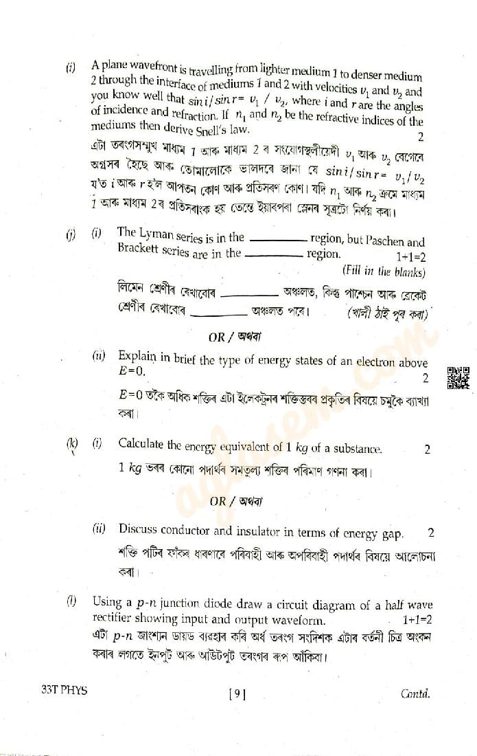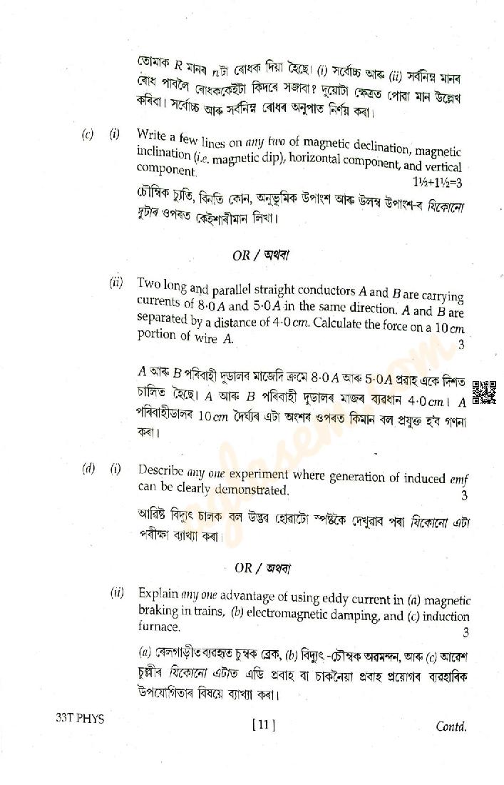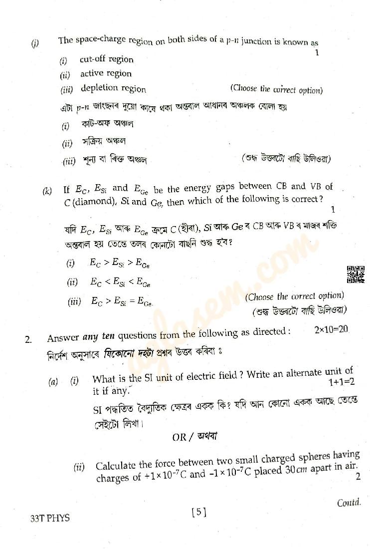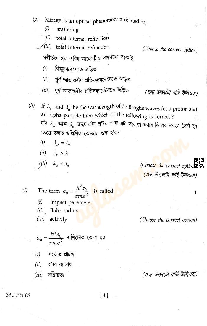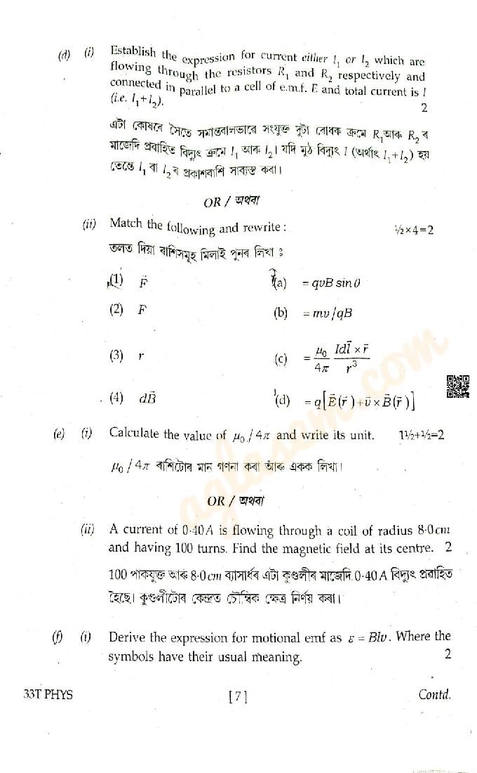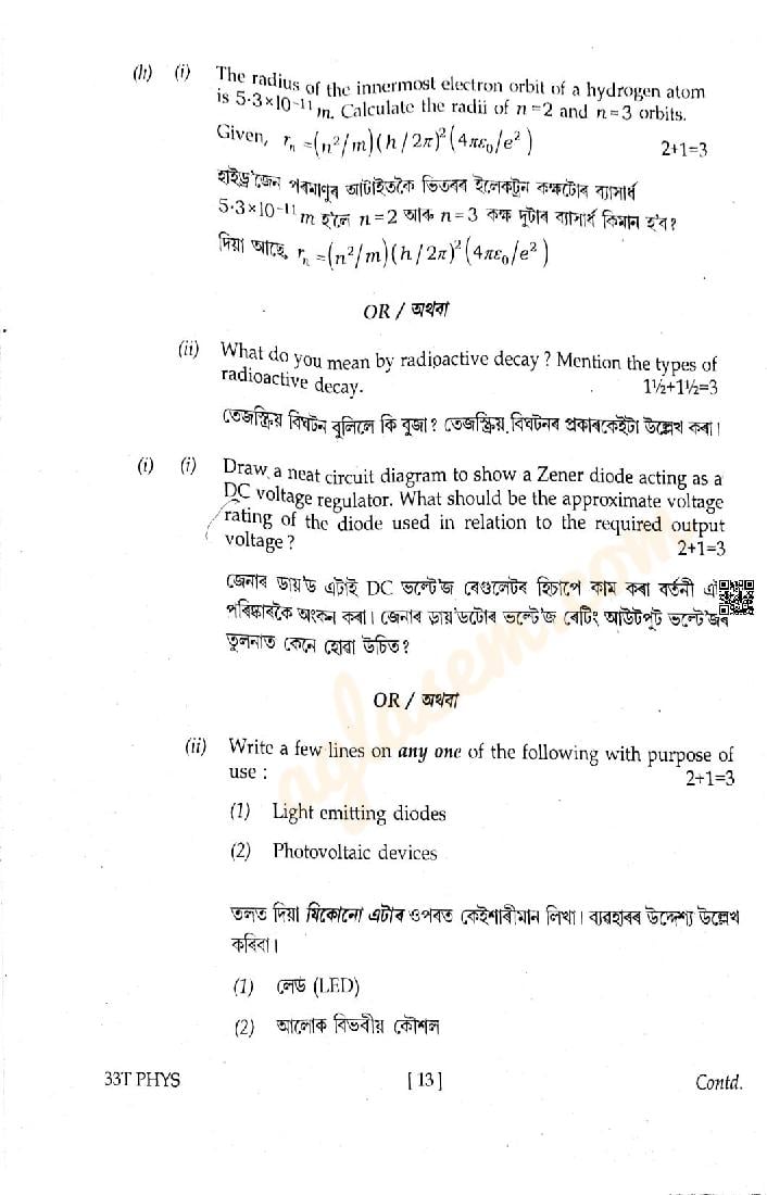 The Assam Board Sample Paper for HS 2nd Year Class 12th Physics is as follows.