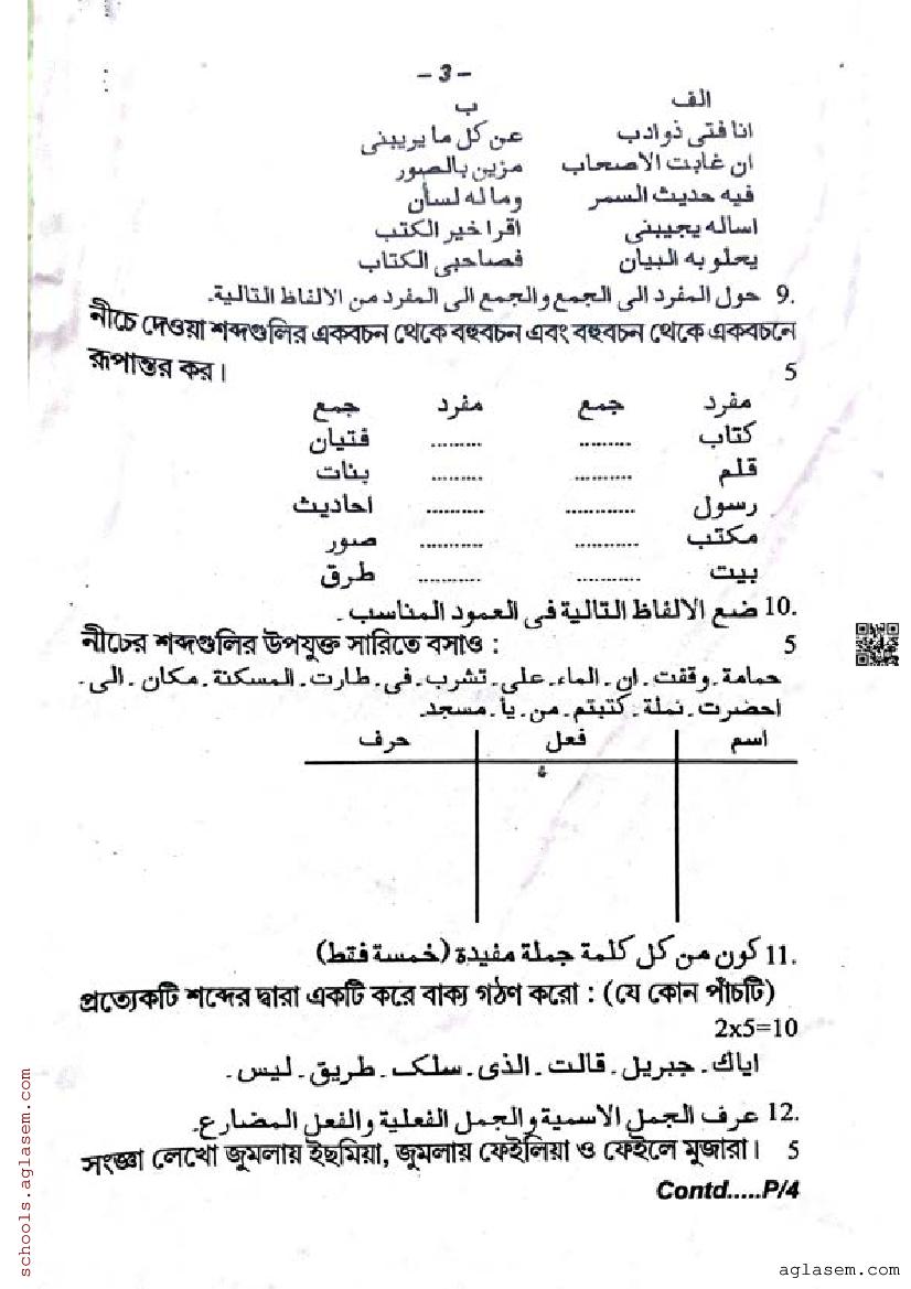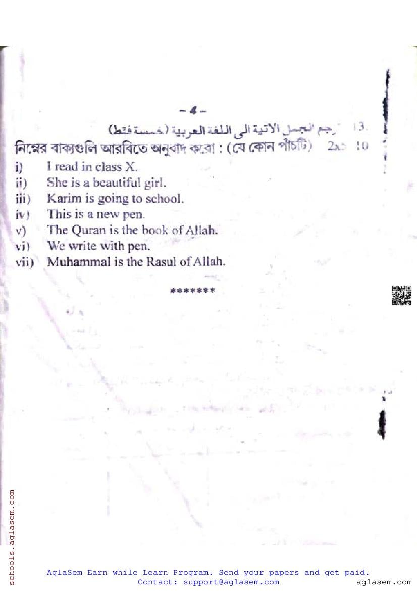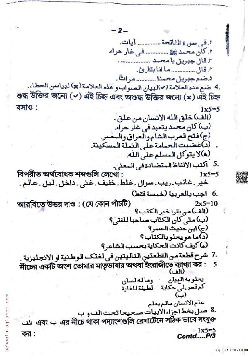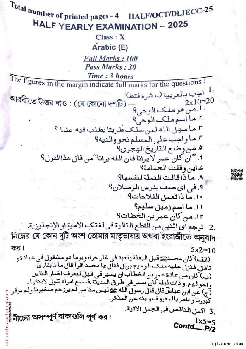 | Paper Here | Assam HSLC Half Yearly Question Paper Arabic |
