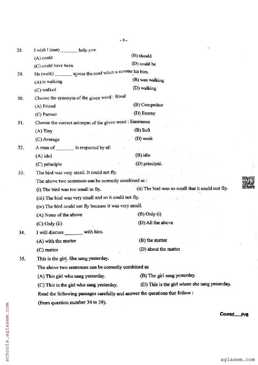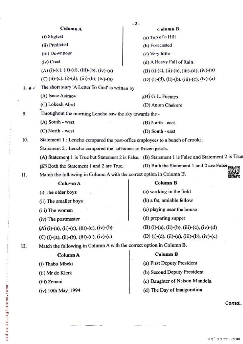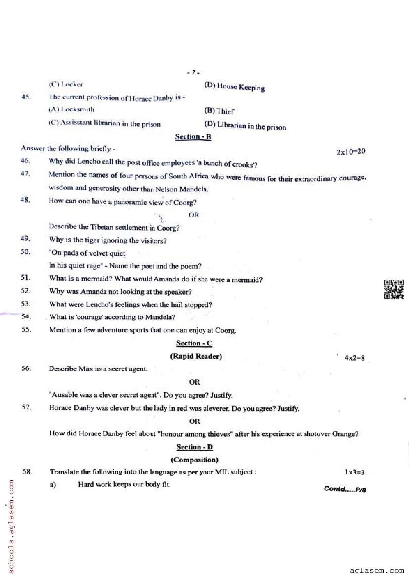 | Paper Here | Assam HSLC Half Yearly Question Paper English |