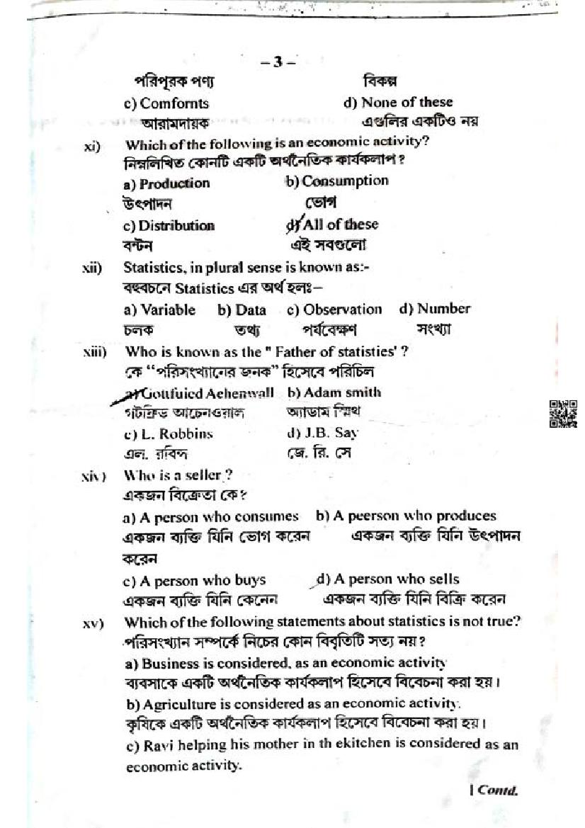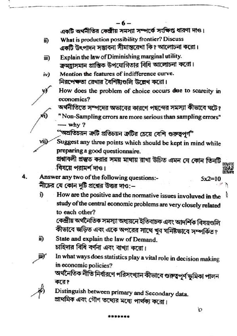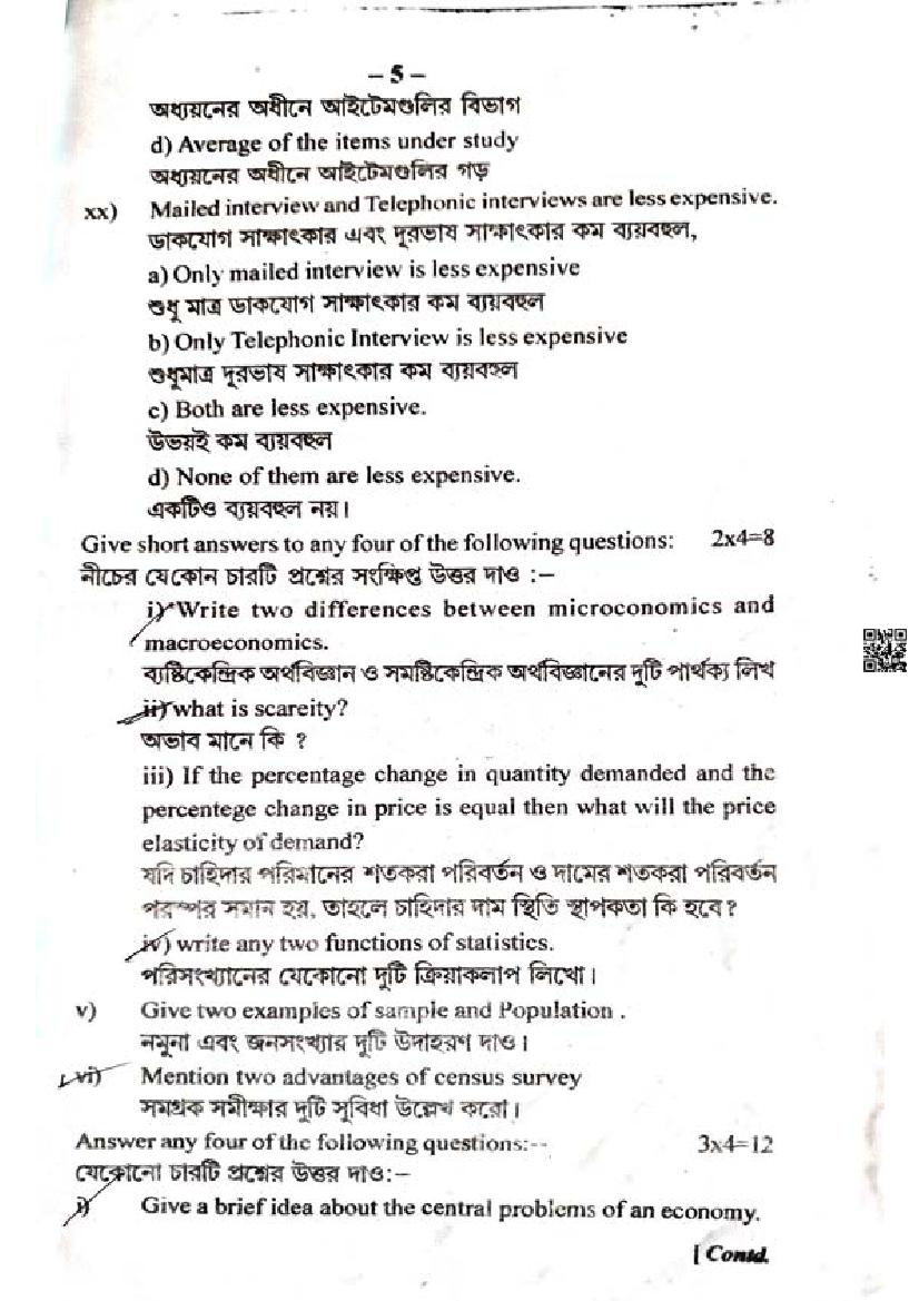 We have provided you the direct link to download Economics question paper above. However if you want to read the HS 1st Year Economics half yearly exam question paper here itself, that is also possible. The complete paper is as follows.