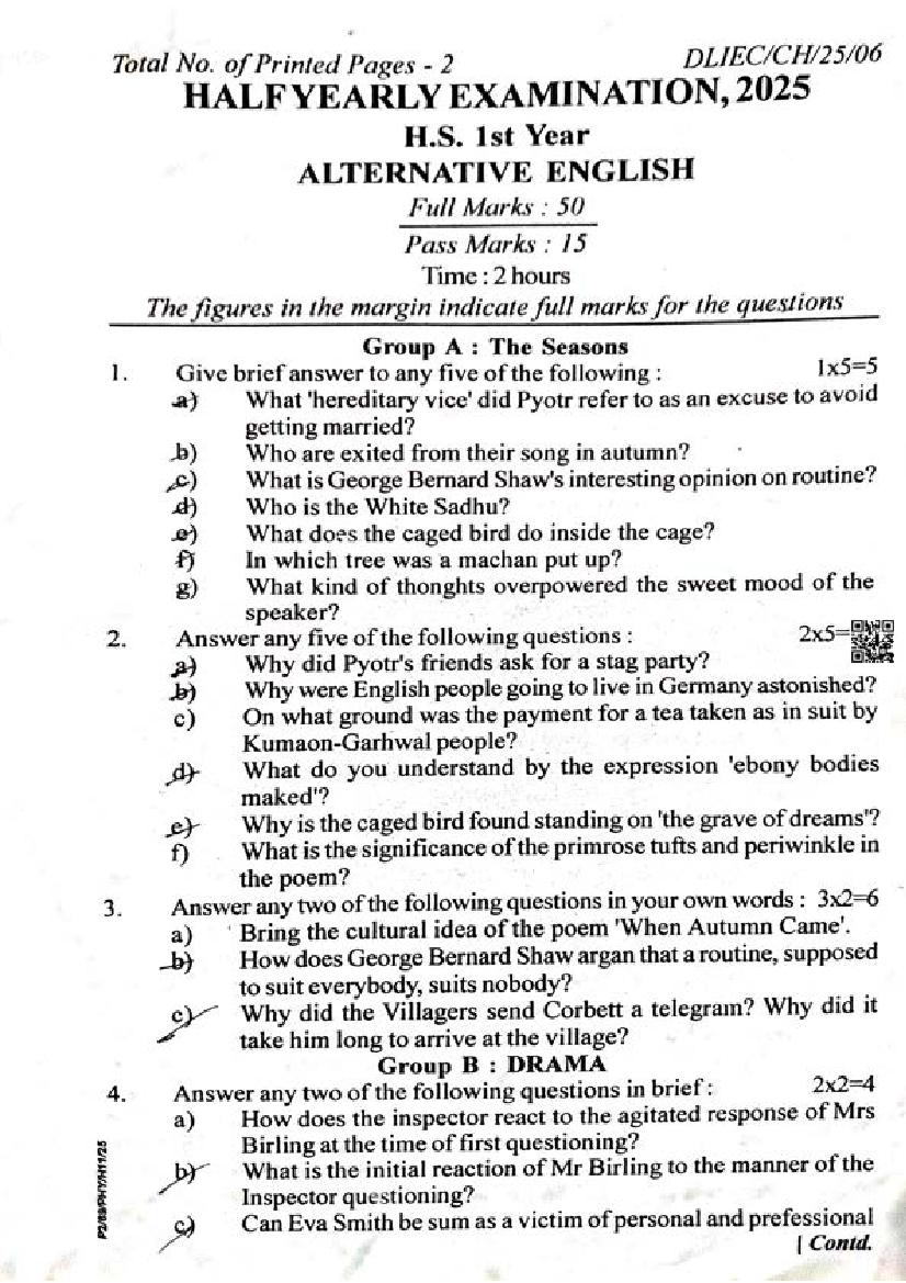 We have provided you the direct link to download English Alternative question paper above. However if you want to read the HS 1st Year English Alternative half yearly exam question paper here itself, that is also possible. The complete paper is as follows.