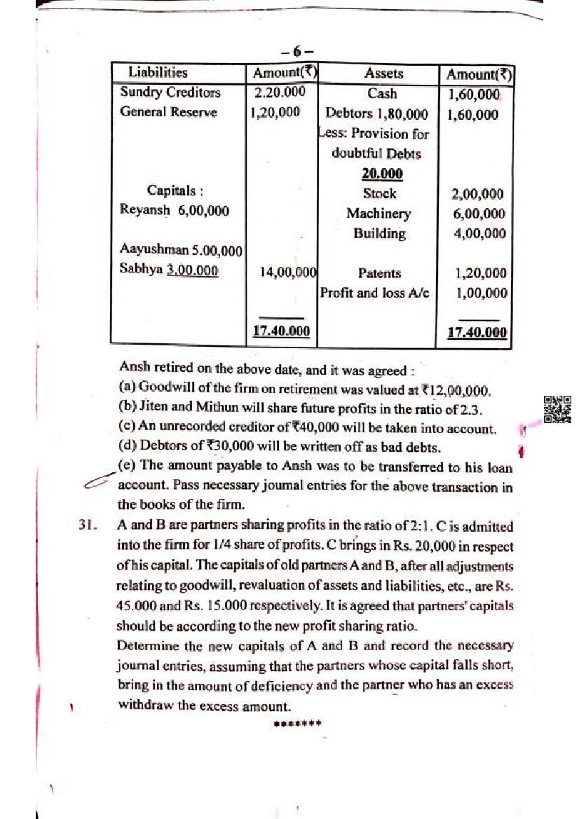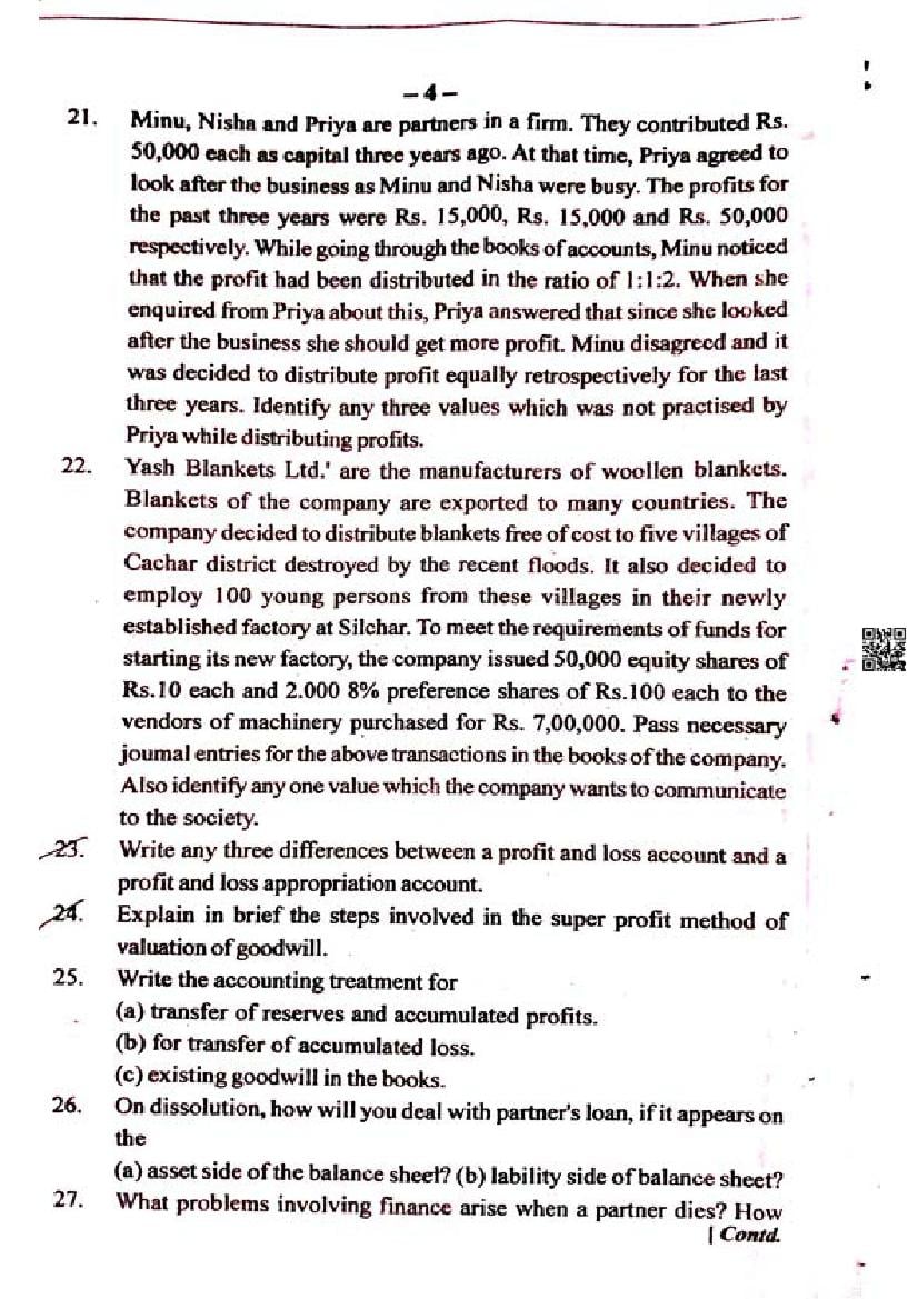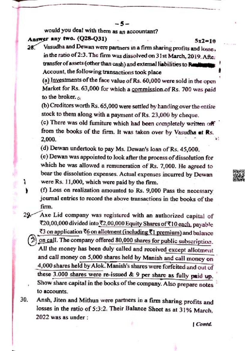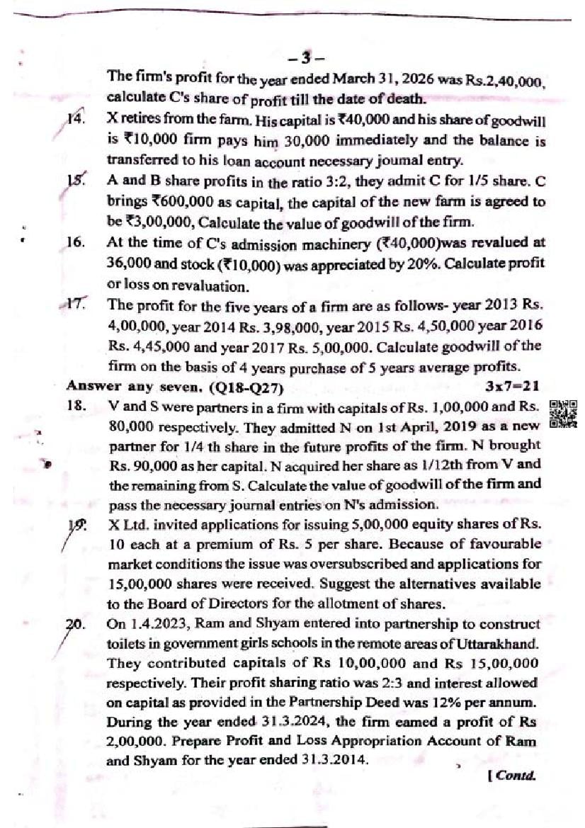 We have provided you the direct link to download Accountancy question paper above. However if you want to read the HS 2nd Year Accountancy half yearly exam question paper here itself, that is also possible. The complete paper is as follows.