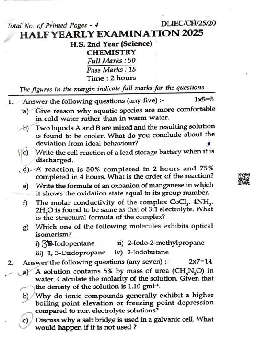 | Paper Here | Assam HS 2nd Year Half Yearly Question Paper Chemistry |