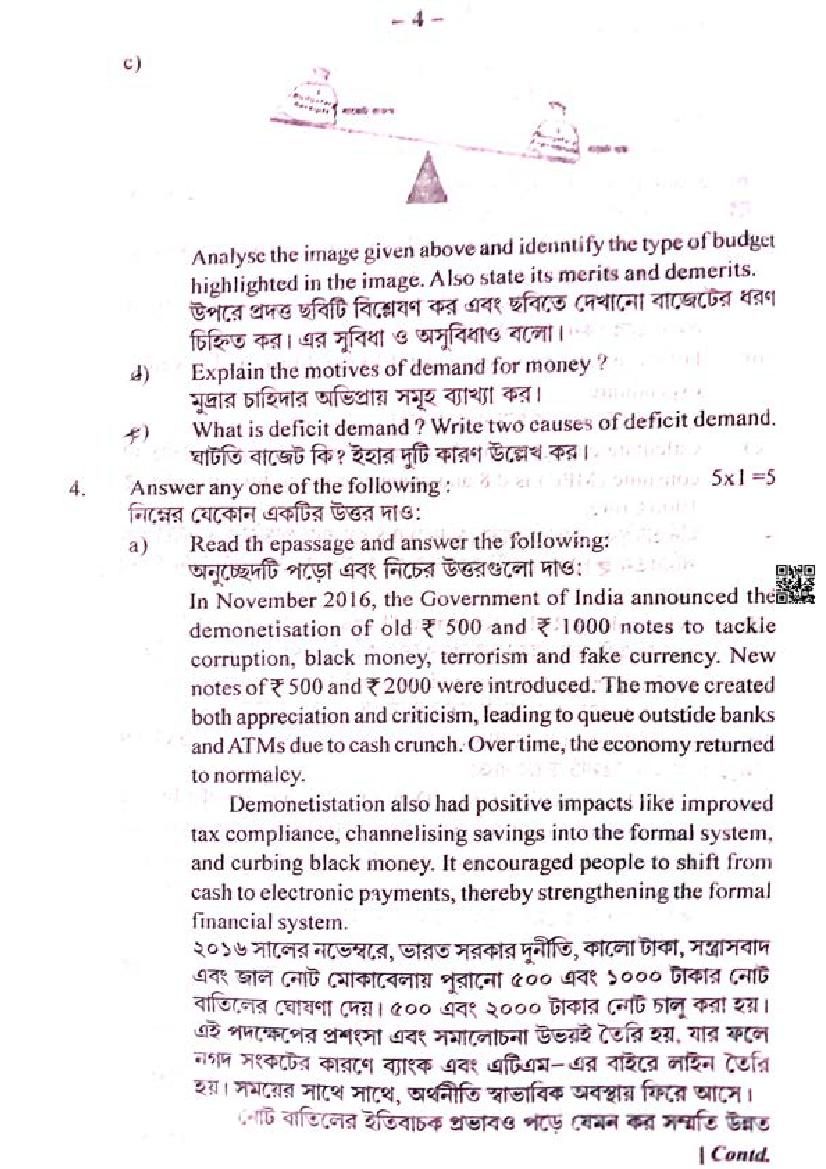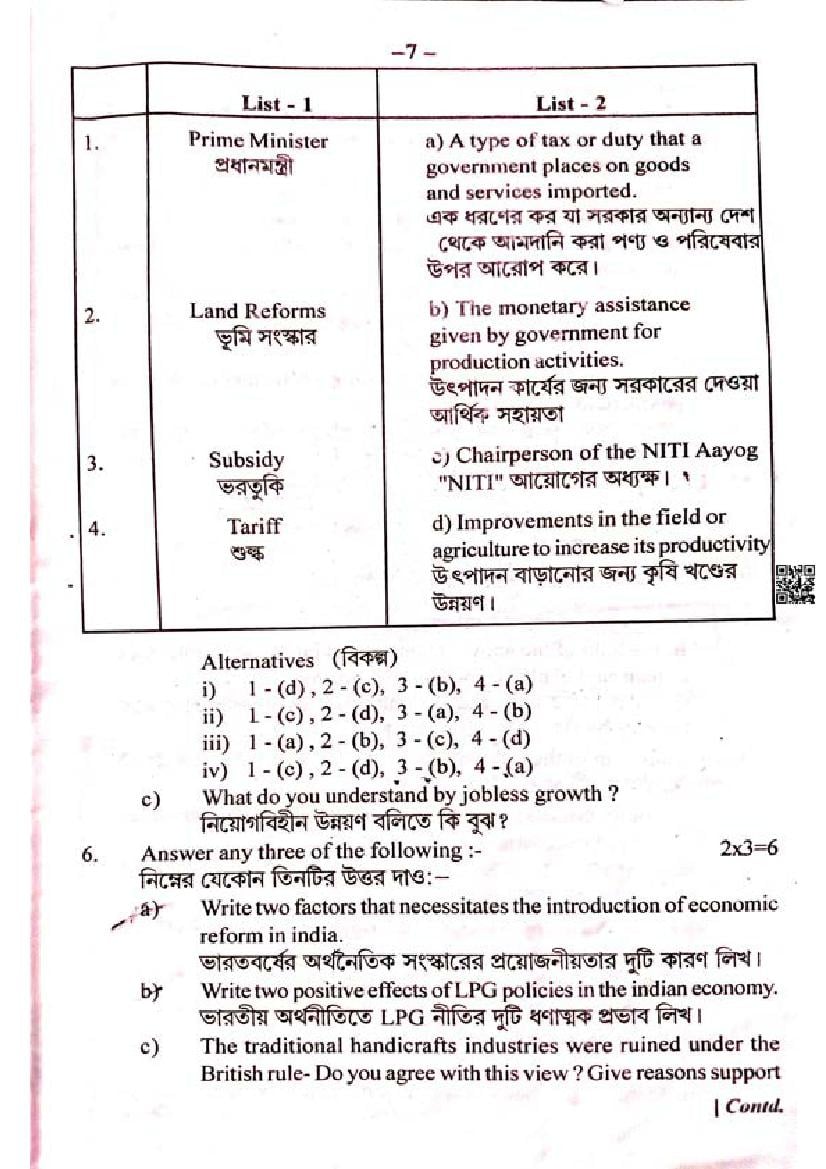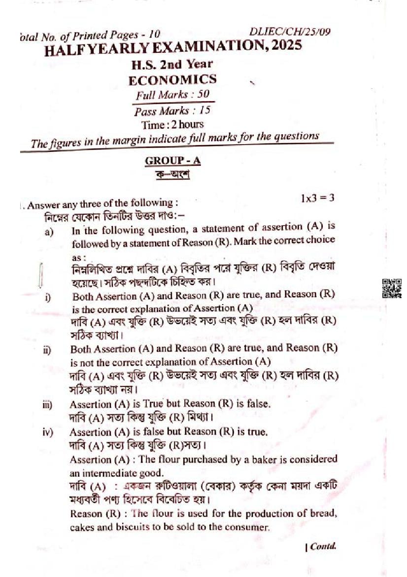 We have provided you the direct link to download Economics question paper above. However if you want to read the HS 2nd Year Economics half yearly exam question paper here itself, that is also possible. The complete paper is as follows.
