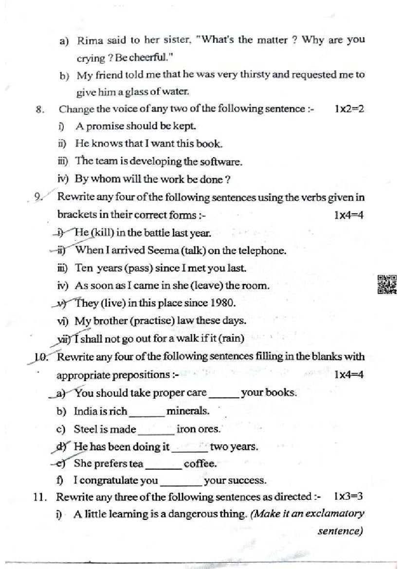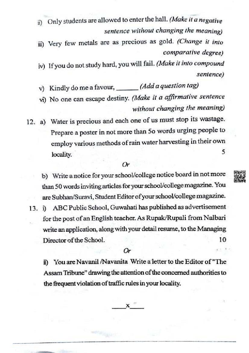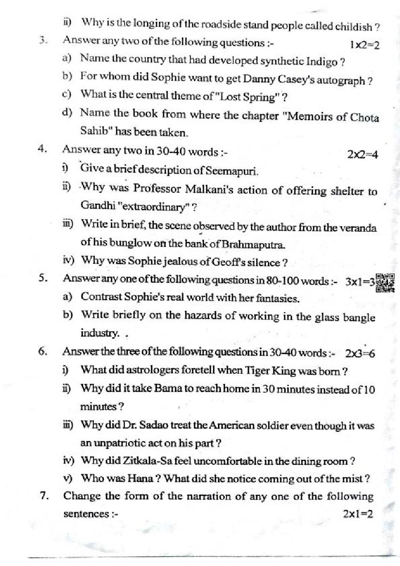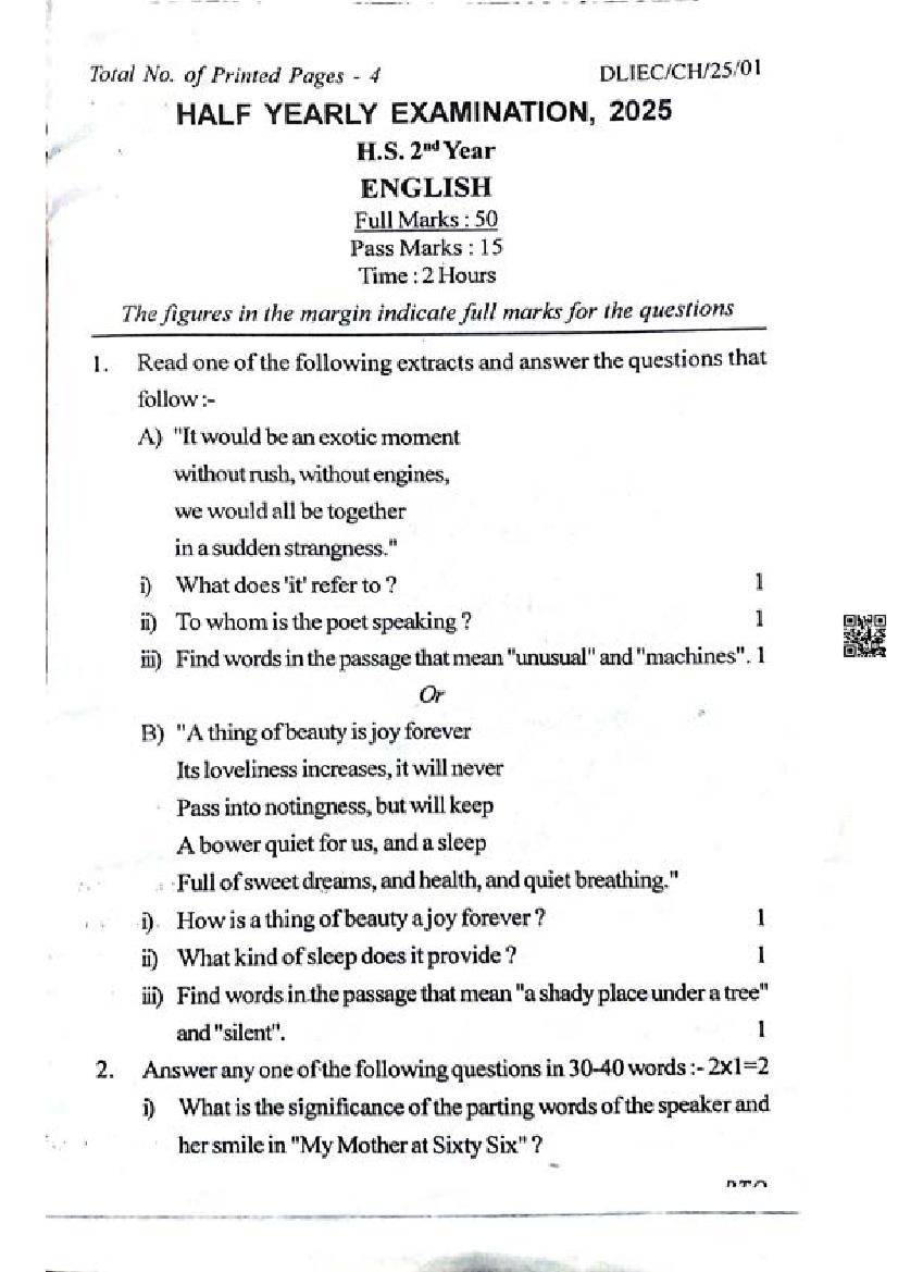 | Paper Here | Assam HS 2nd Year Half Yearly Question Paper English |