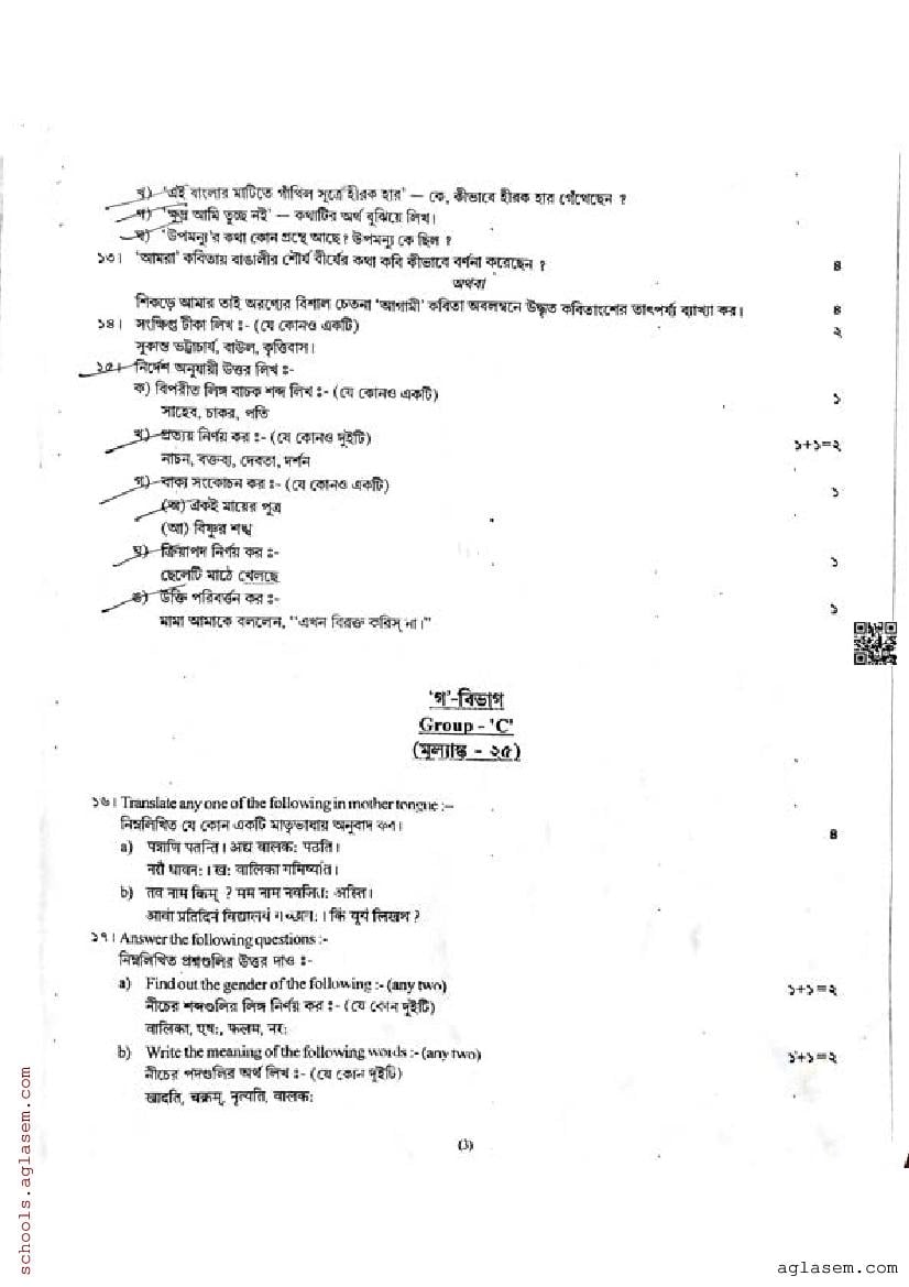 We have provided you the direct link to download Bengali question paper above. However if you want to read the 9th Std Bengali half yearly exam question paper here itself, that is also possible. The complete paper is as follows.