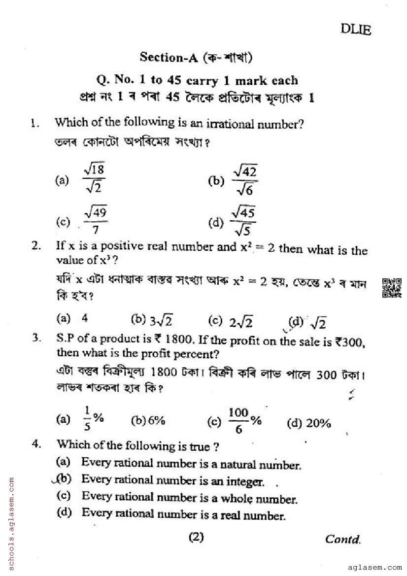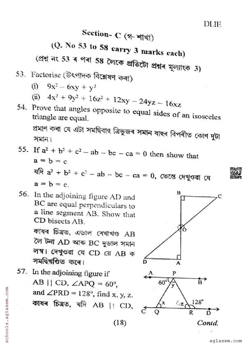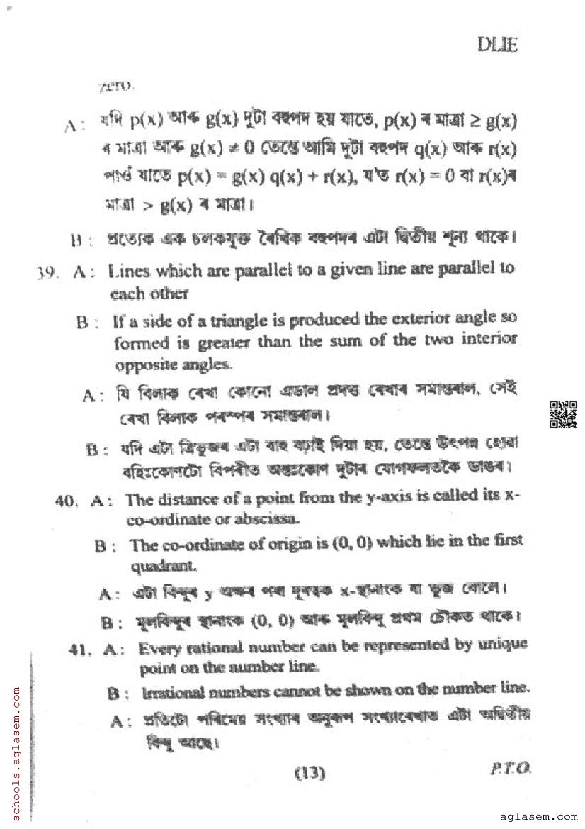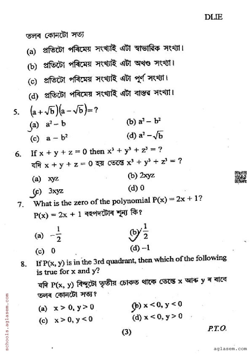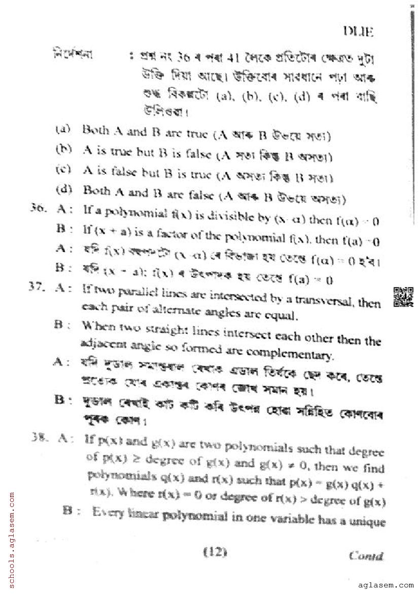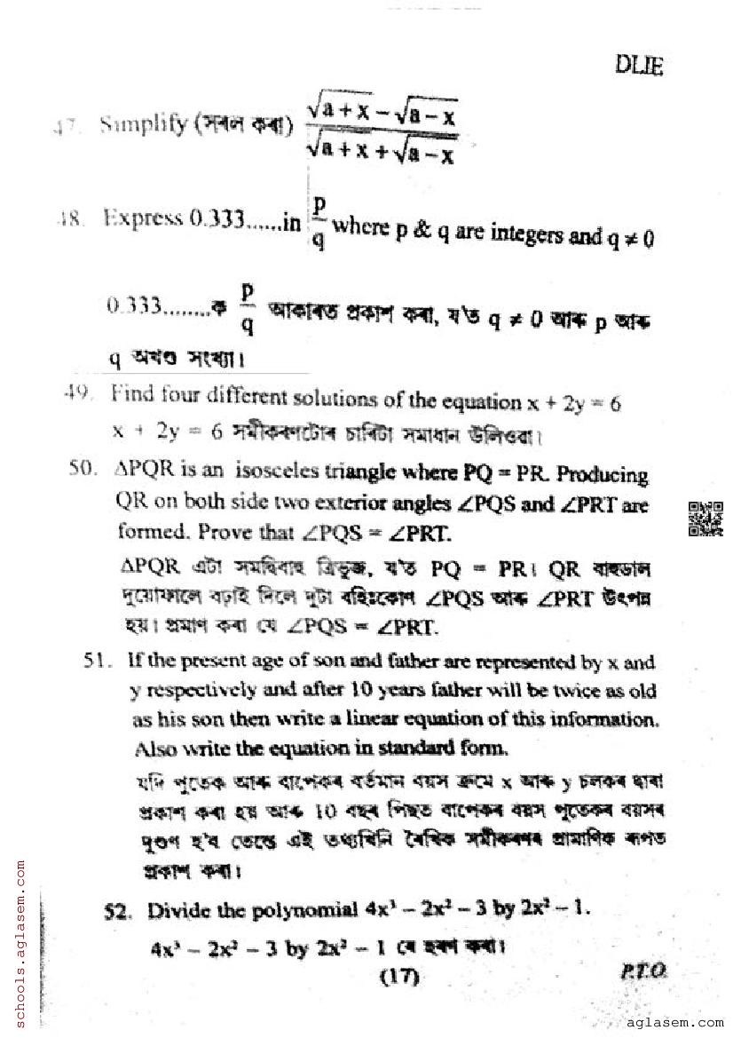 | Paper Here | Assam 9th Std Half Yearly Question Paper General Mathematics |