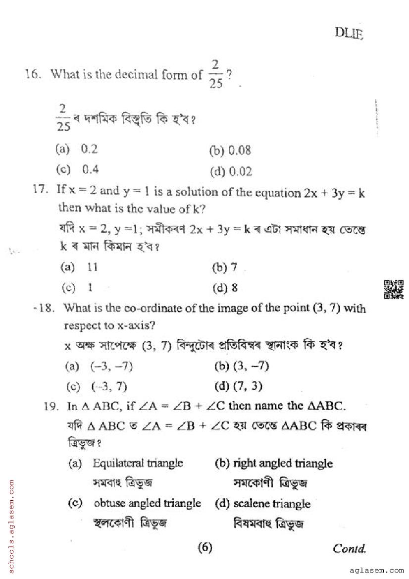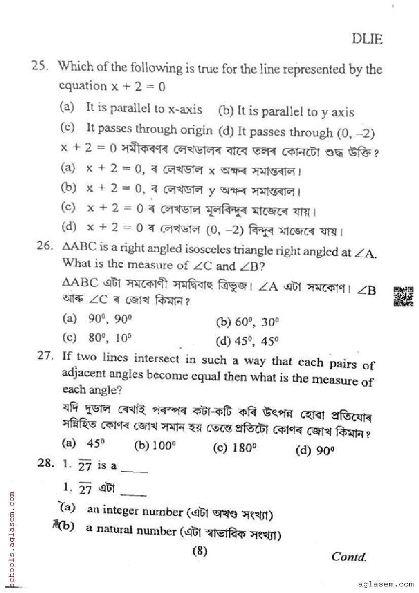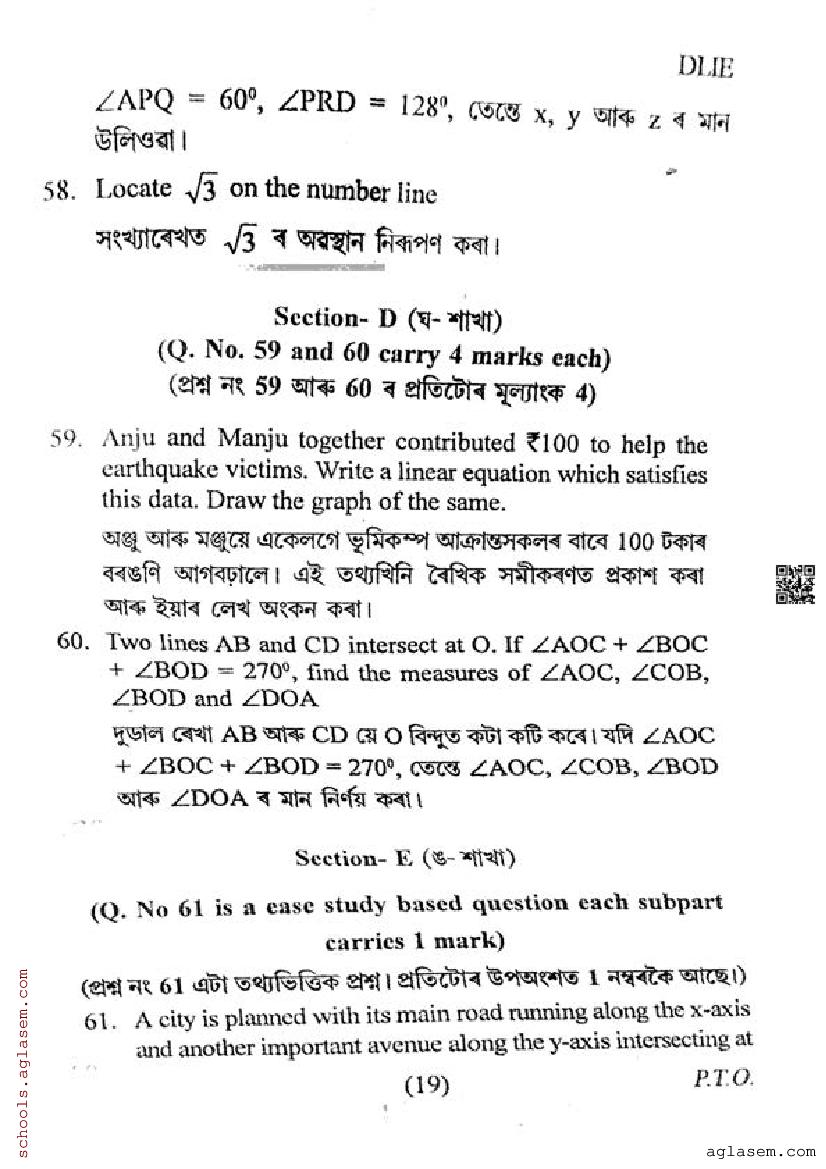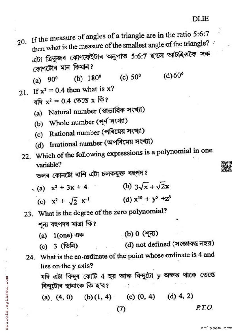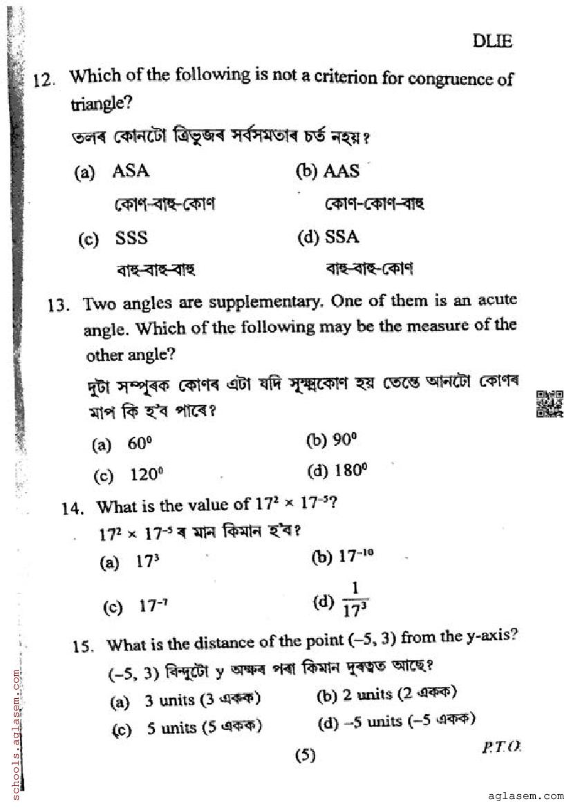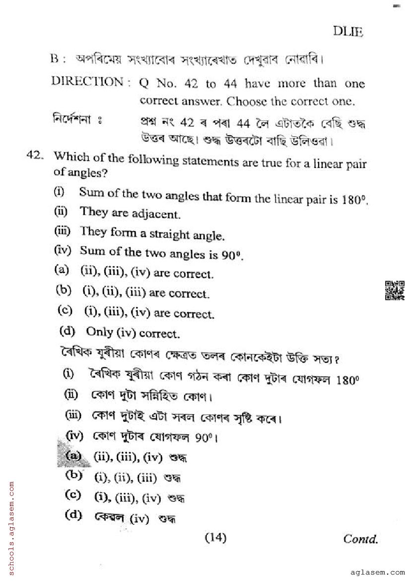 | Paper Here | Assam 9th Std Half Yearly Question Paper General Mathematics |