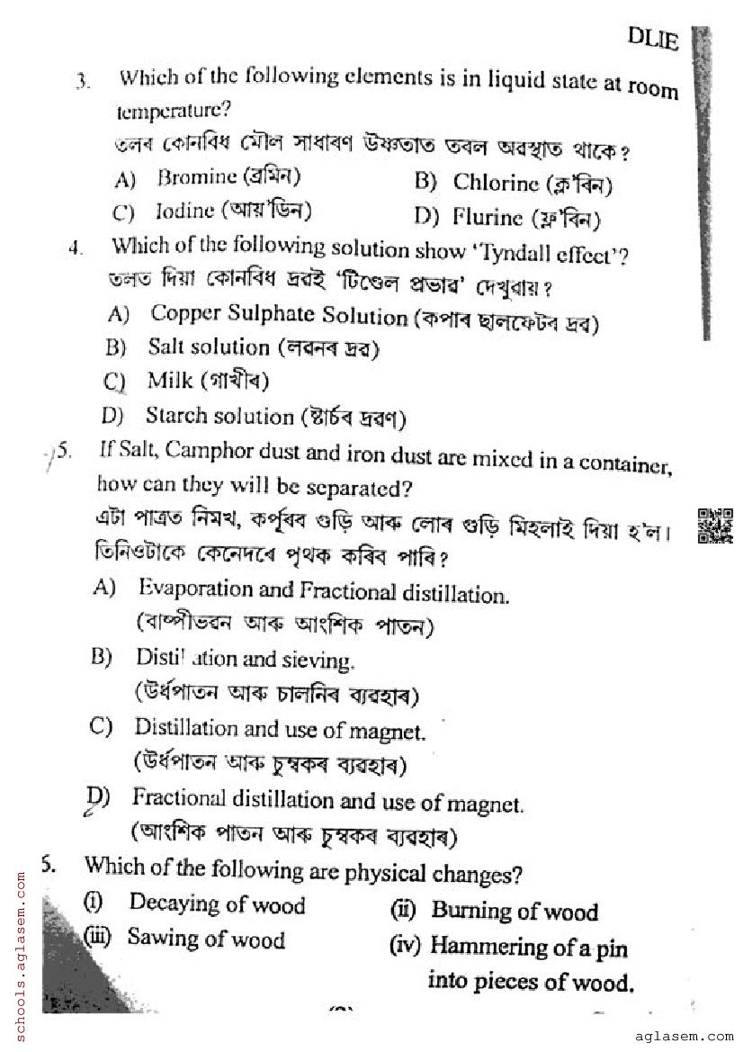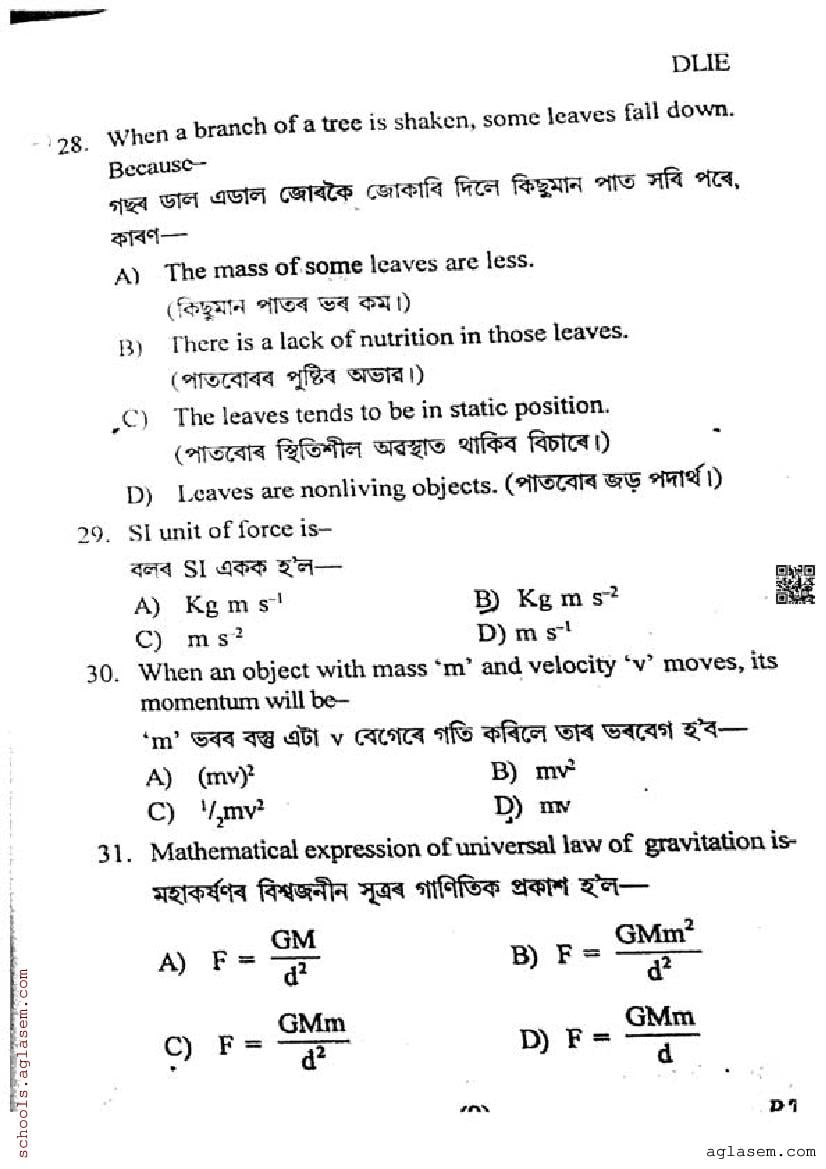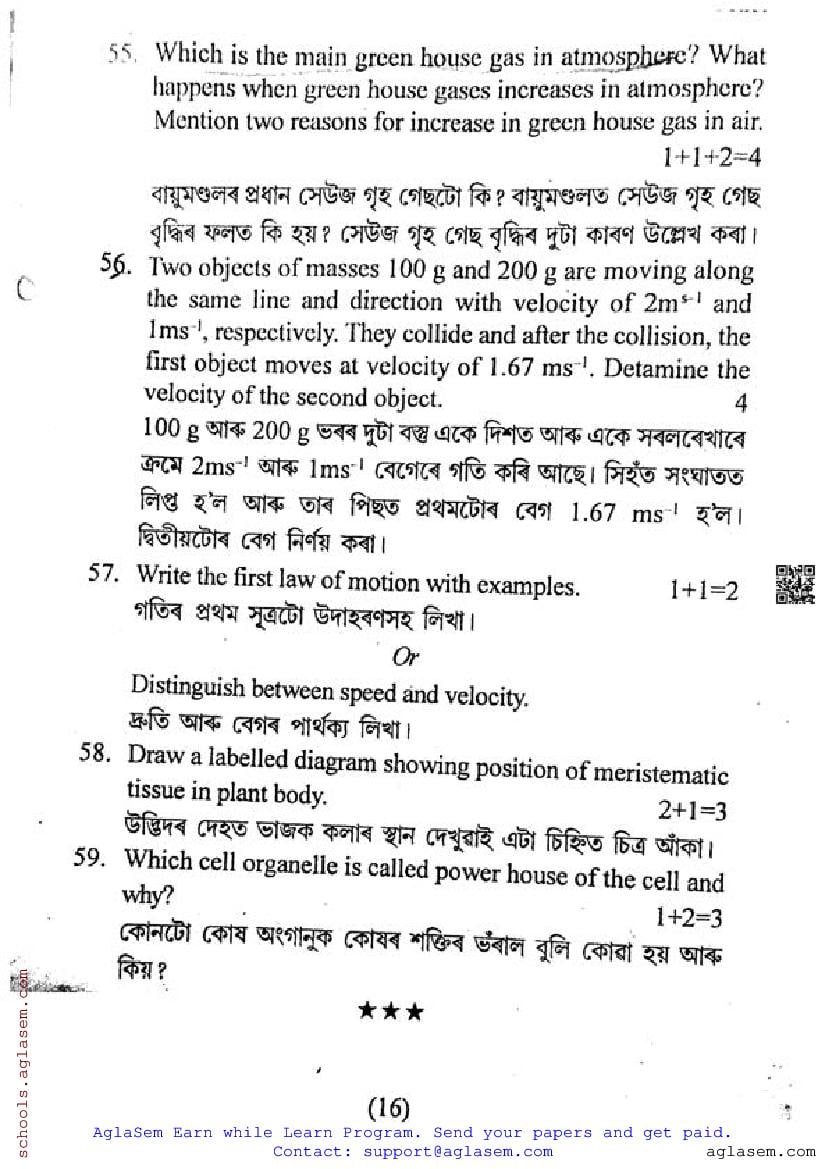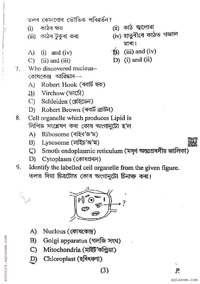 | Paper Here | Assam 9th Std Half Yearly Question Paper General Science |