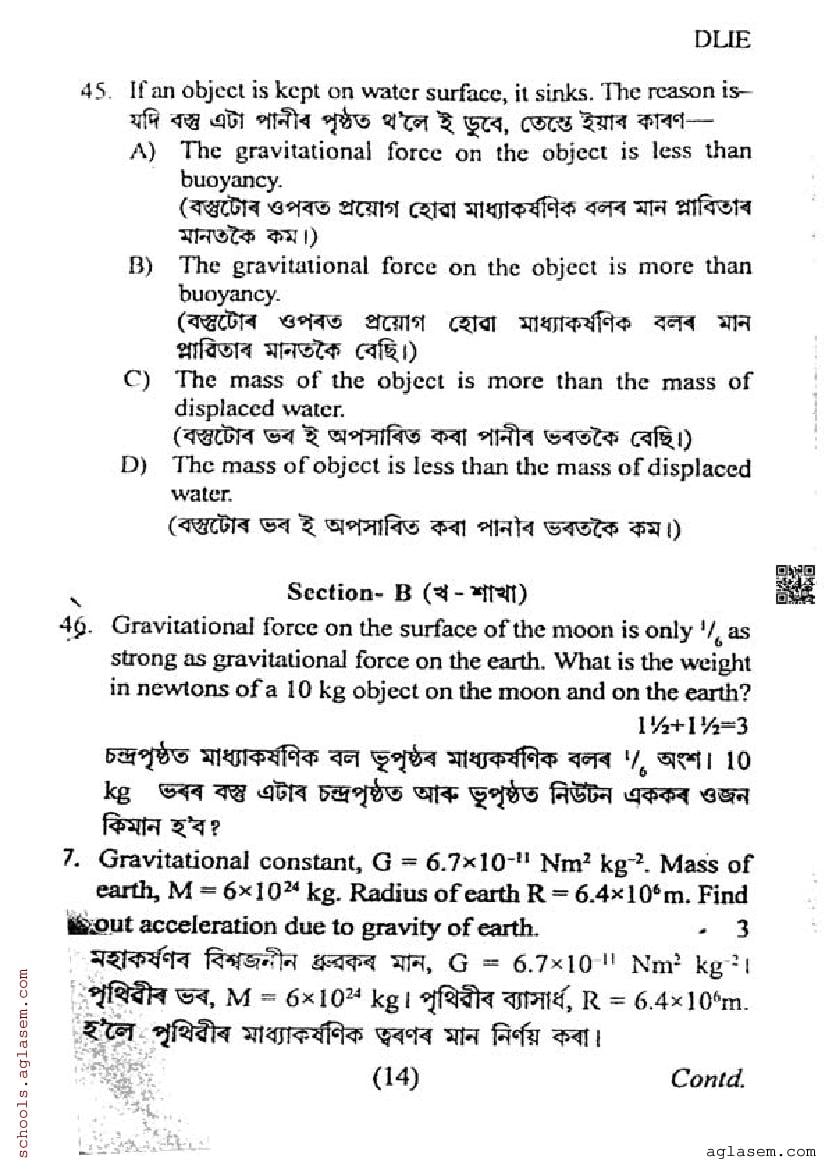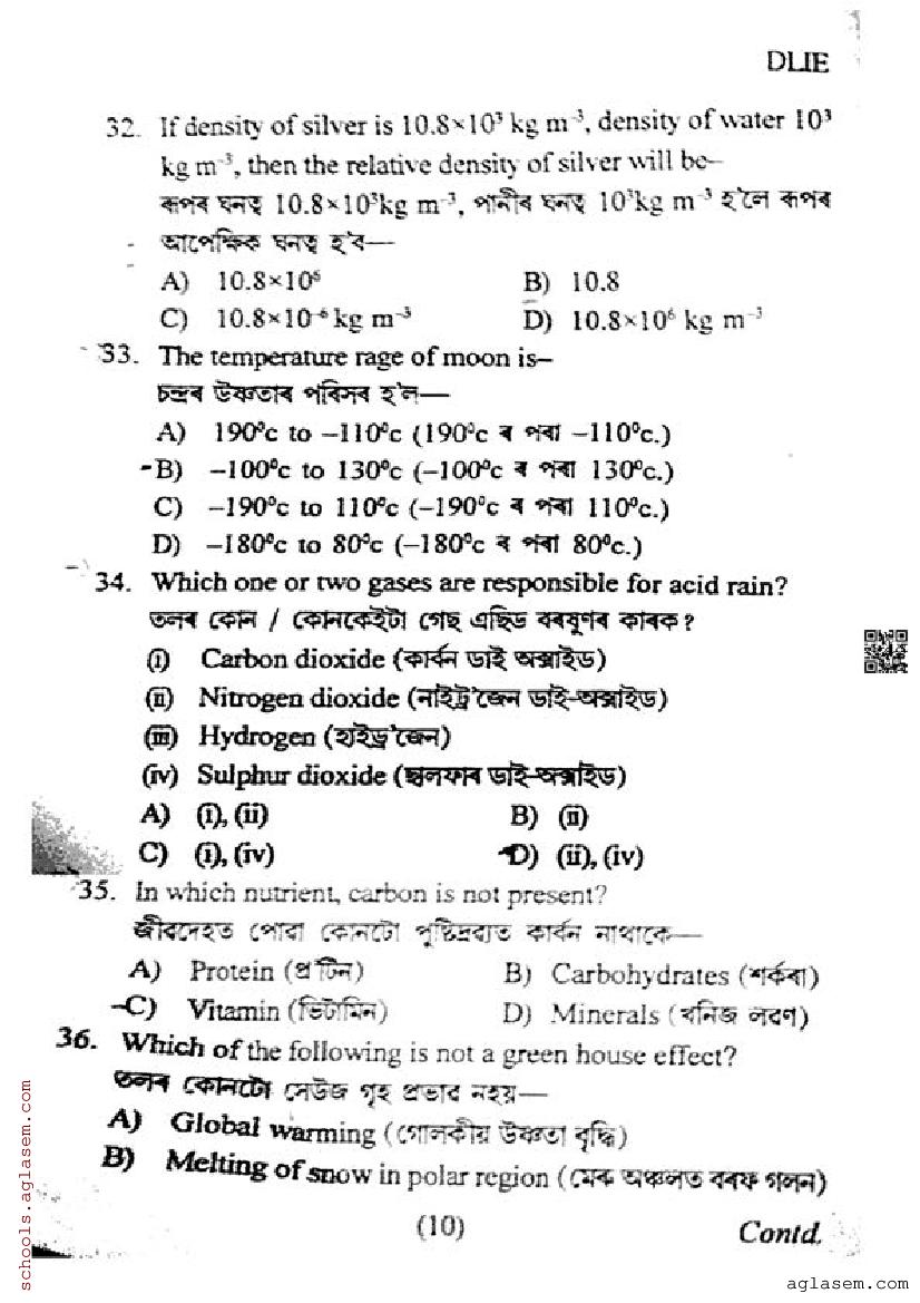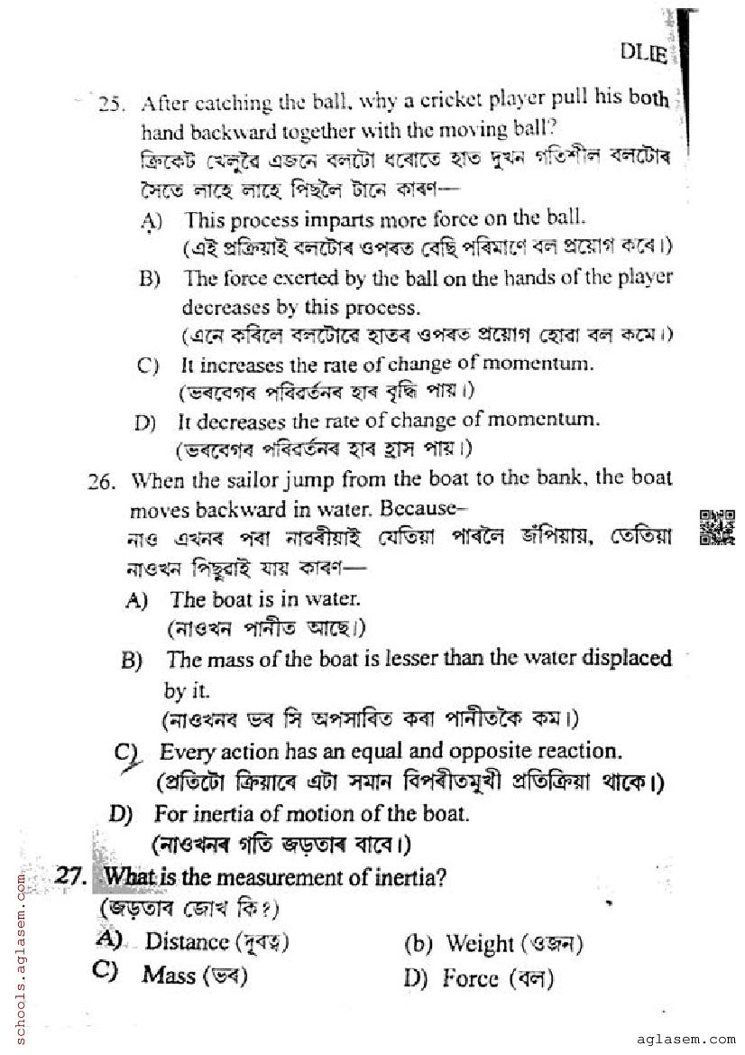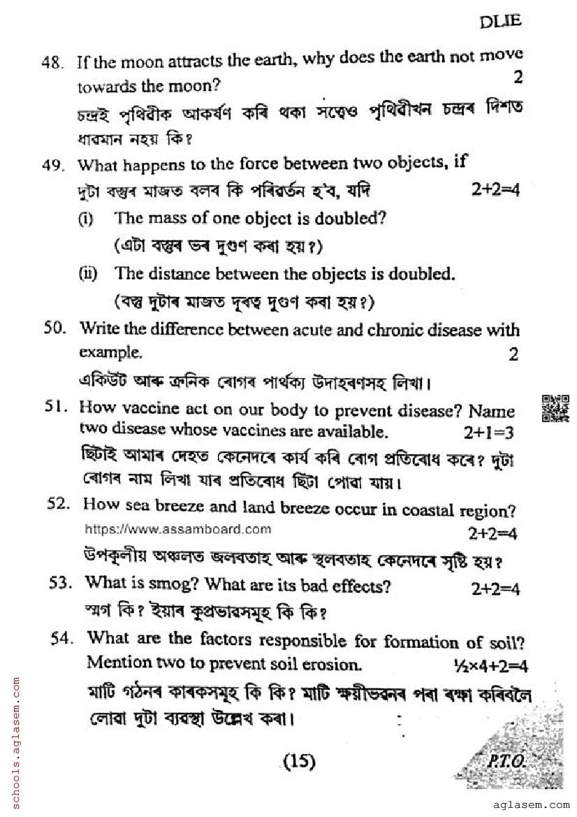 | Paper Here | Assam 9th Std Half Yearly Question Paper General Science |