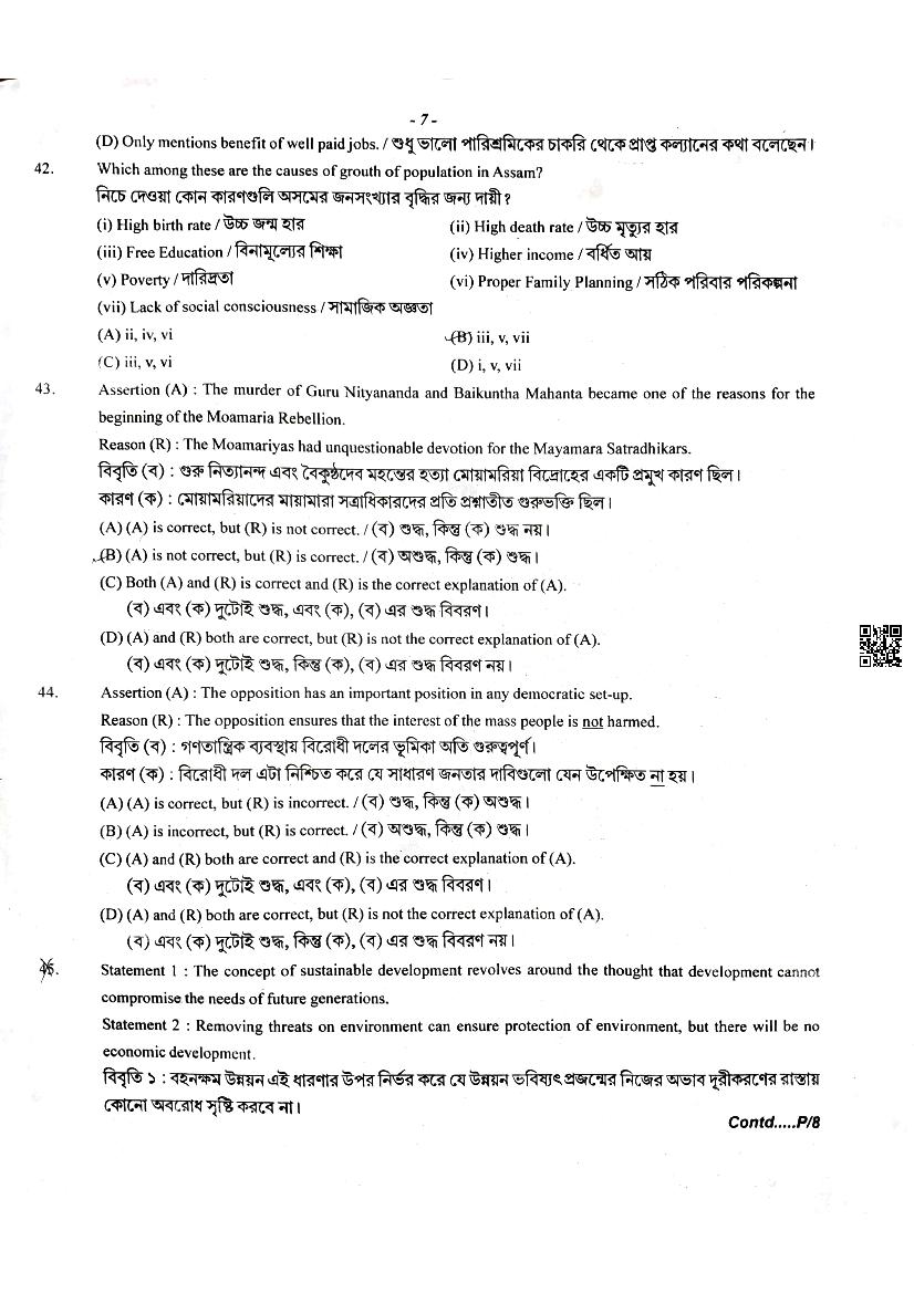 Assam Board Question Papers