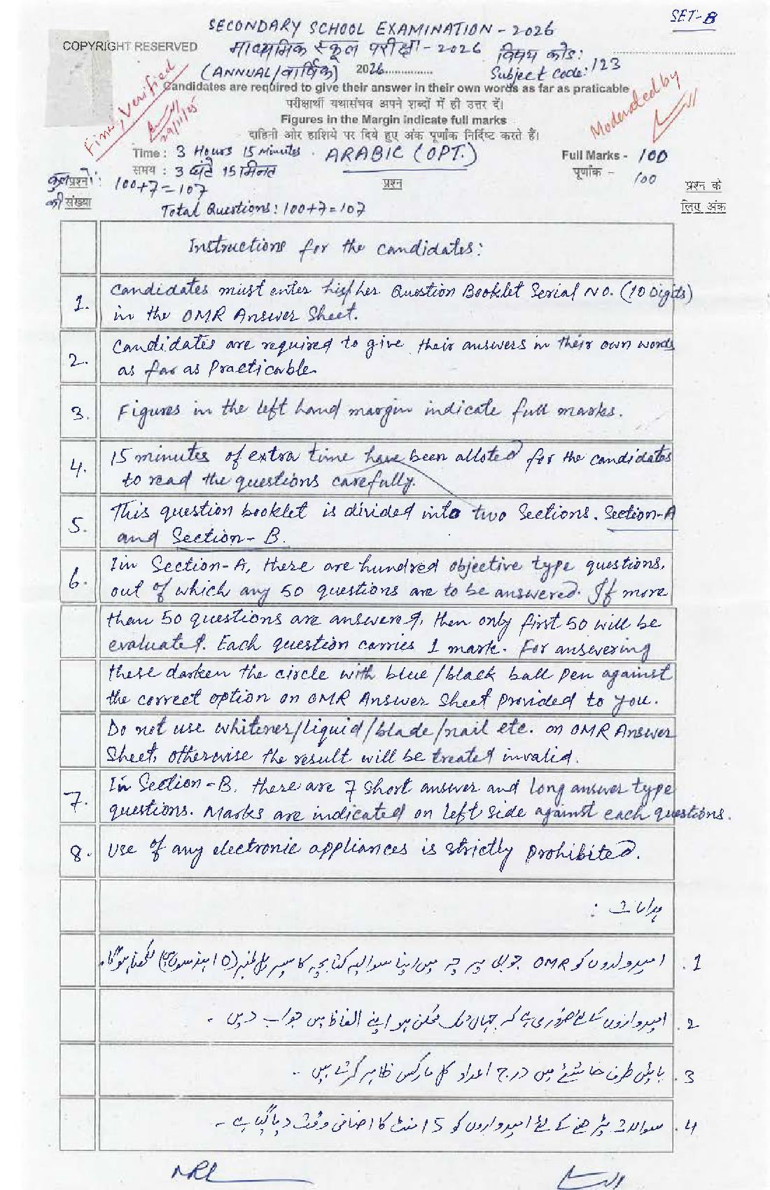 The Bihar Board model paper for class 10 Arabic Optional is as follows.