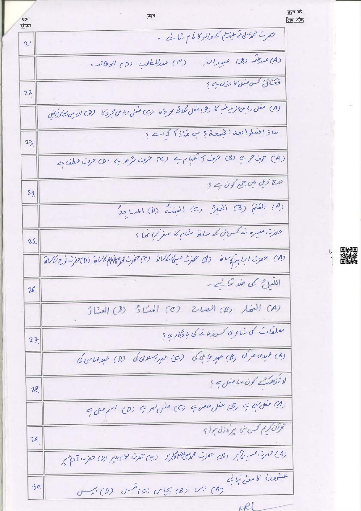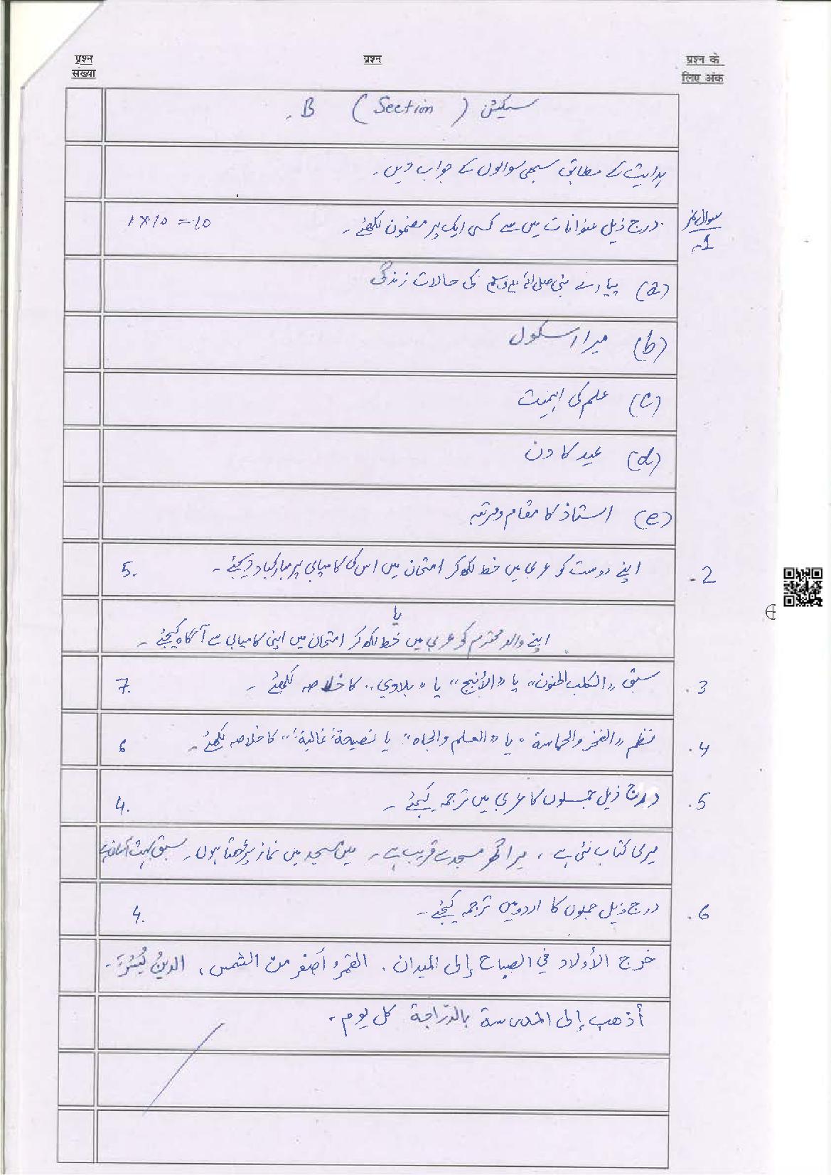 The Bihar Board model paper for class 10 Arabic SIL is as follows.