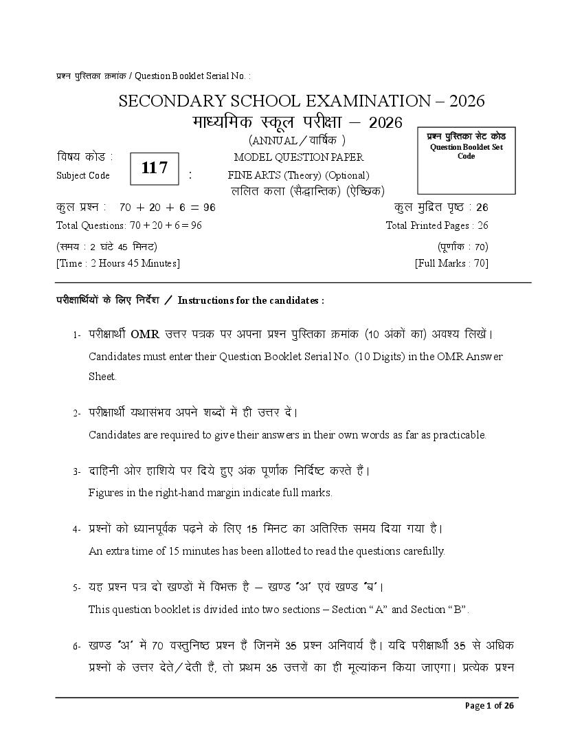 Bihar Board Class 10th Model Paper 2026 Fine Arts View Download