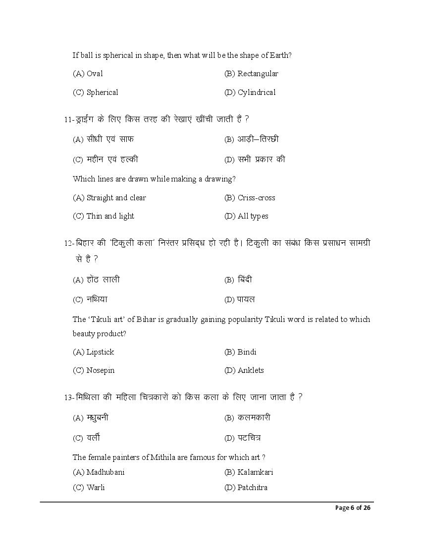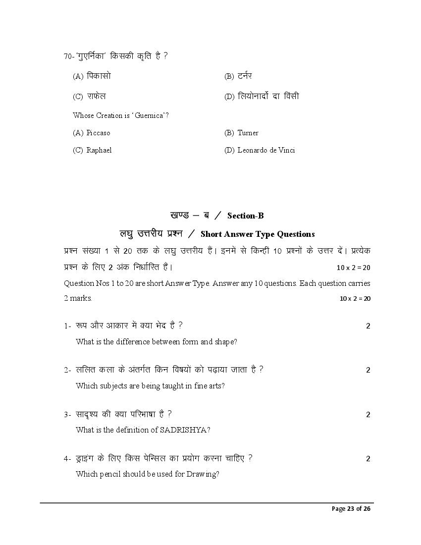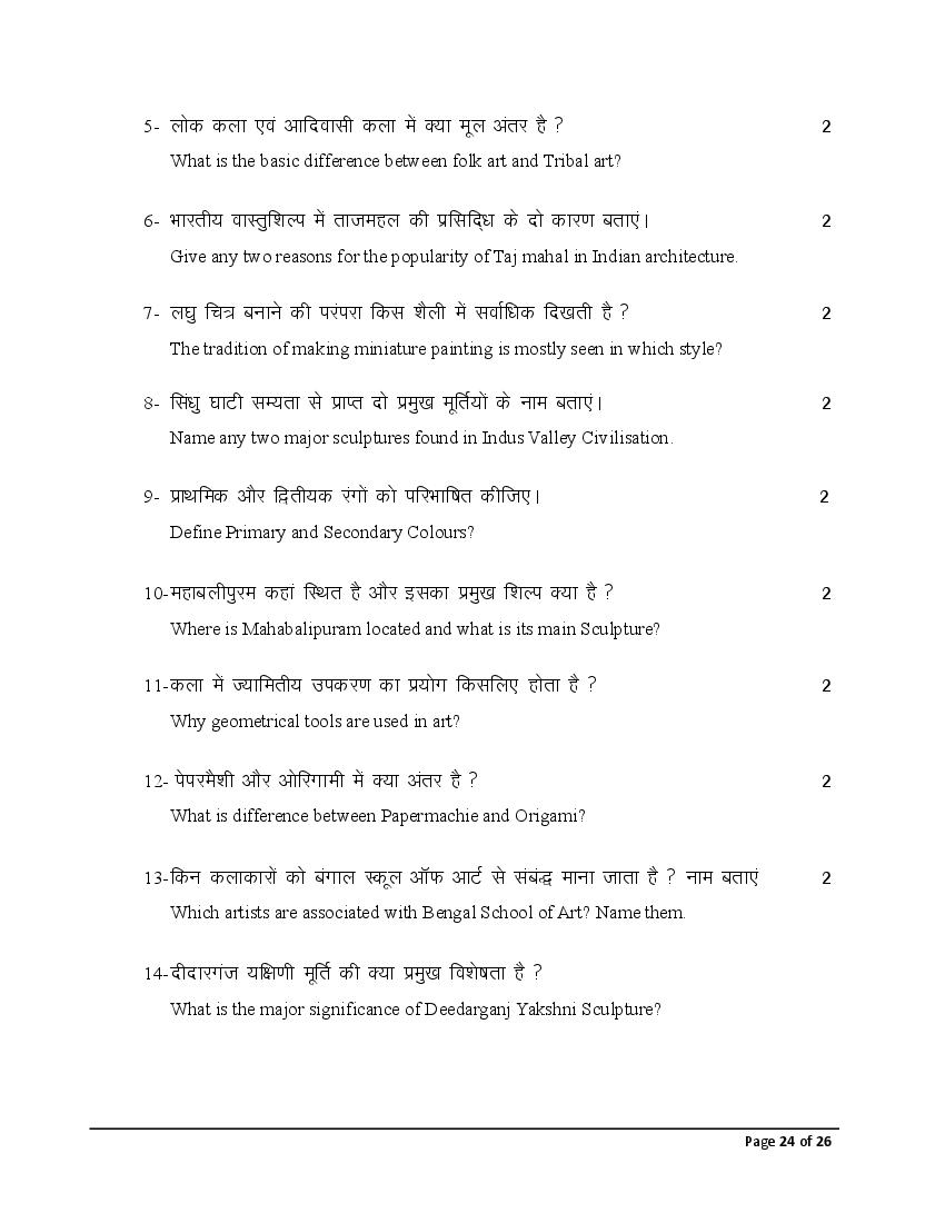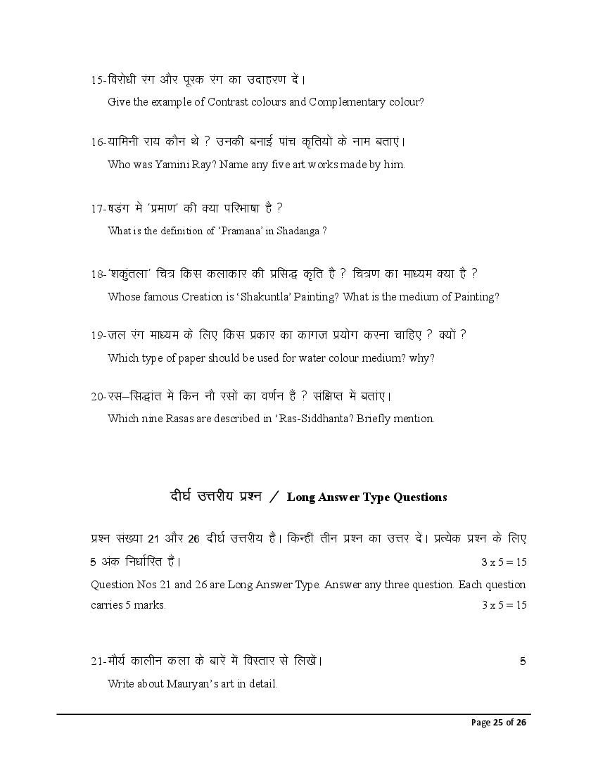 The Bihar Board model paper for class 10 Fine Art is as follows.