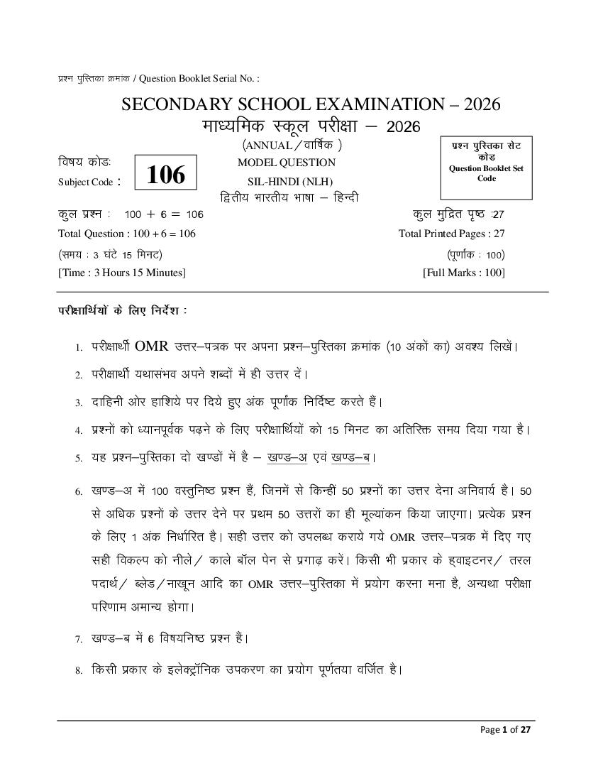 If you have any queries on Bihar Board Class 10th Hindi SIL Model Paper 2026, then please ask in comments below.