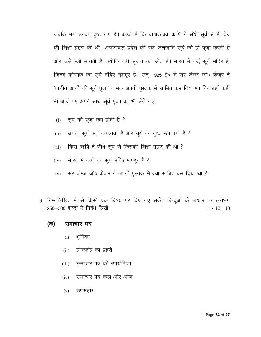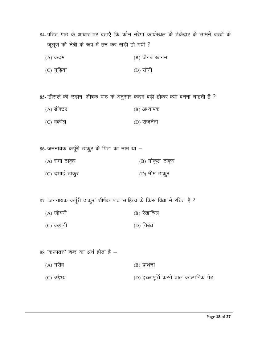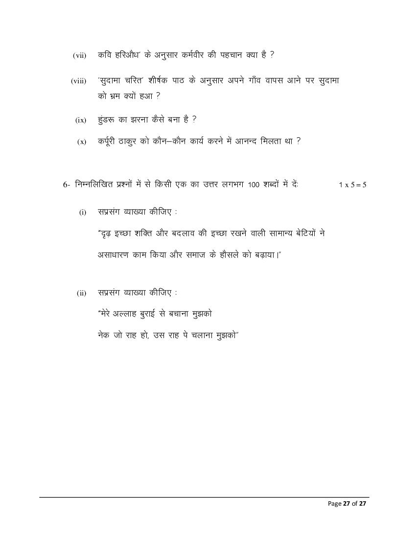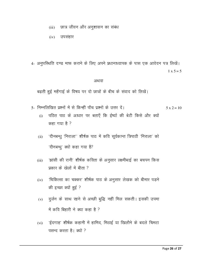 The Bihar Board model paper for class 10 Hindi SIL is as follows.